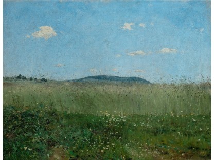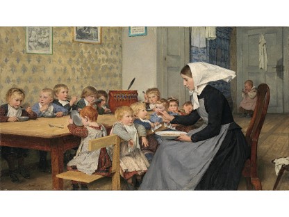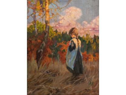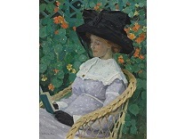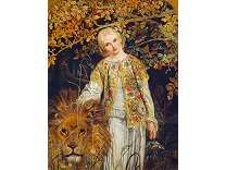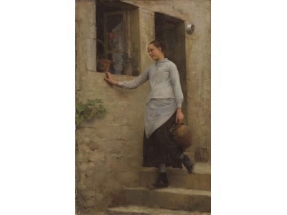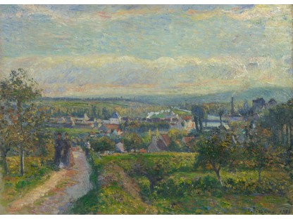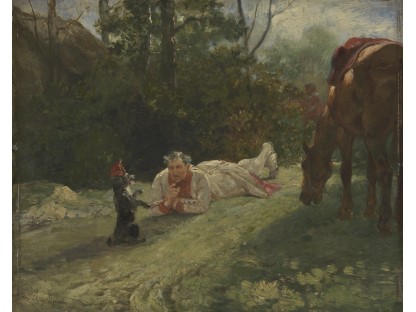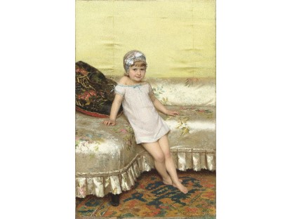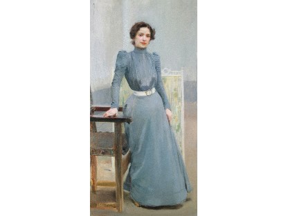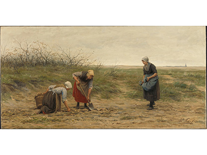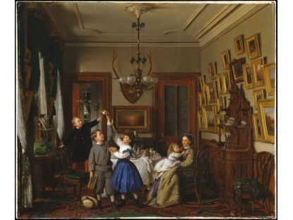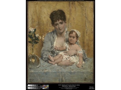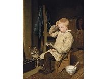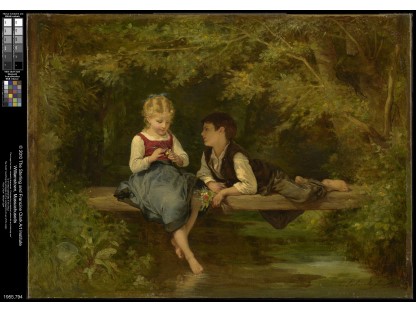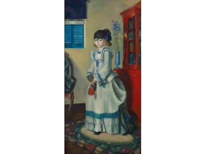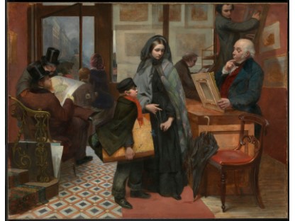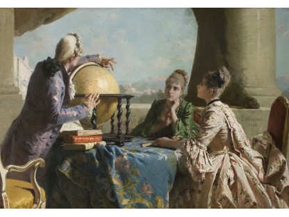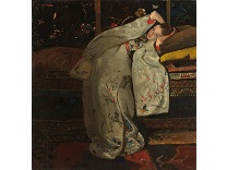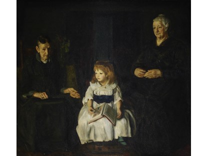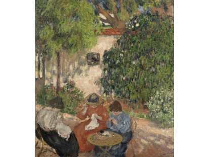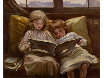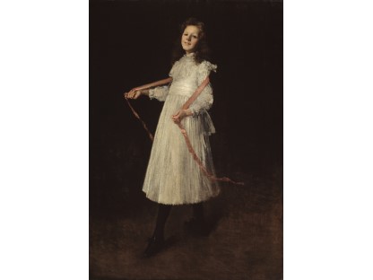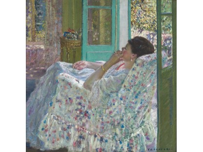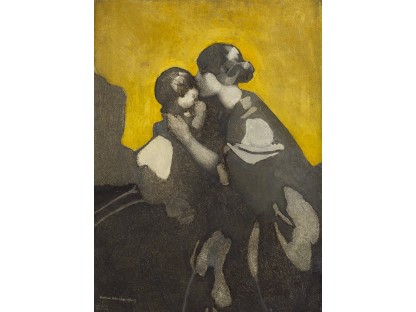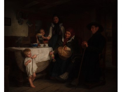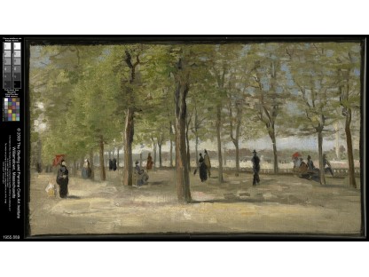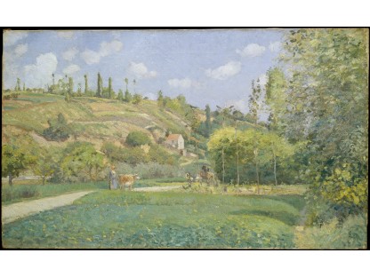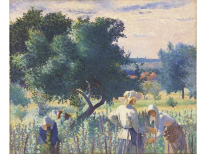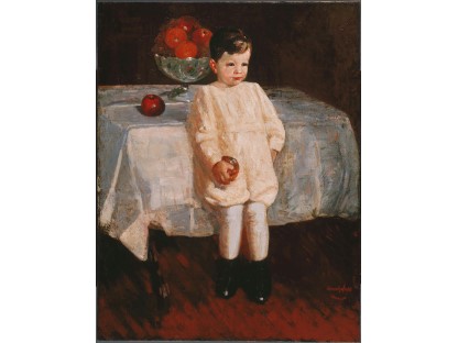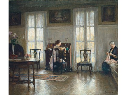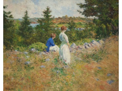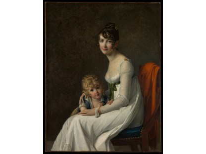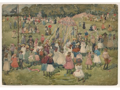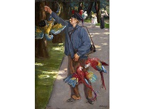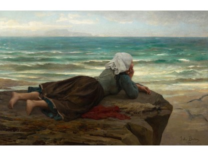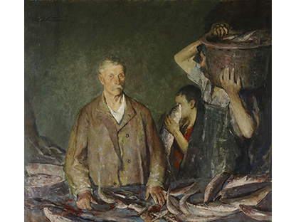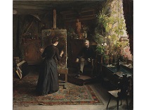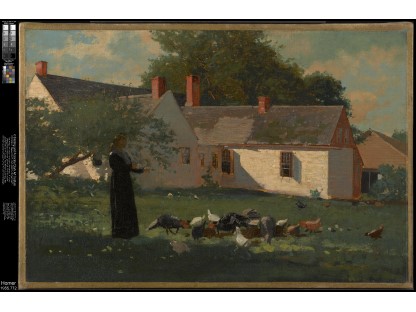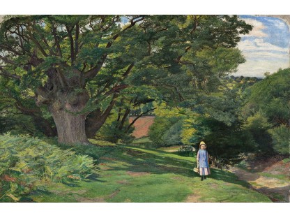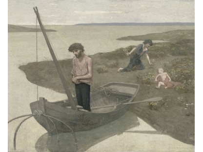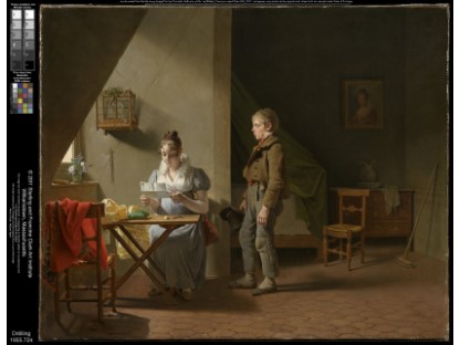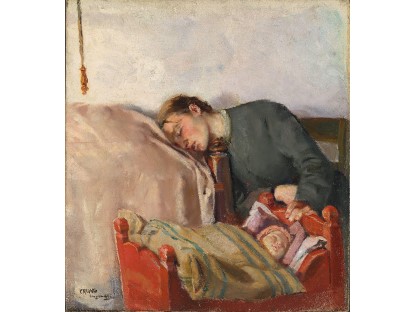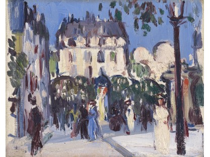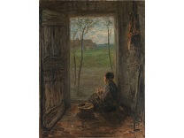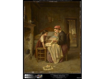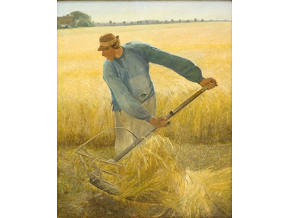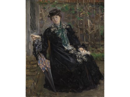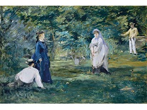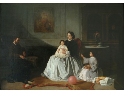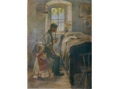 此画描绘了一个阳光明媚的清晨,母亲和孩子散步场景,充分表现了人物的惬意心情以及其中的微风、蓝天的那种恬静美好。