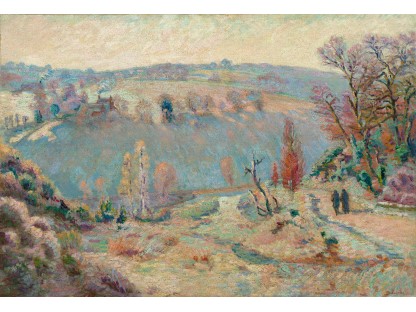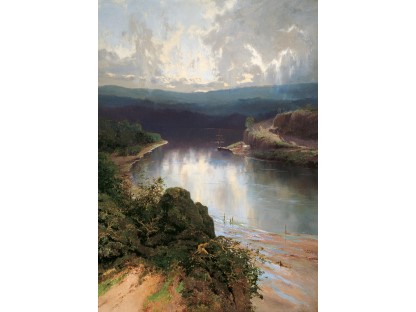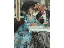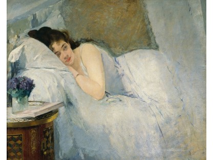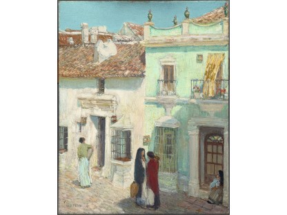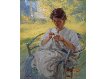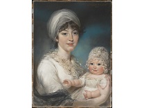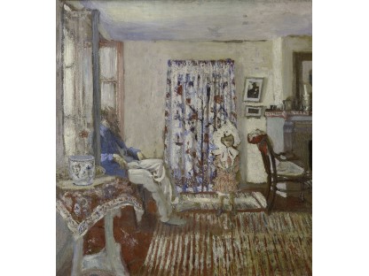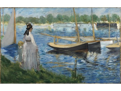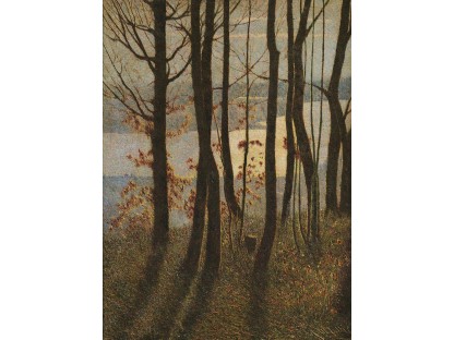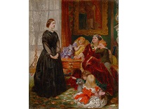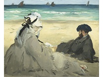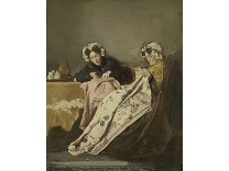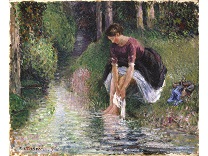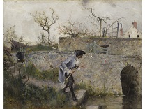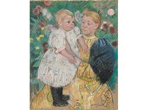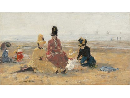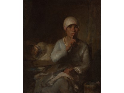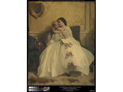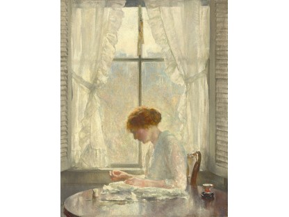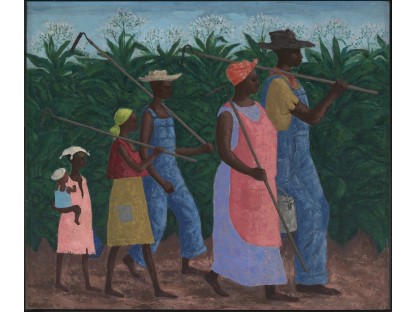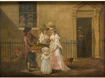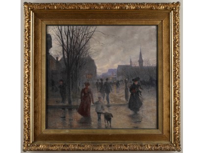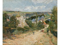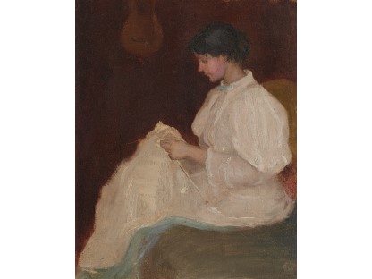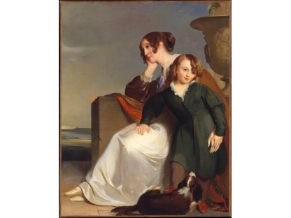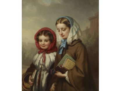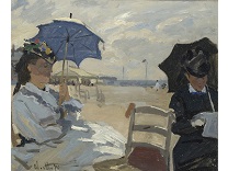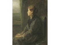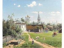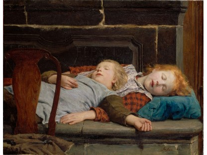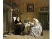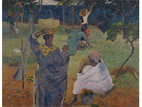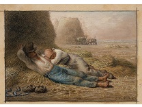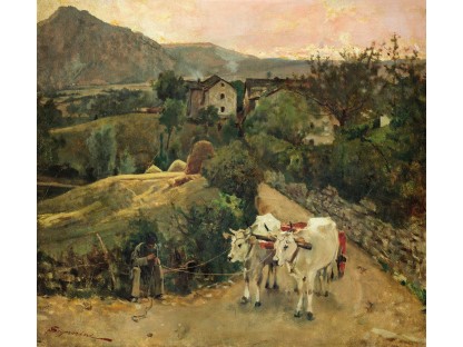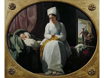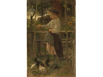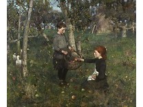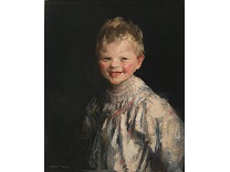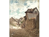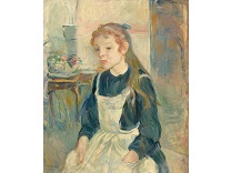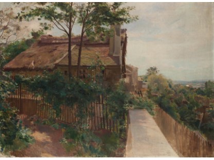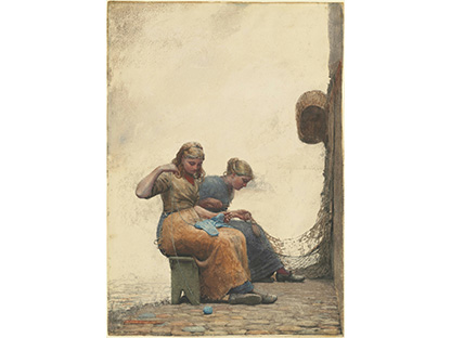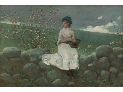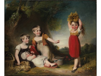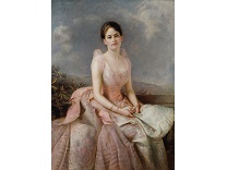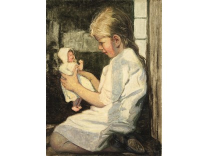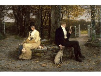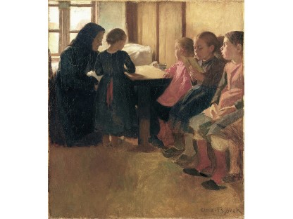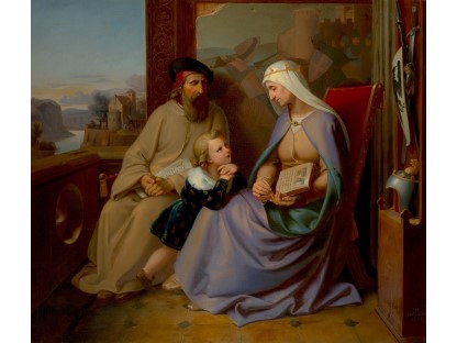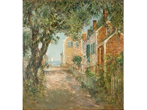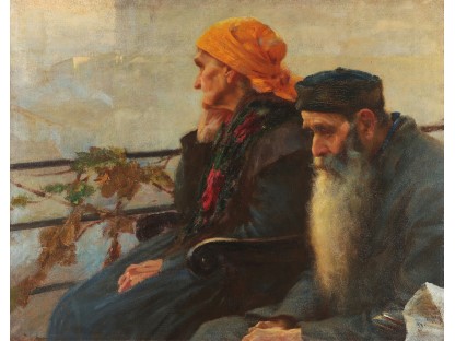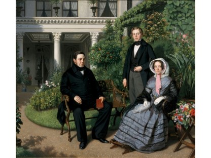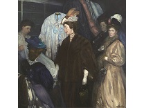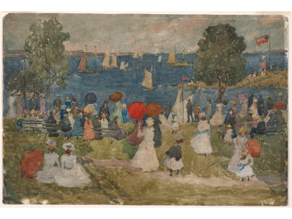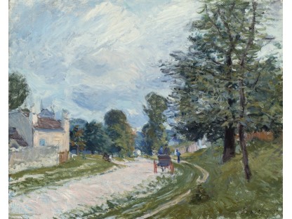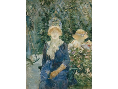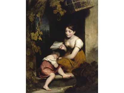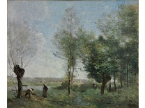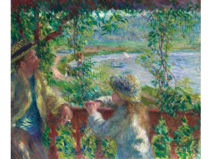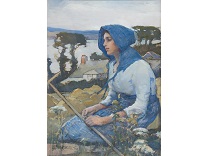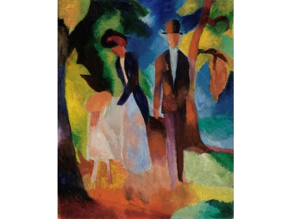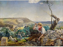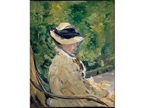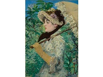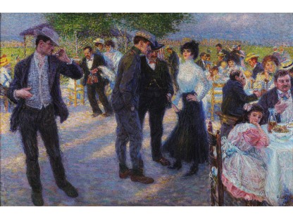 此画描绘了一个阳光明媚的清晨,母亲和孩子散步场景,充分表现了人物的惬意心情以及其中的微风、蓝天的那种恬静美好。