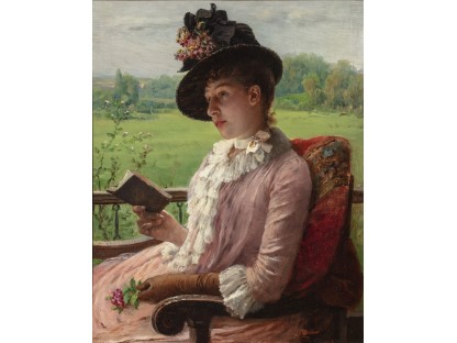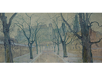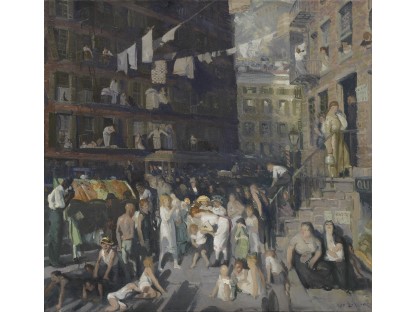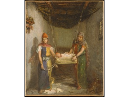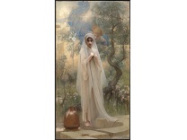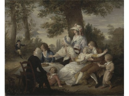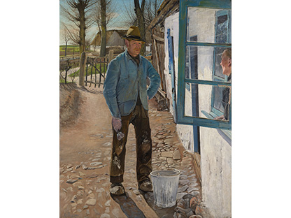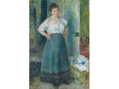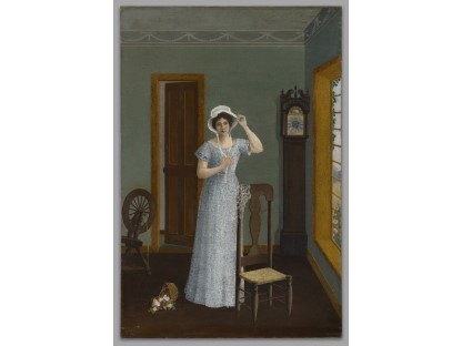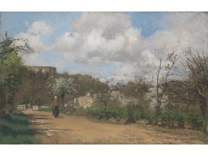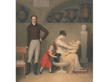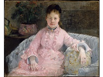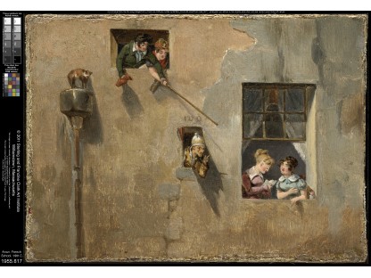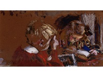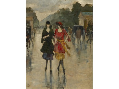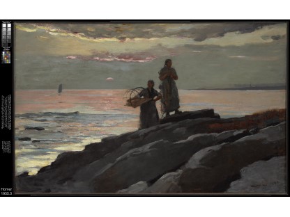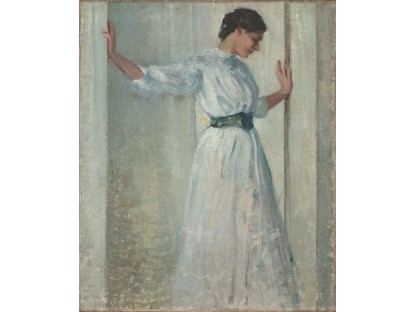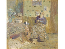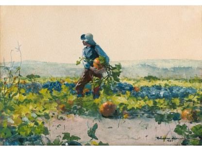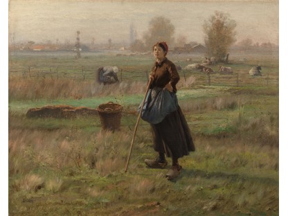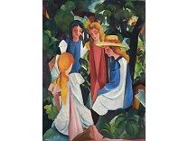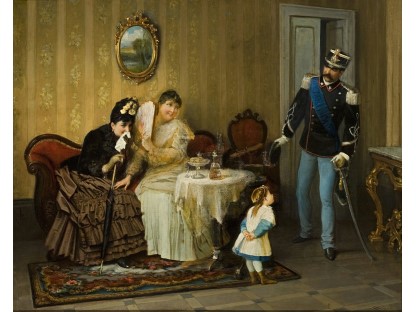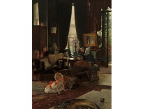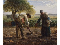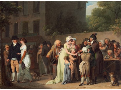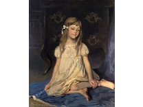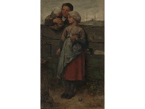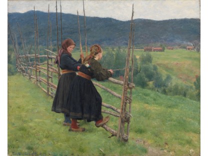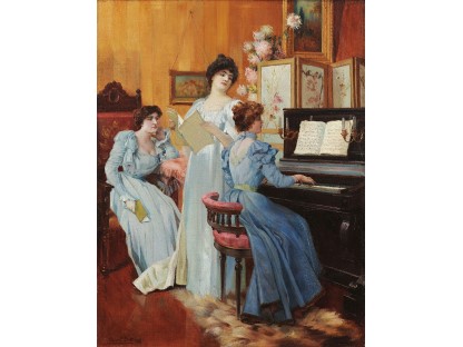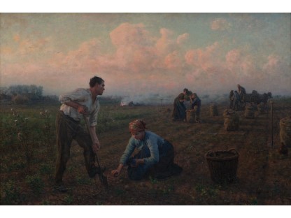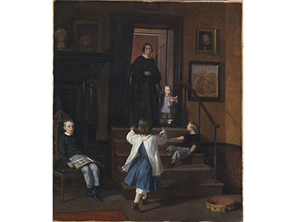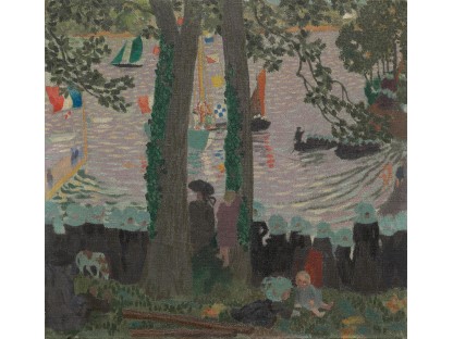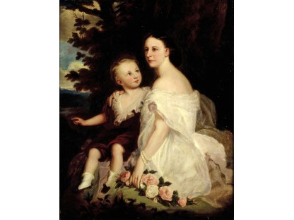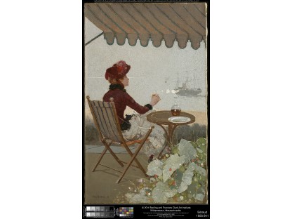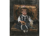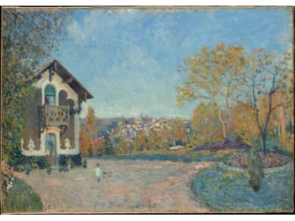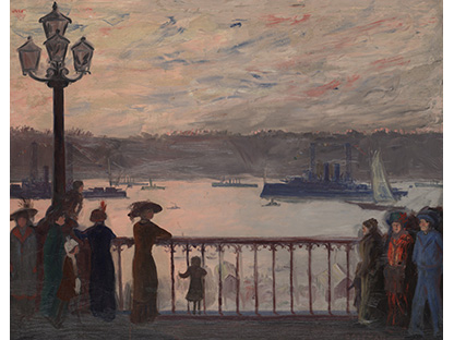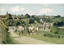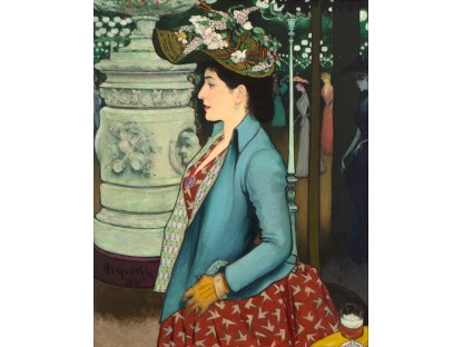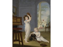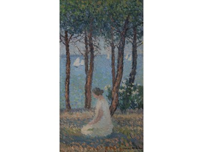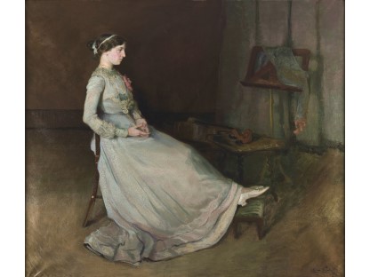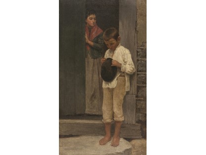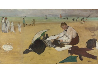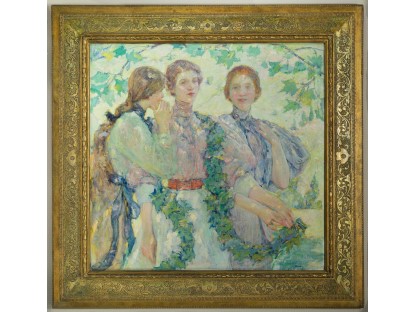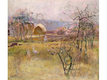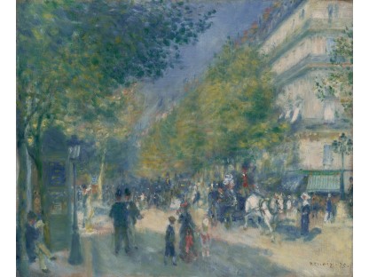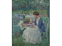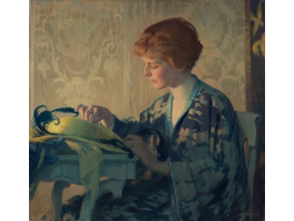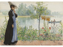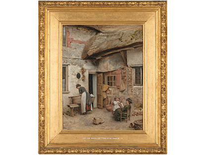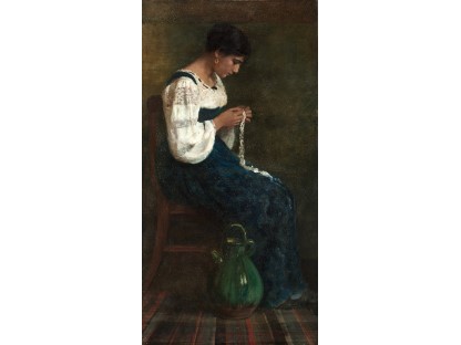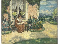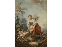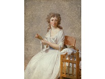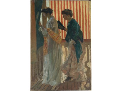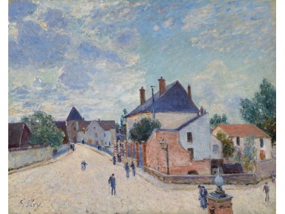 此画描绘了一个阳光明媚的清晨,母亲和孩子散步场景,充分表现了人物的惬意心情以及其中的微风、蓝天的那种恬静美好。