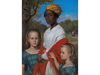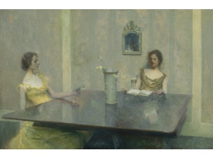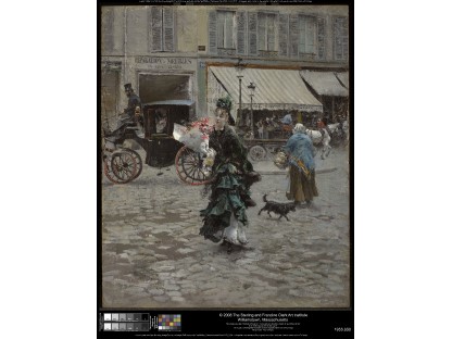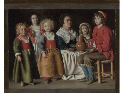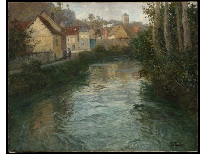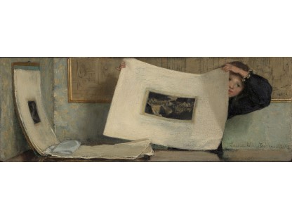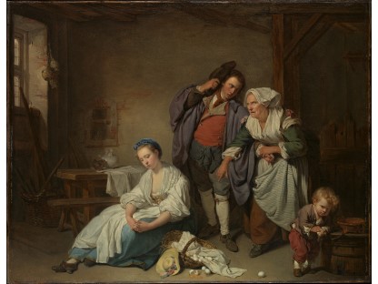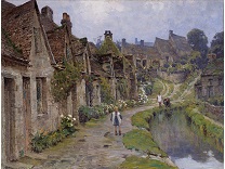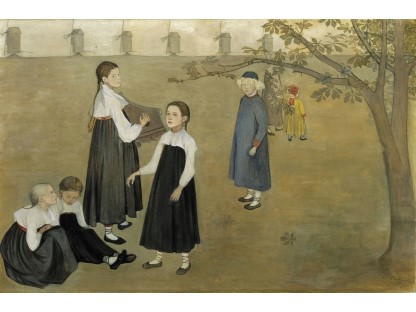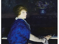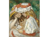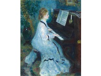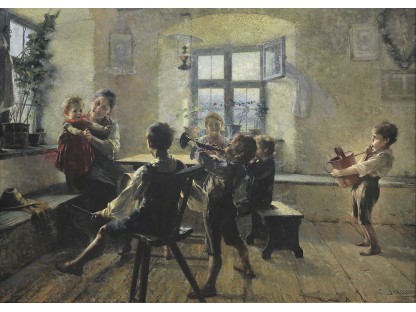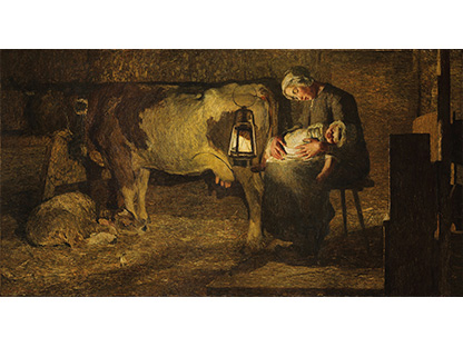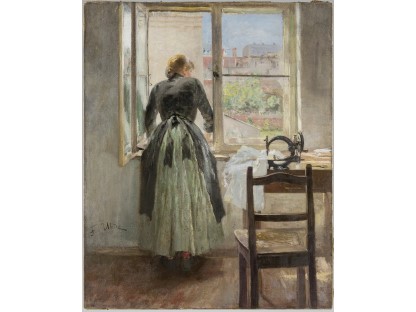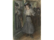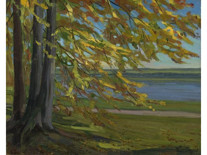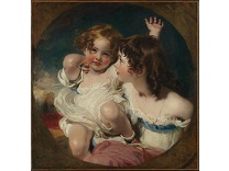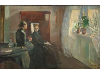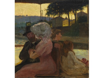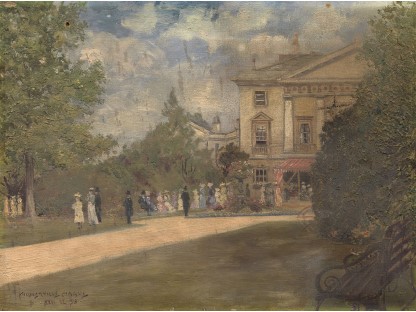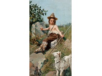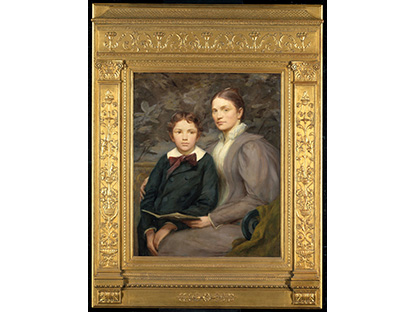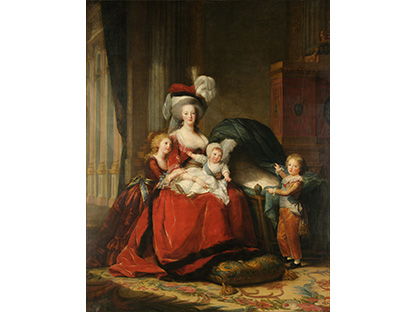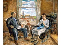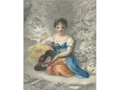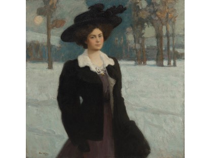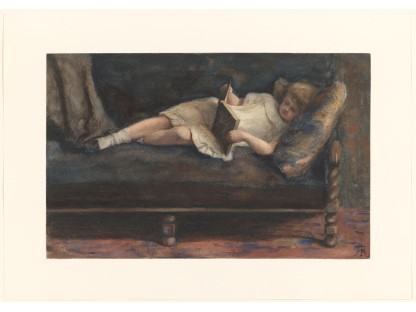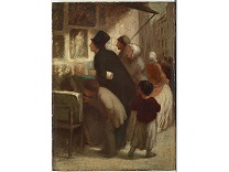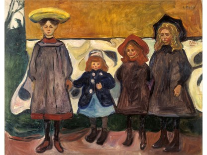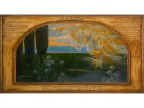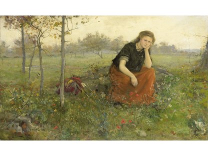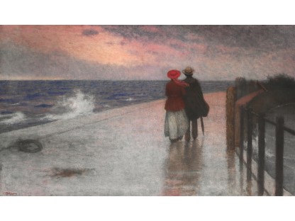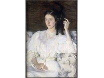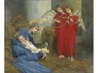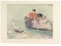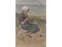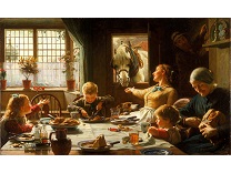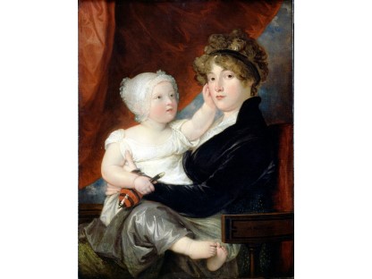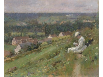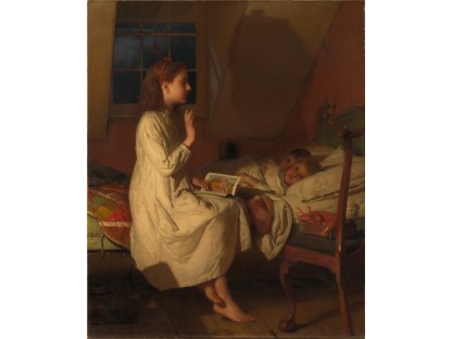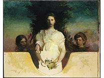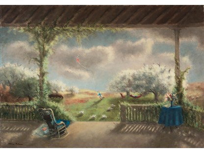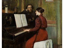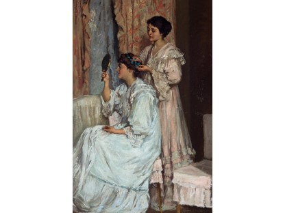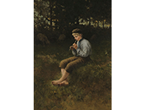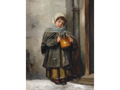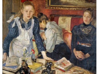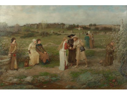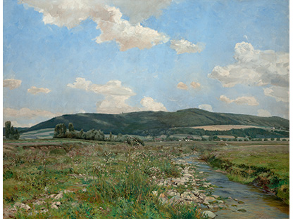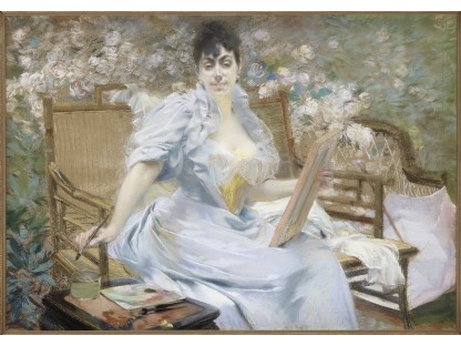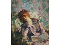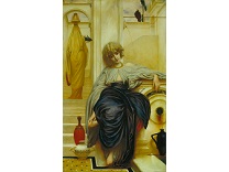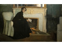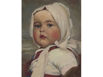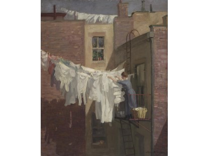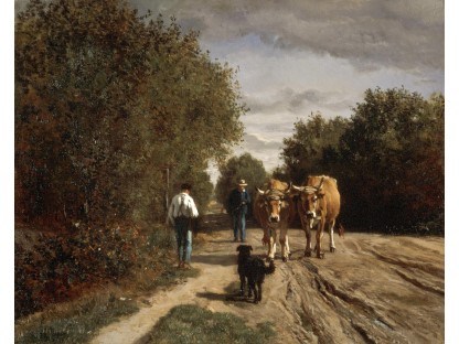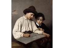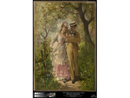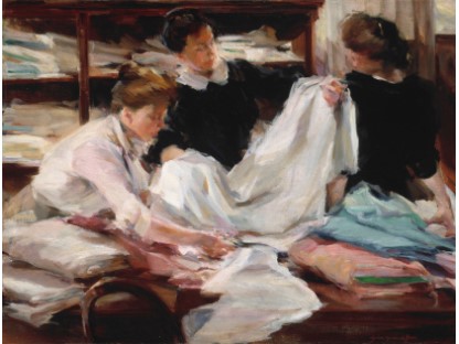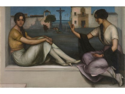 此画描绘了一个阳光明媚的清晨,母亲和孩子散步场景,充分表现了人物的惬意心情以及其中的微风、蓝天的那种恬静美好。