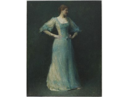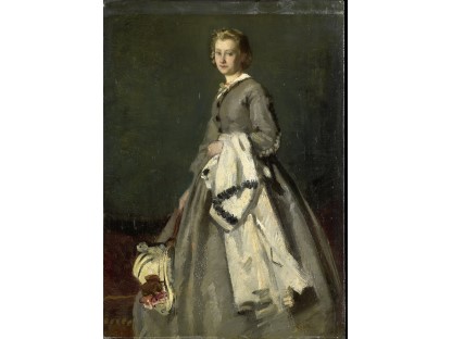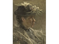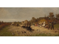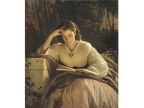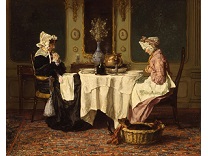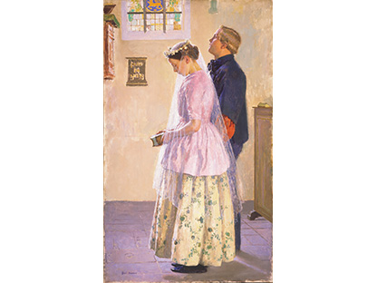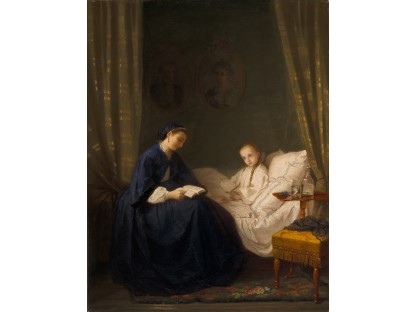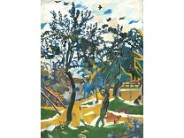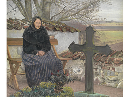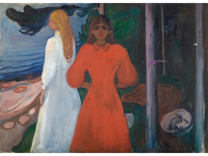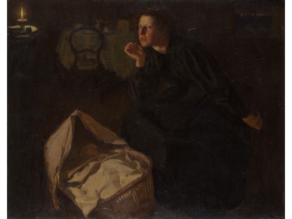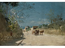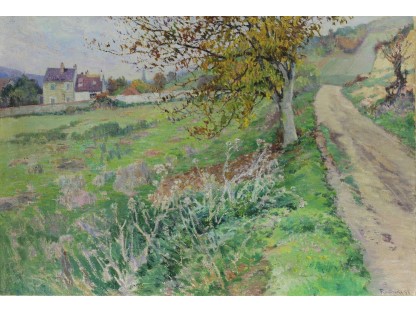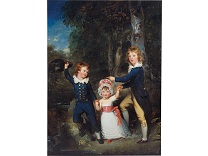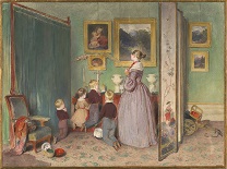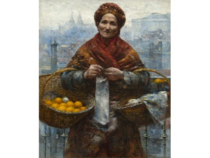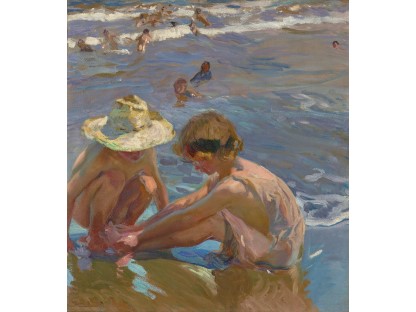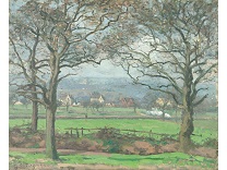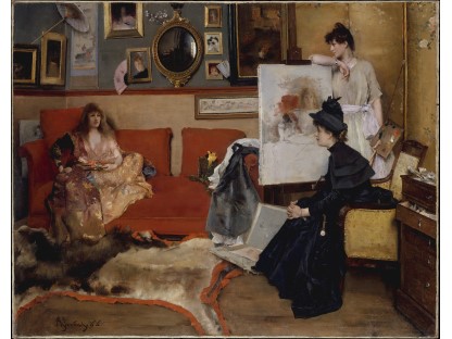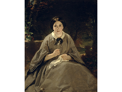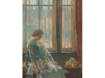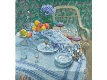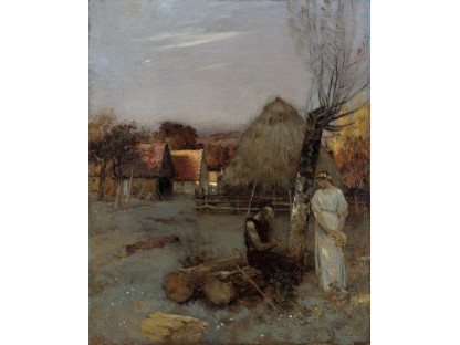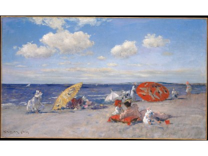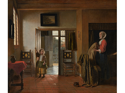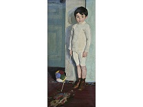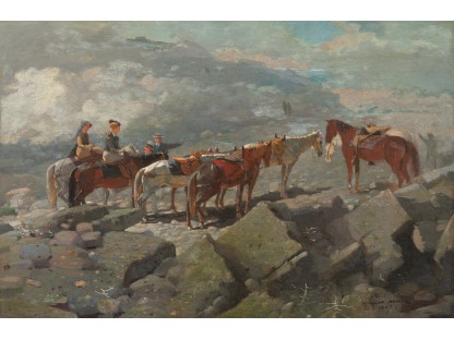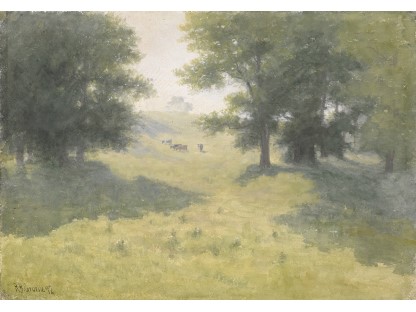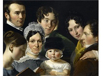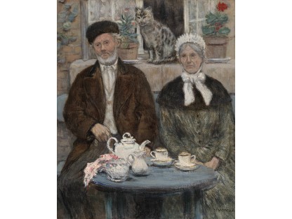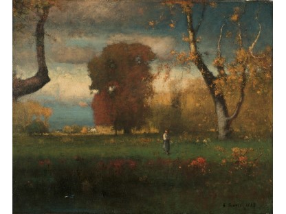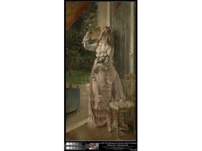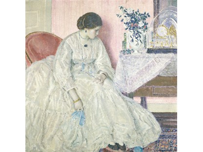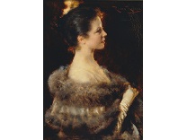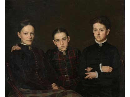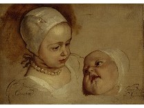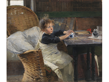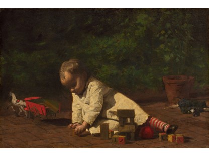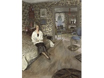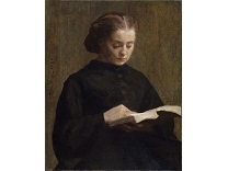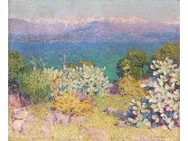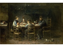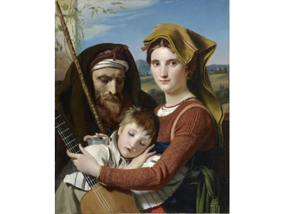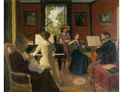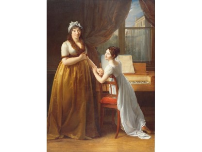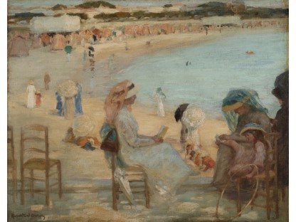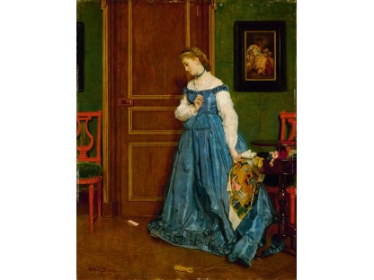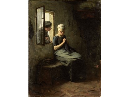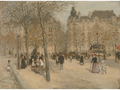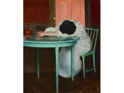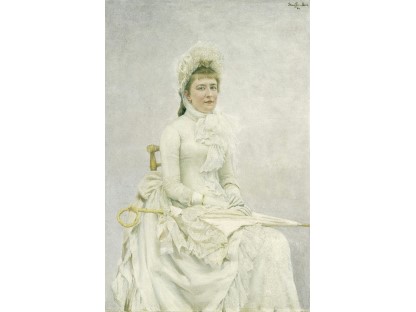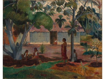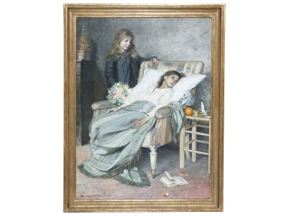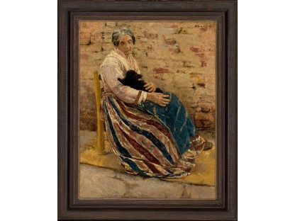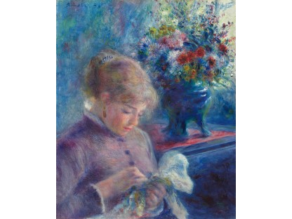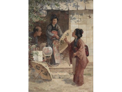 此画描绘了一个阳光明媚的清晨,母亲和孩子散步场景,充分表现了人物的惬意心情以及其中的微风、蓝天的那种恬静美好。