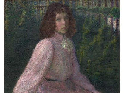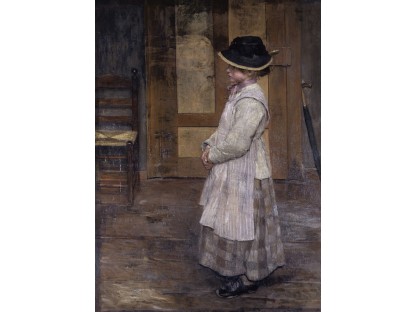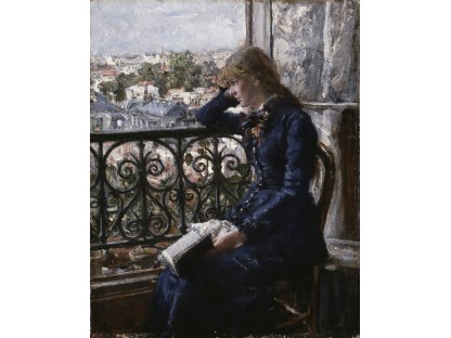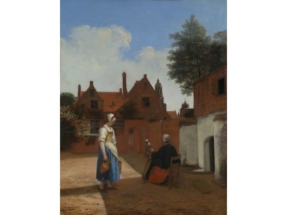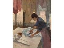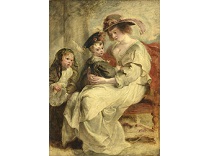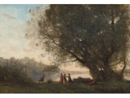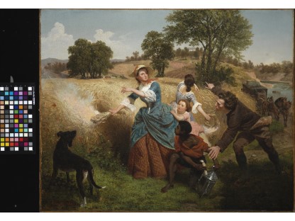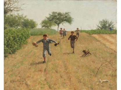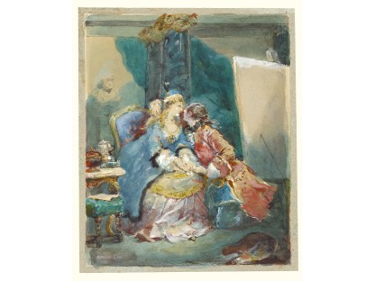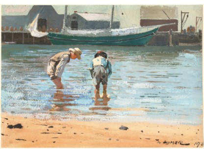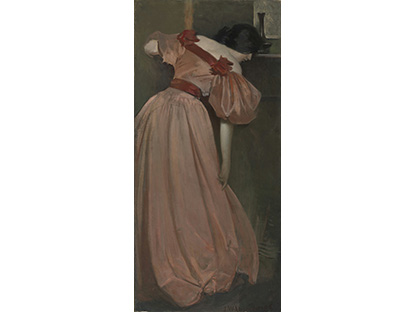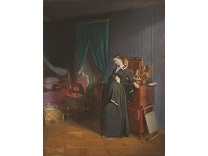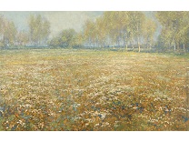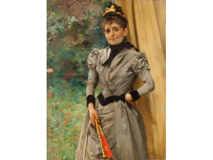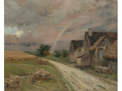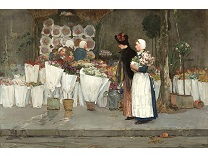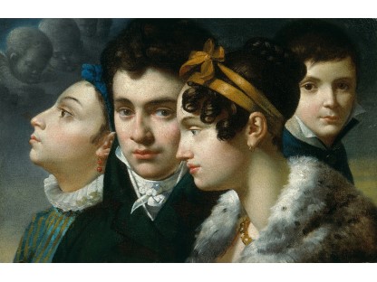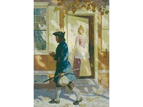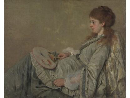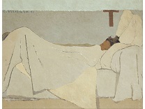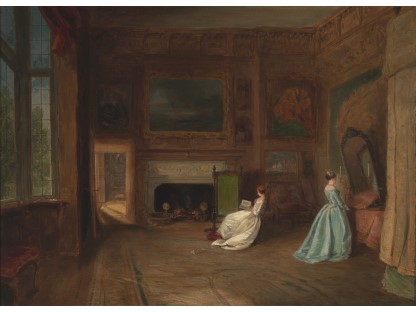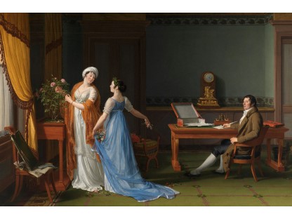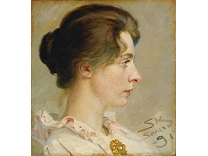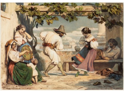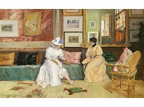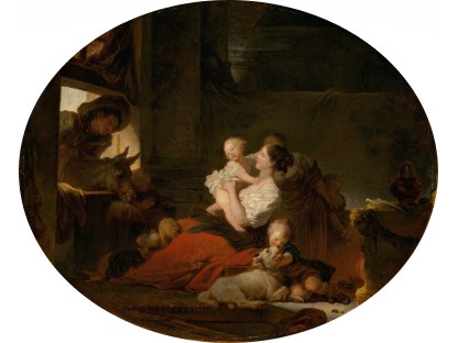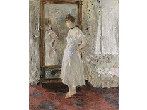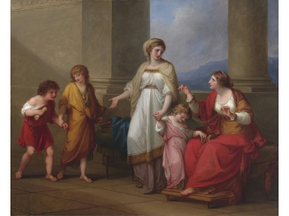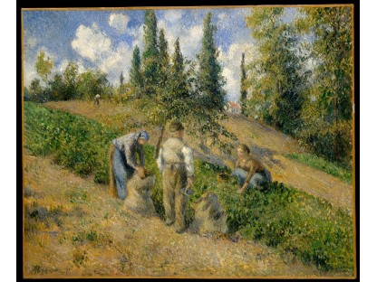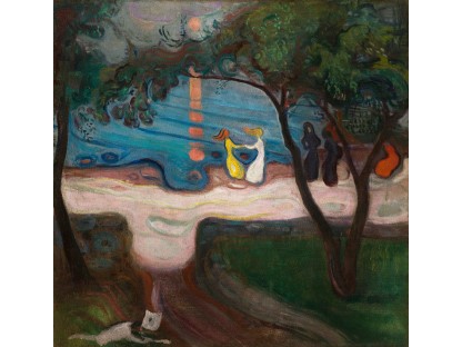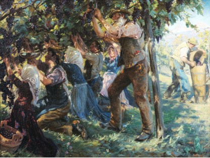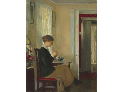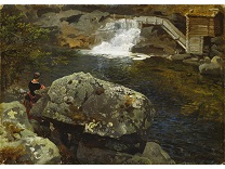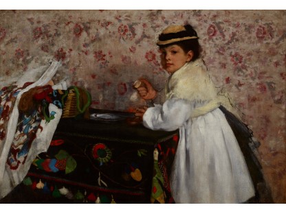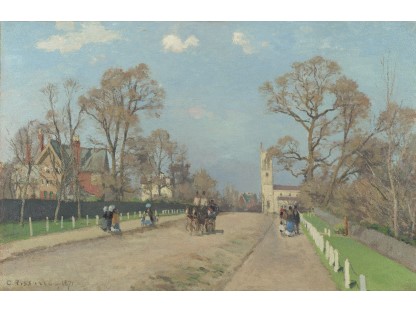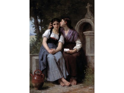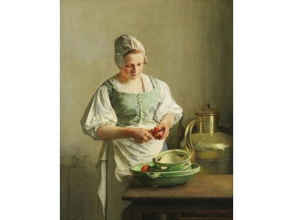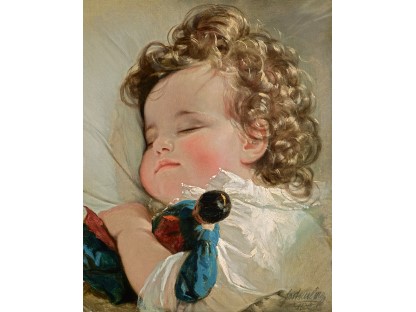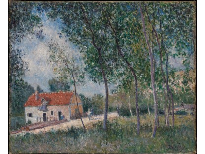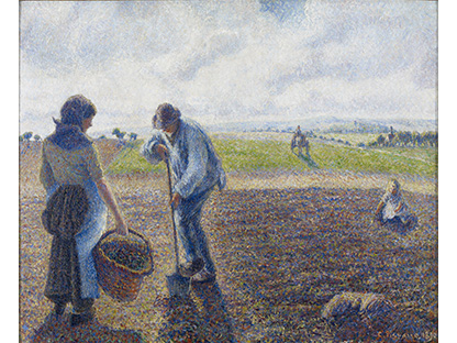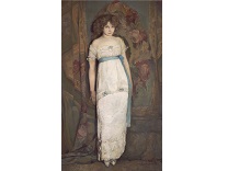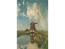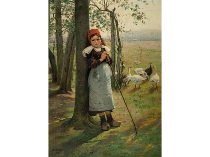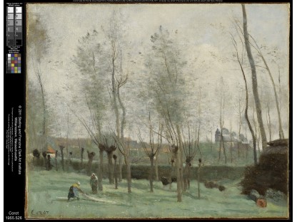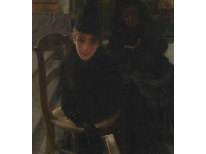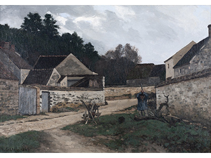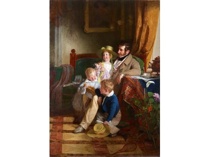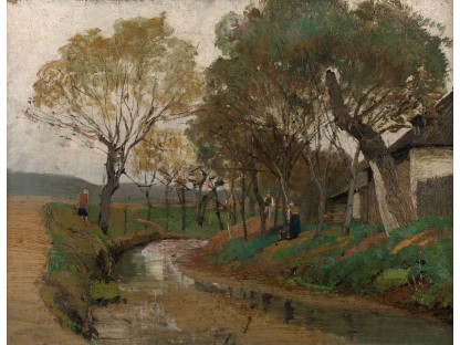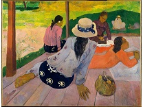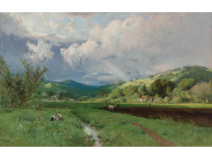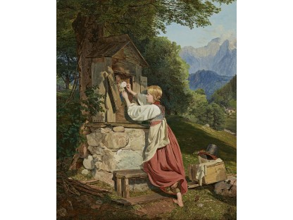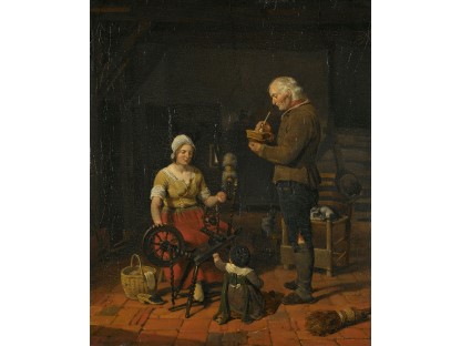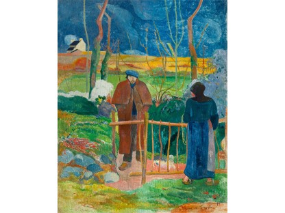 此画描绘了一个阳光明媚的清晨,母亲和孩子散步场景,充分表现了人物的惬意心情以及其中的微风、蓝天的那种恬静美好。