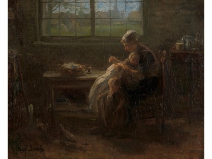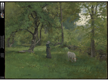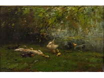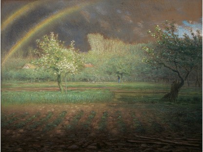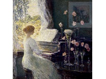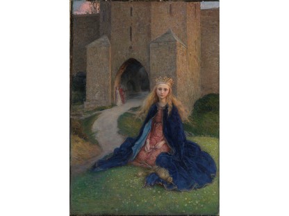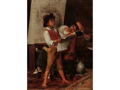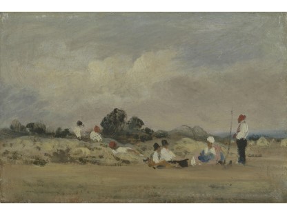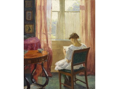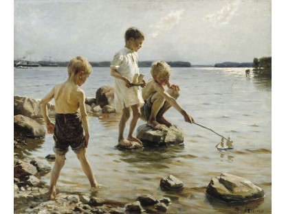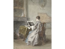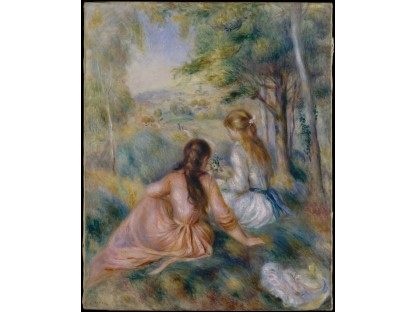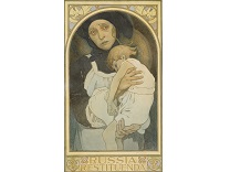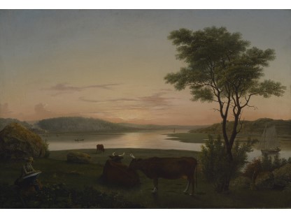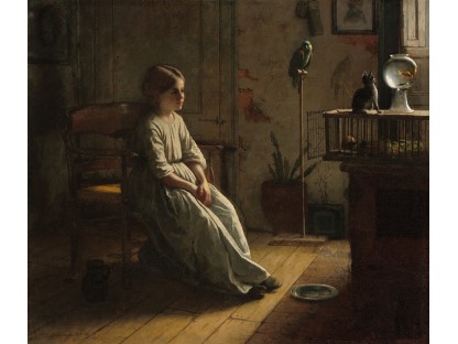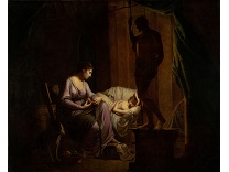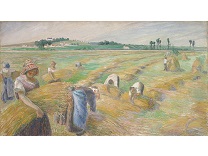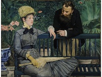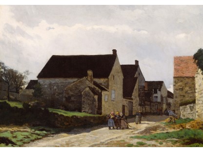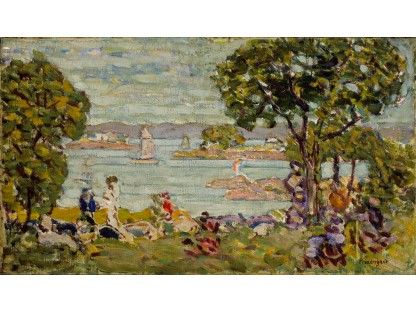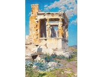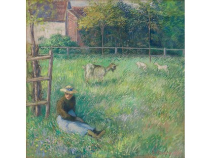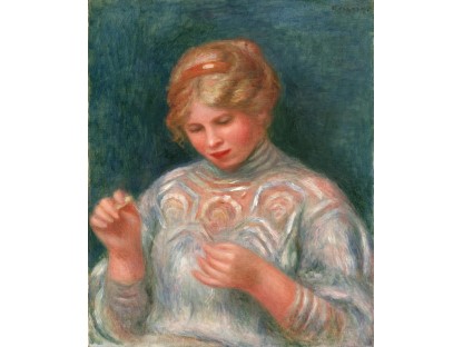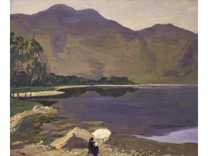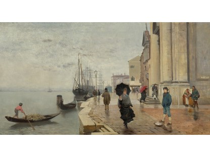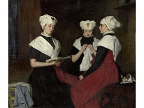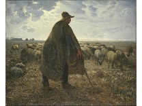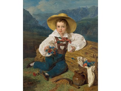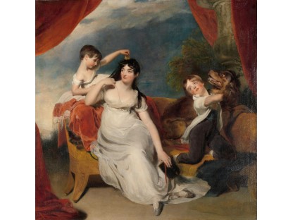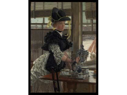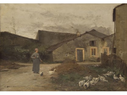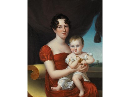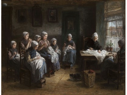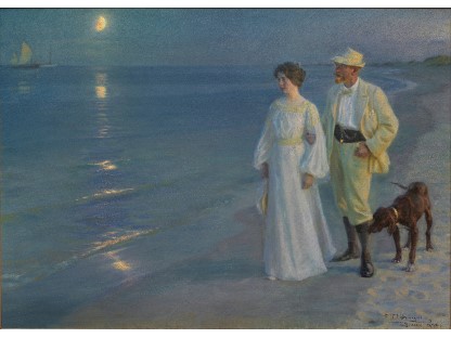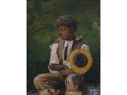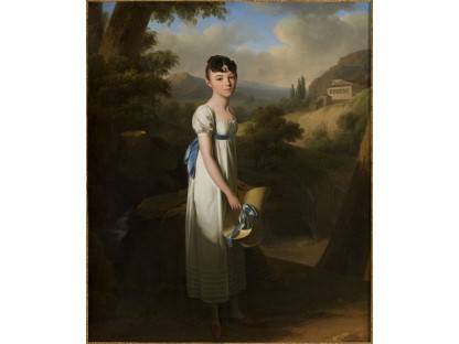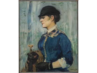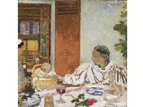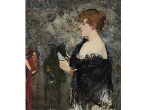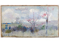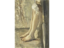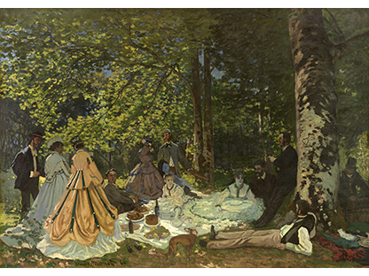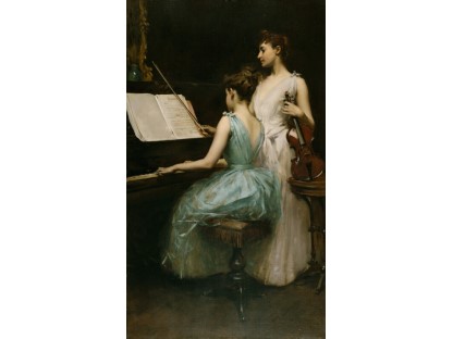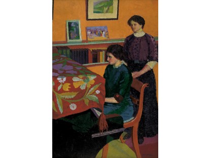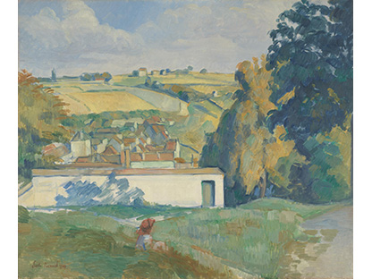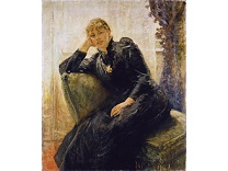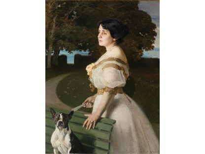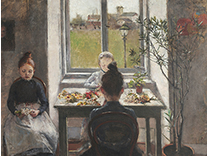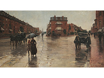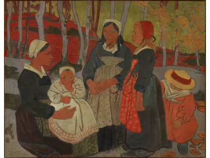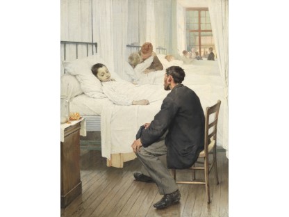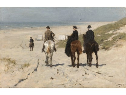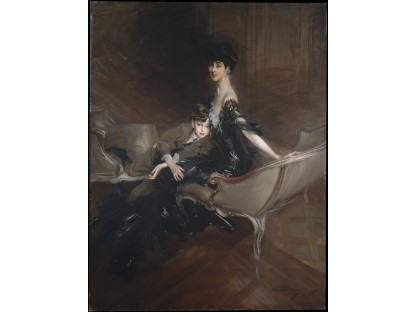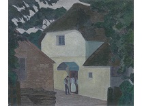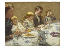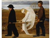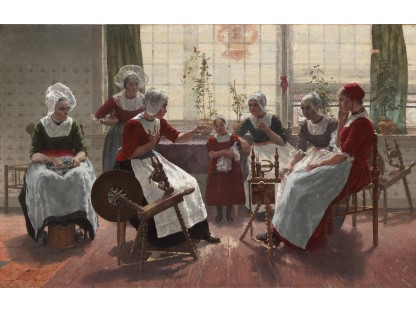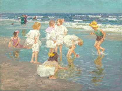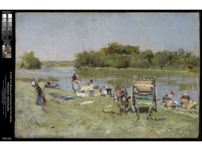 此画描绘了一个阳光明媚的清晨,母亲和孩子散步场景,充分表现了人物的惬意心情以及其中的微风、蓝天的那种恬静美好。