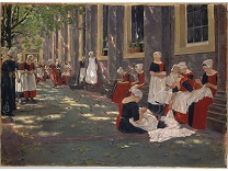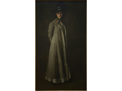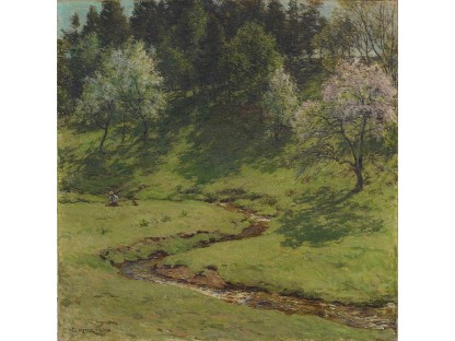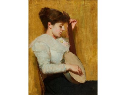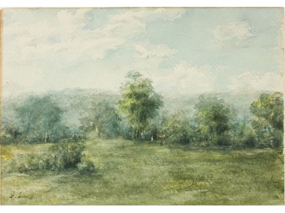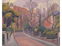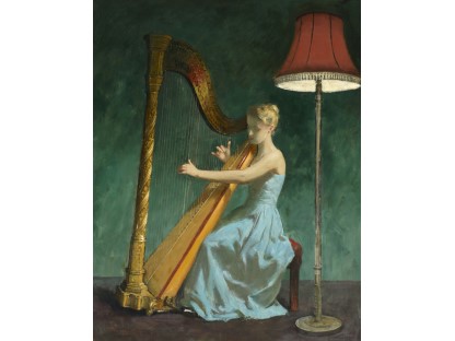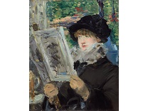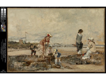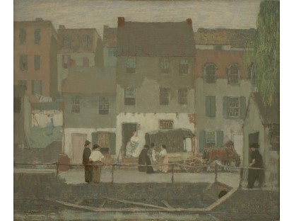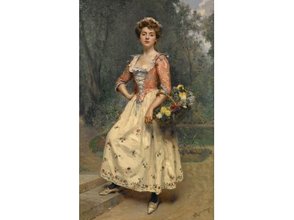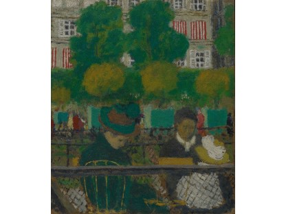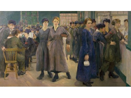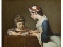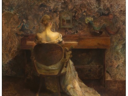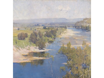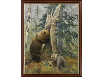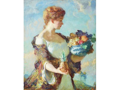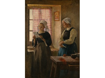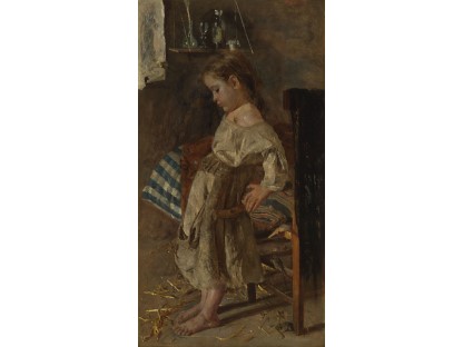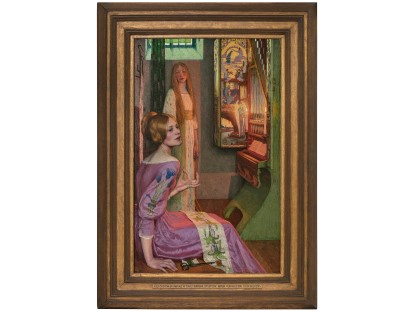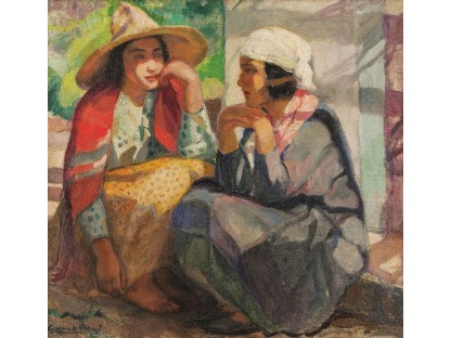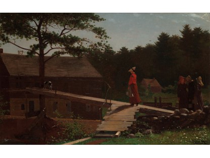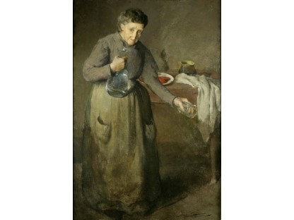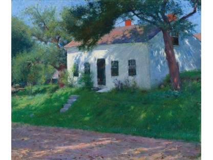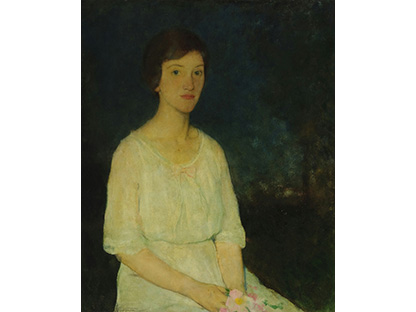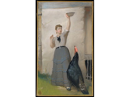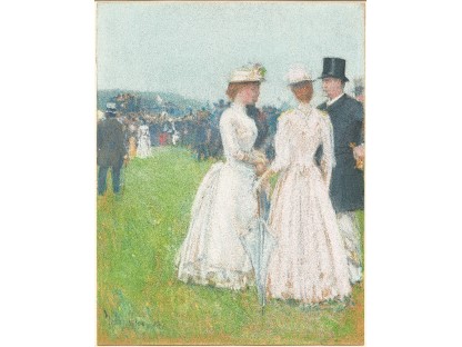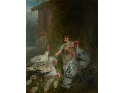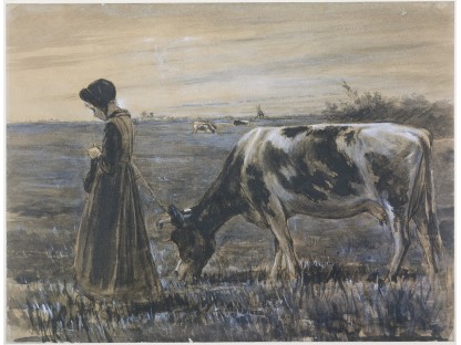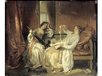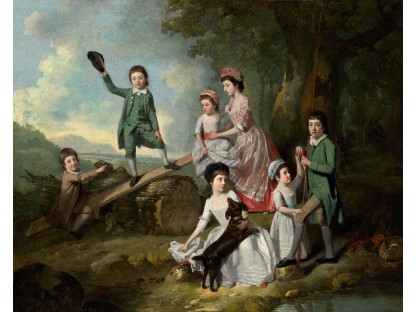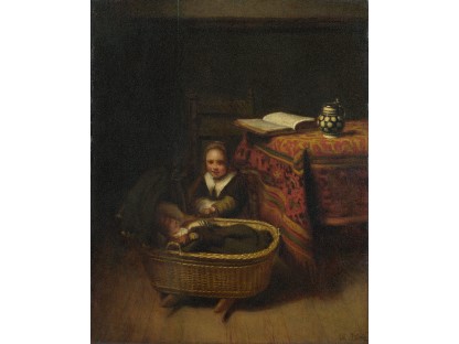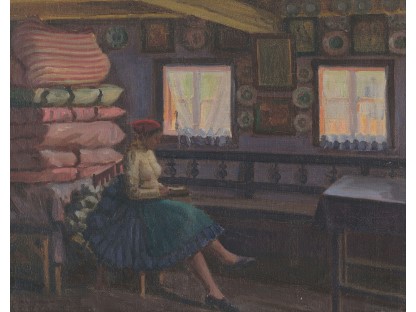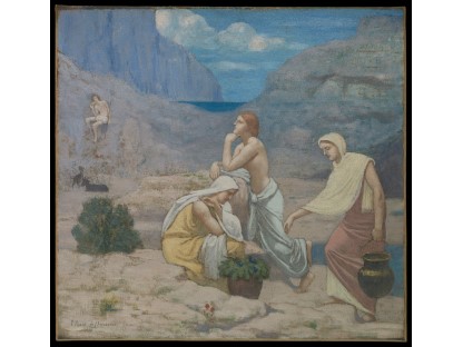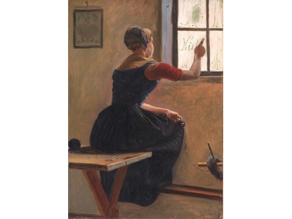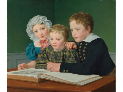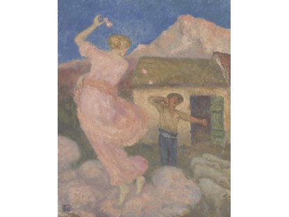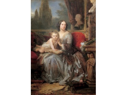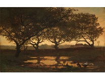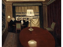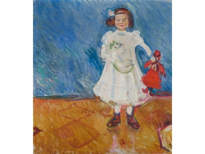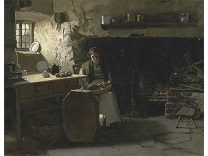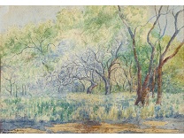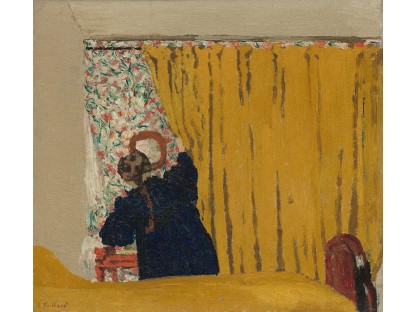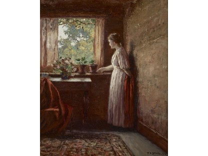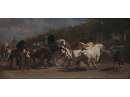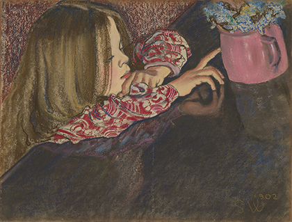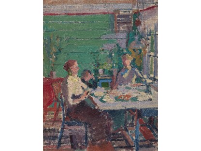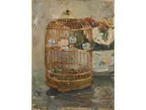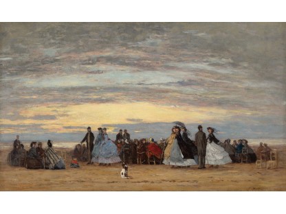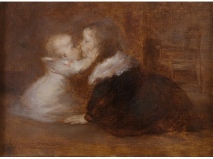 此画描绘了一个阳光明媚的清晨,母亲和孩子散步场景,充分表现了人物的惬意心情以及其中的微风、蓝天的那种恬静美好。