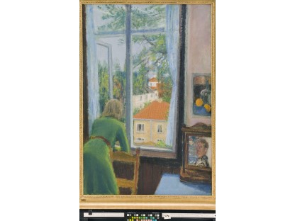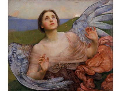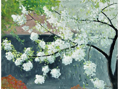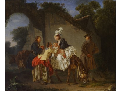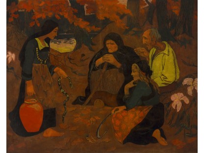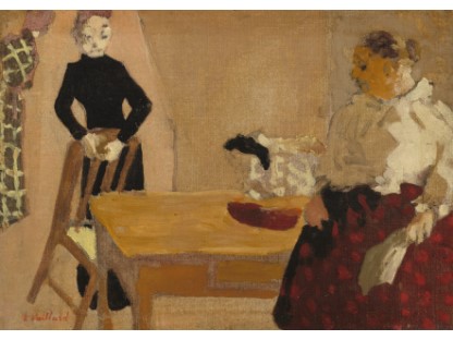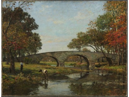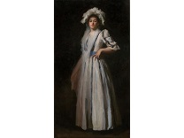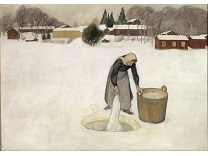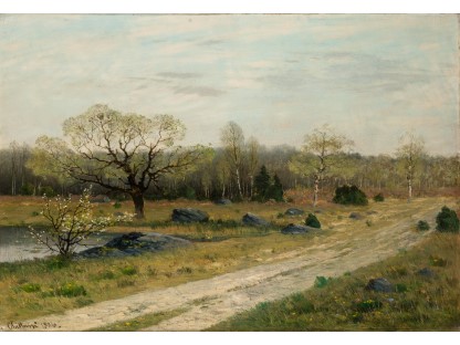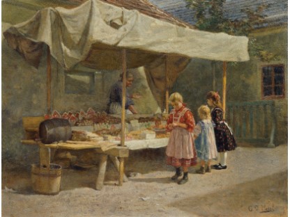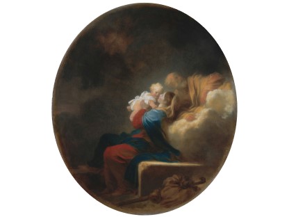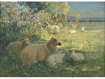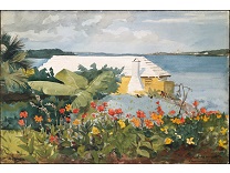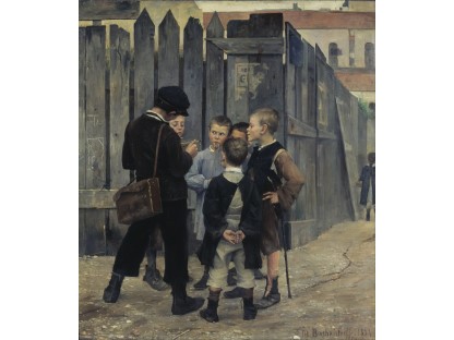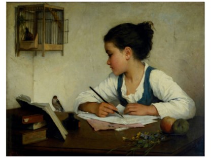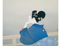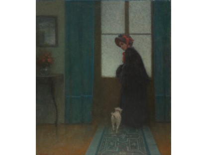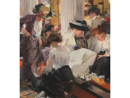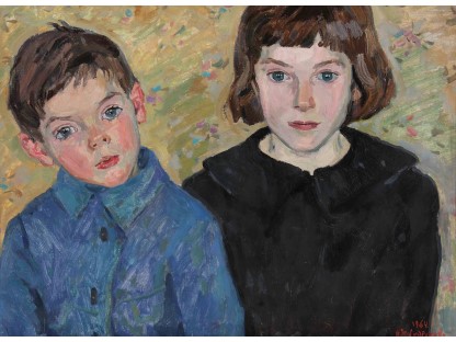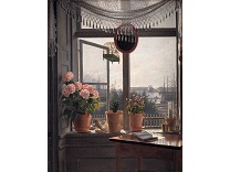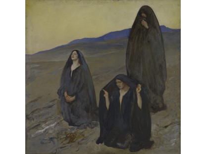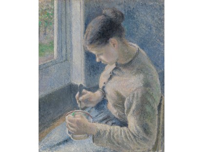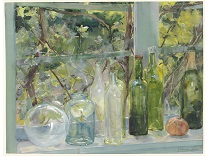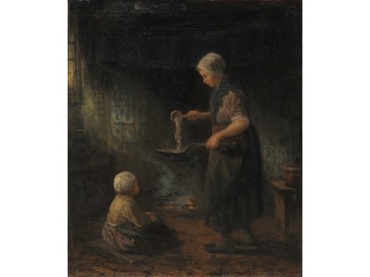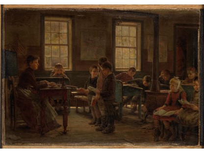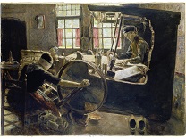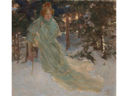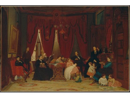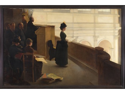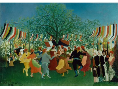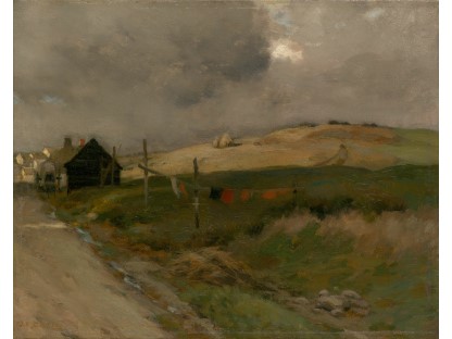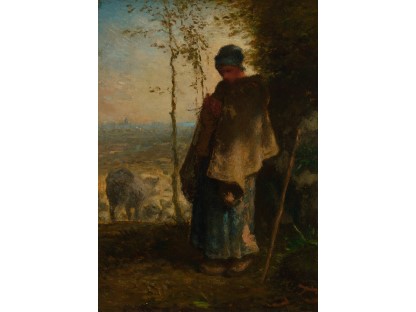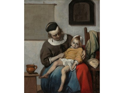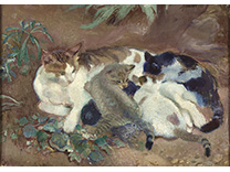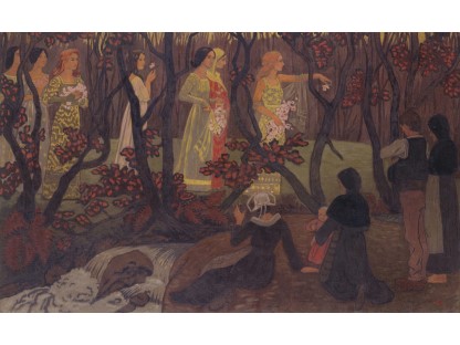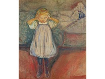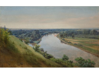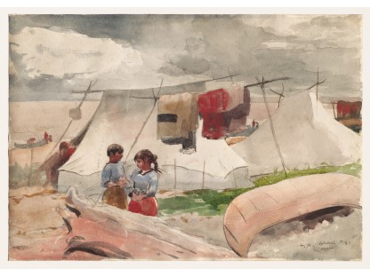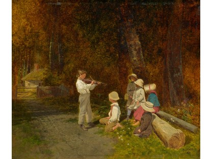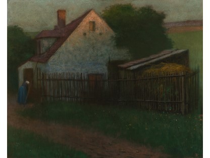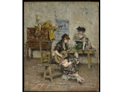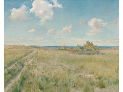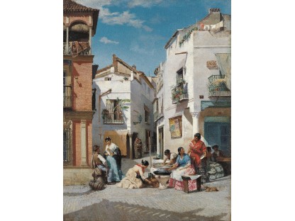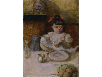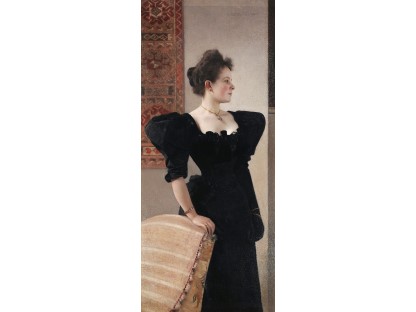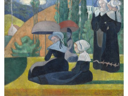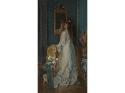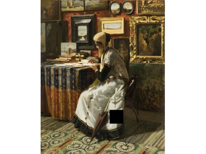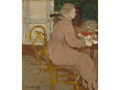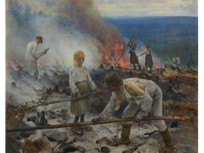 此画描绘了一个阳光明媚的清晨,母亲和孩子散步场景,充分表现了人物的惬意心情以及其中的微风、蓝天的那种恬静美好。