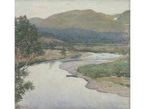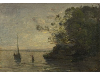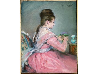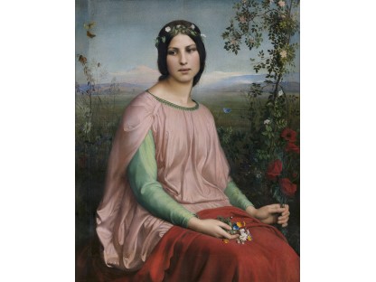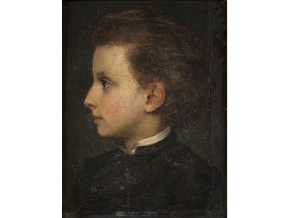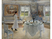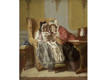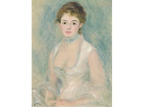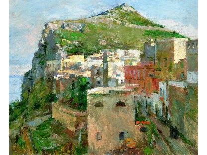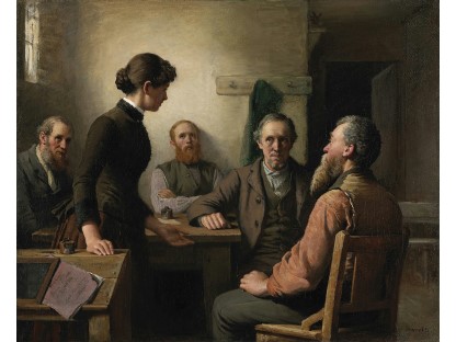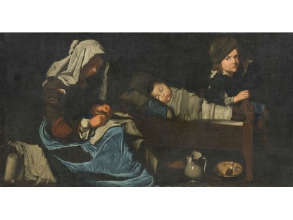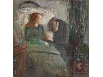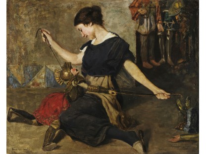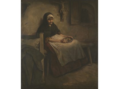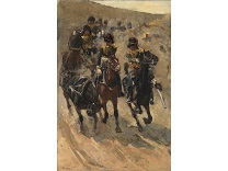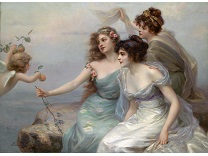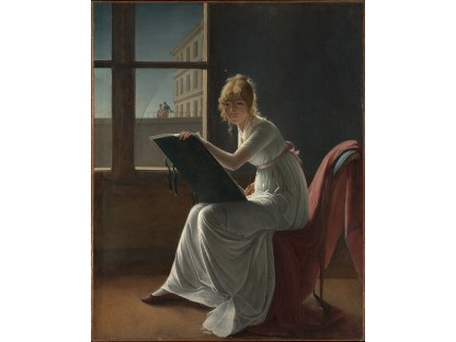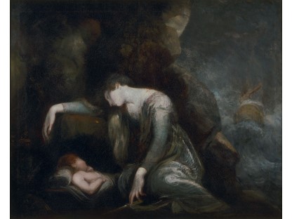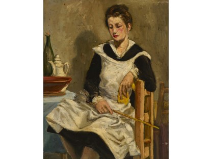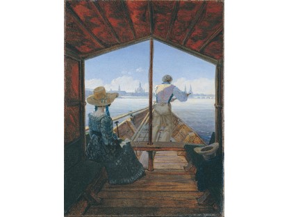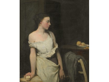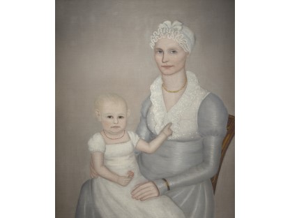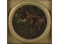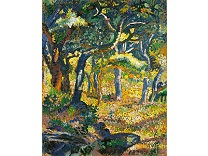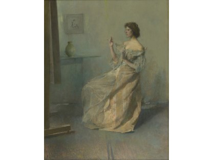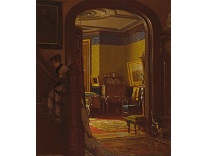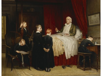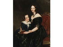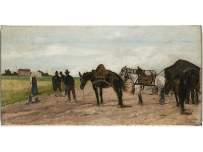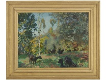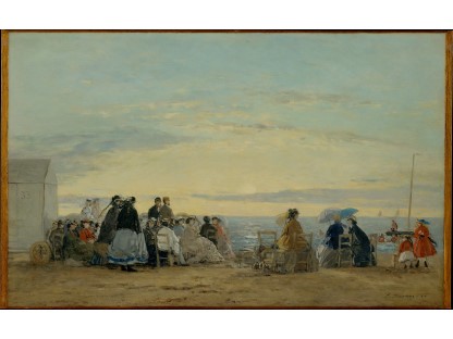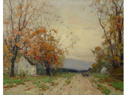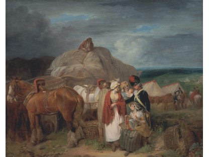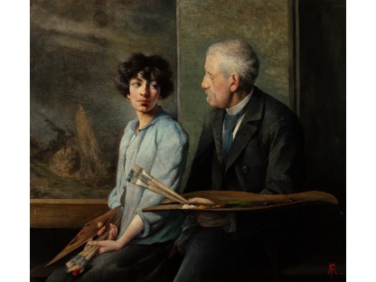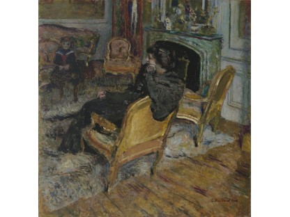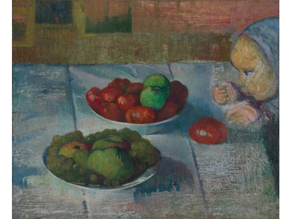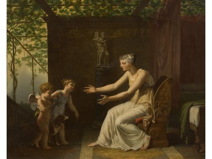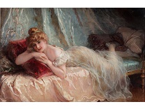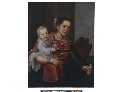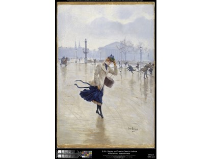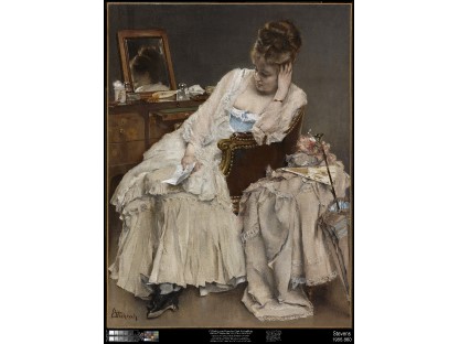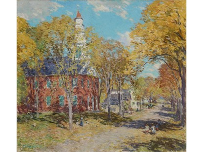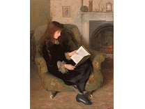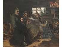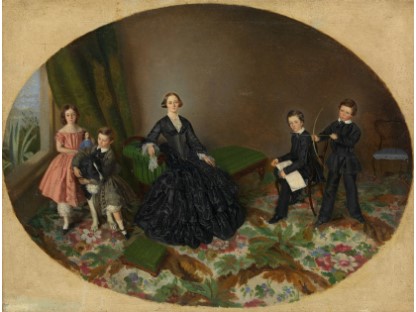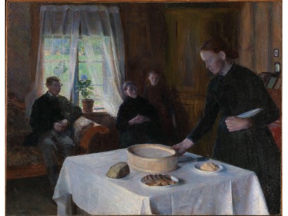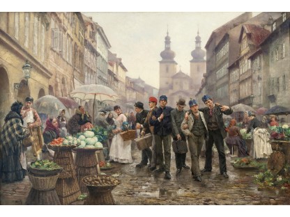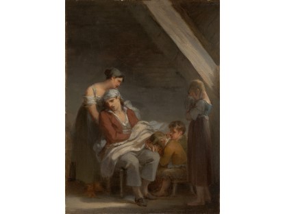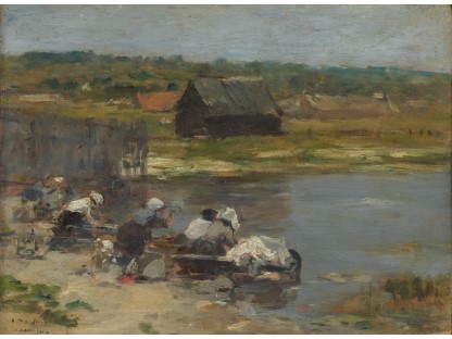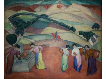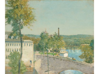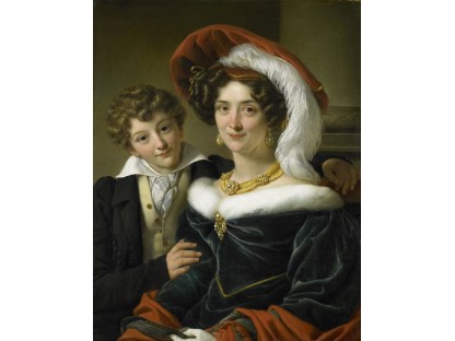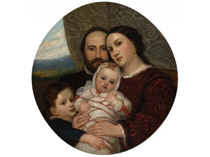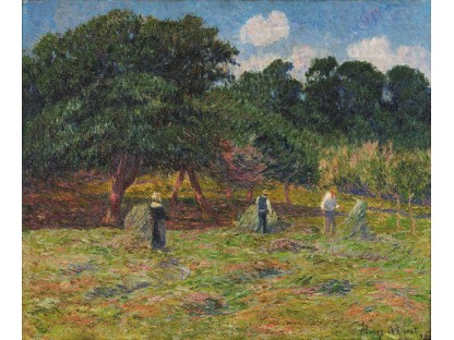 此画描绘了一个阳光明媚的清晨,母亲和孩子散步场景,充分表现了人物的惬意心情以及其中的微风、蓝天的那种恬静美好。