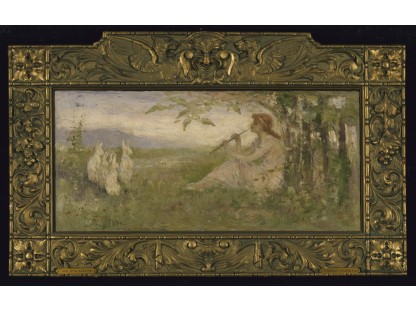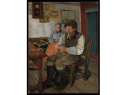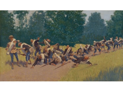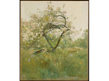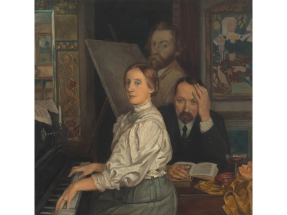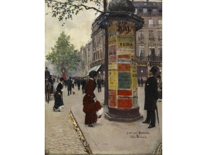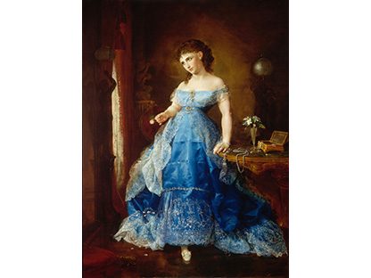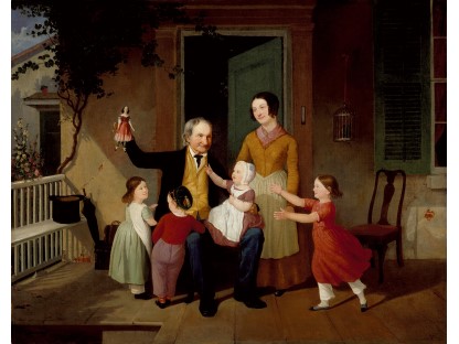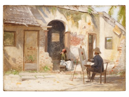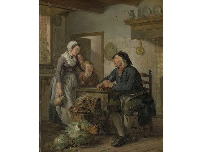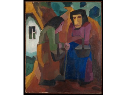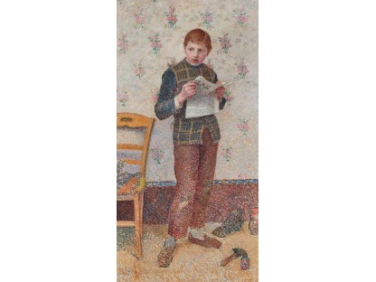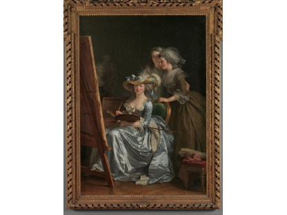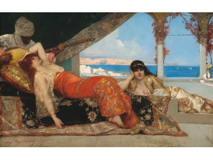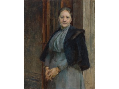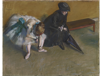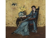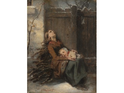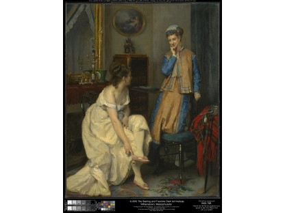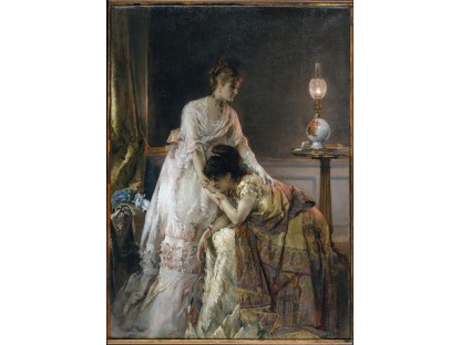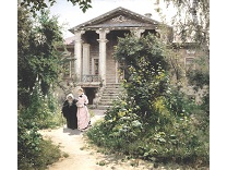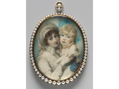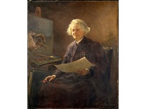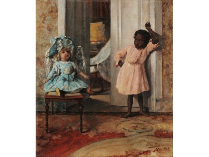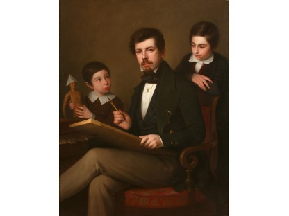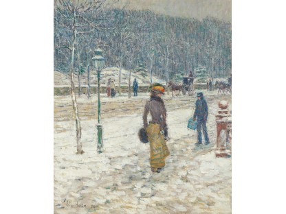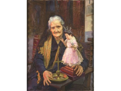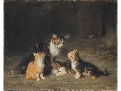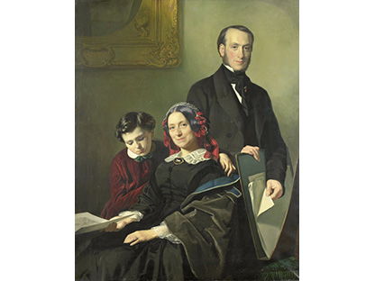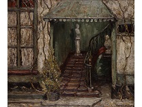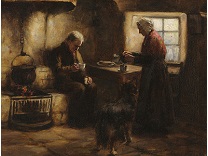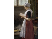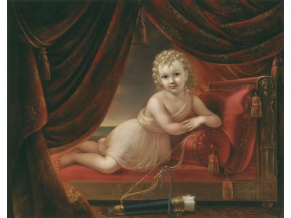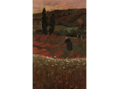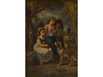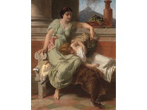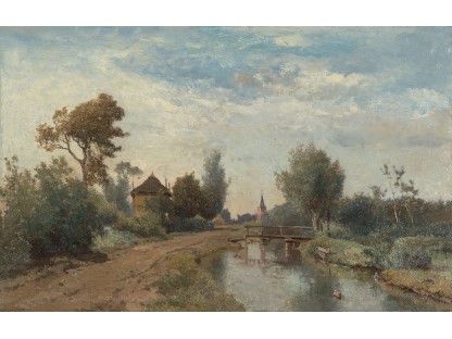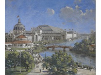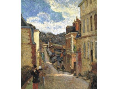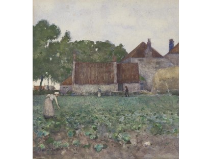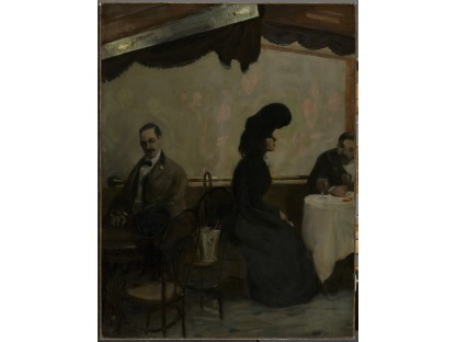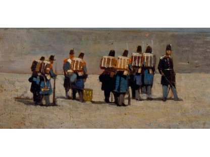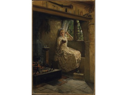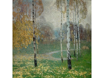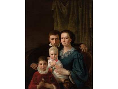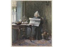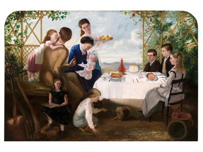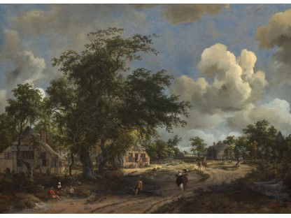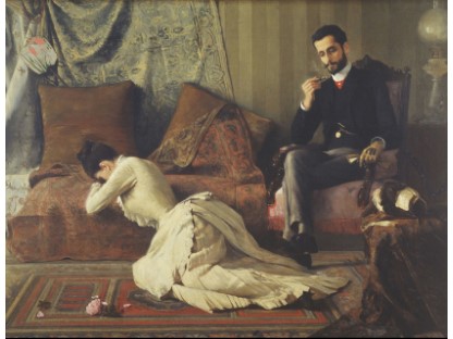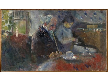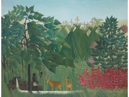 此画描绘了一个阳光明媚的清晨,母亲和孩子散步场景,充分表现了人物的惬意心情以及其中的微风、蓝天的那种恬静美好。