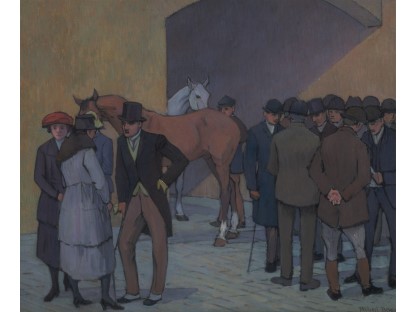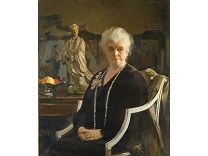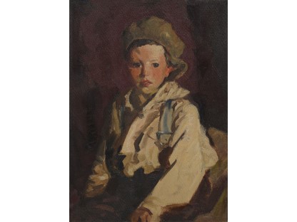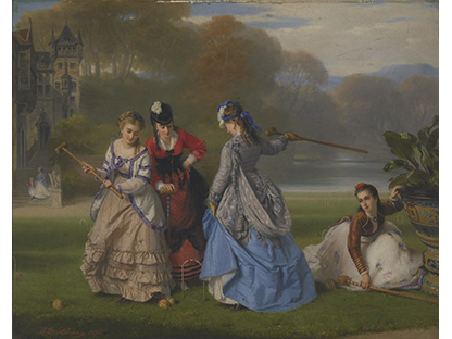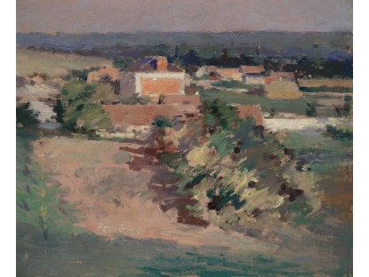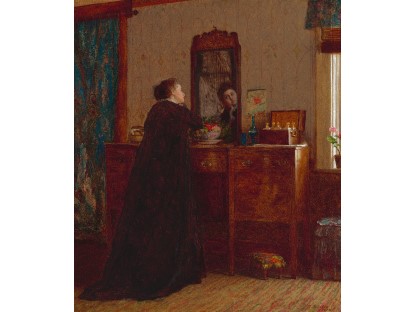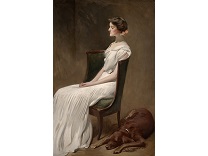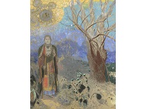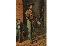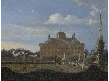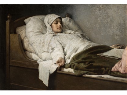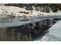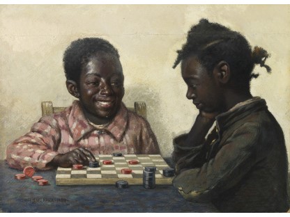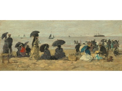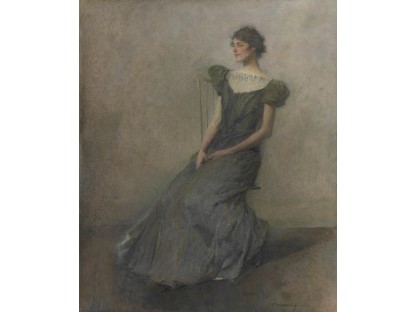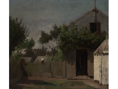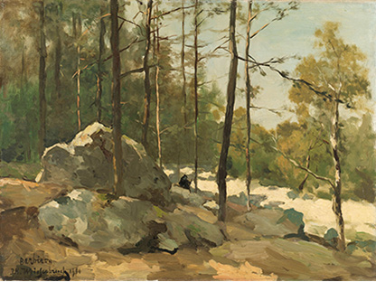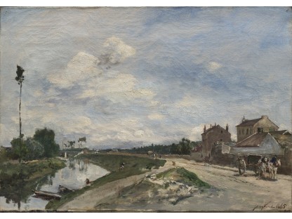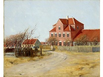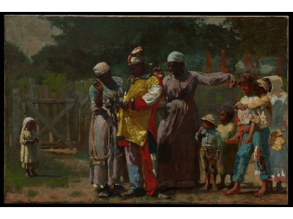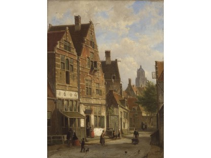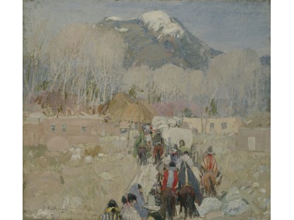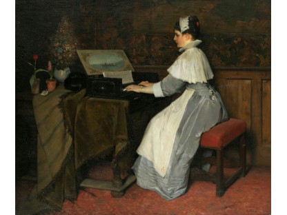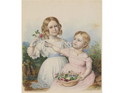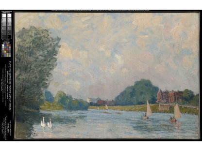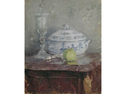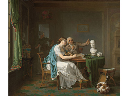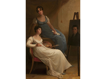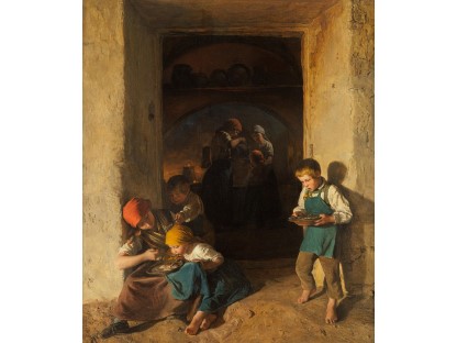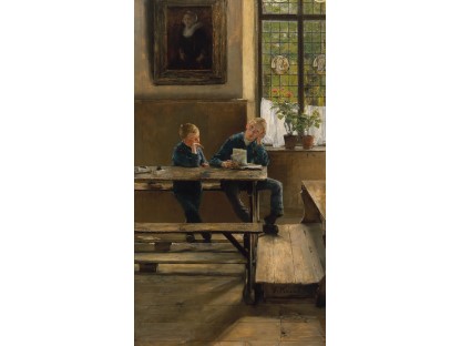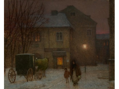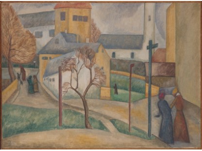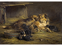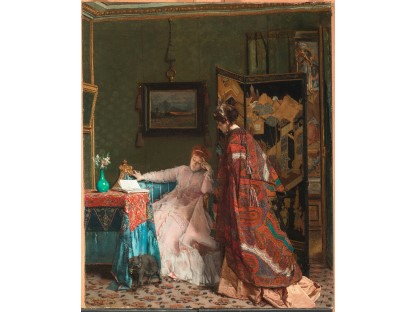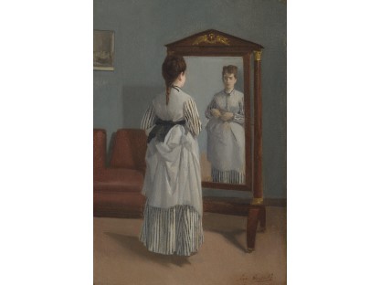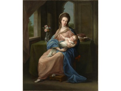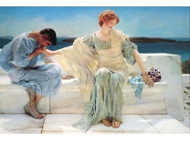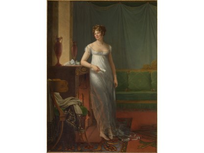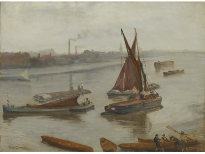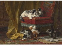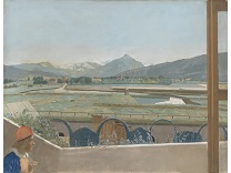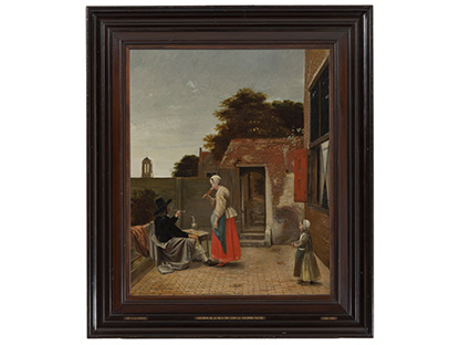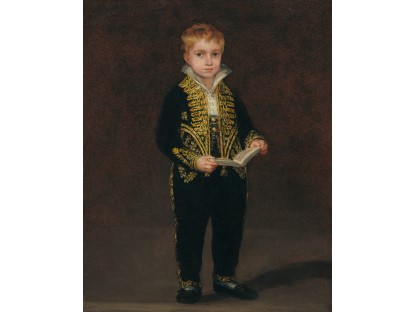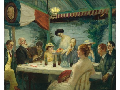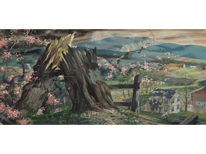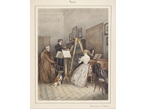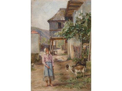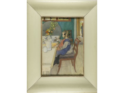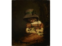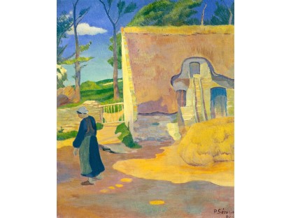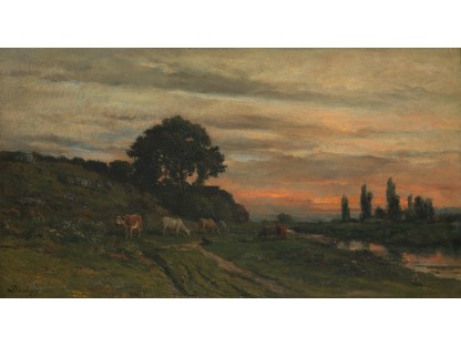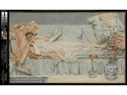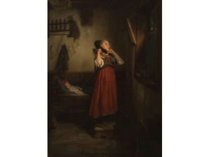 此画描绘了一个阳光明媚的清晨,母亲和孩子散步场景,充分表现了人物的惬意心情以及其中的微风、蓝天的那种恬静美好。