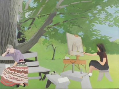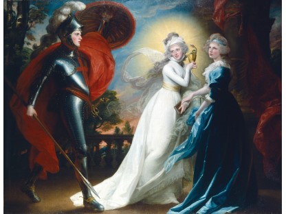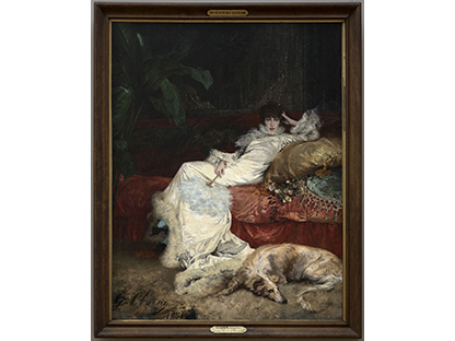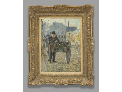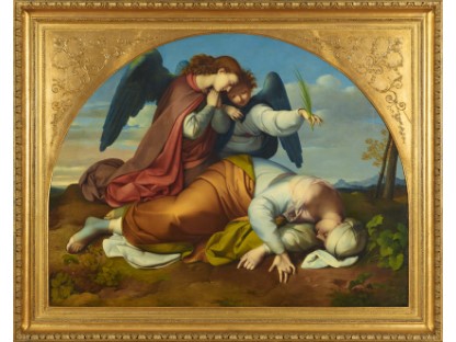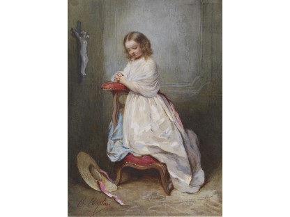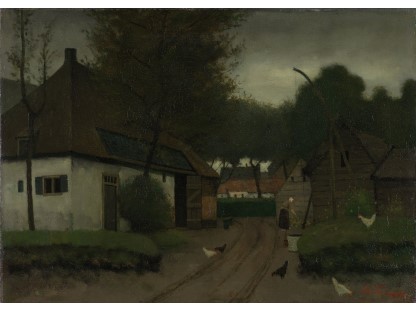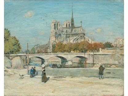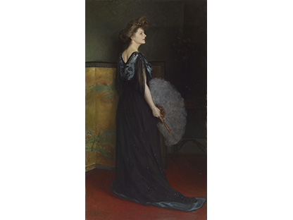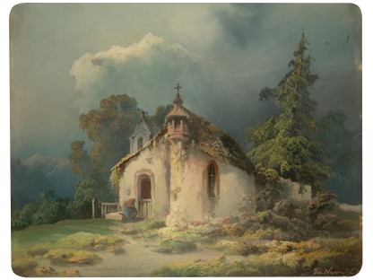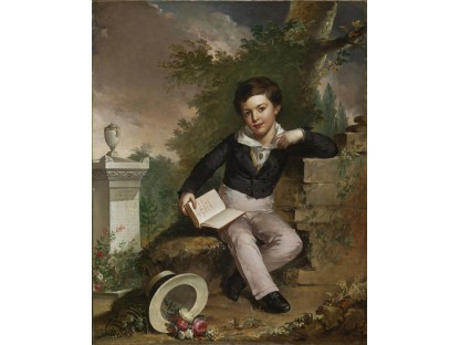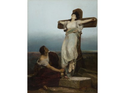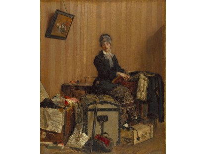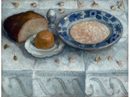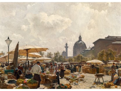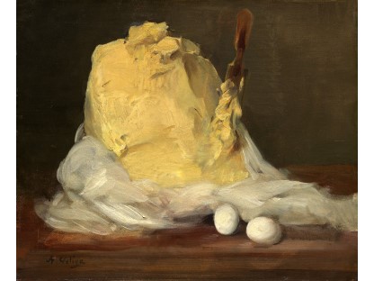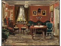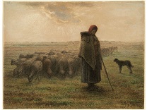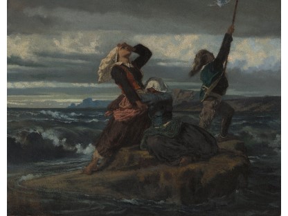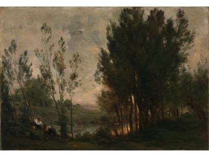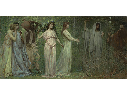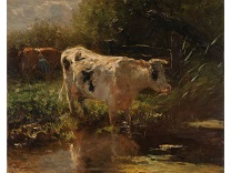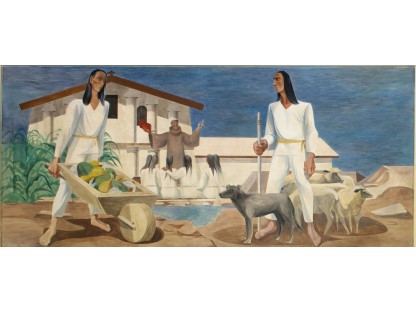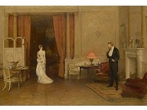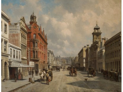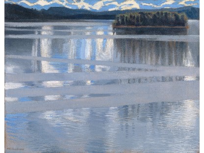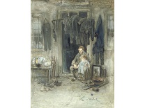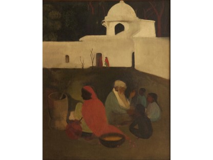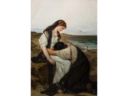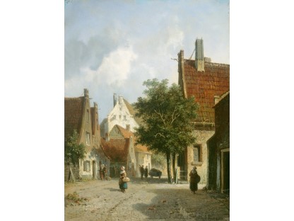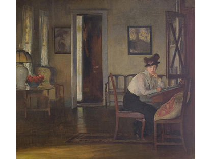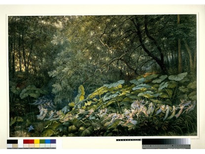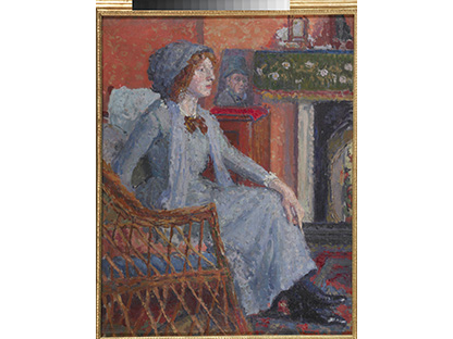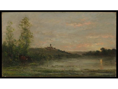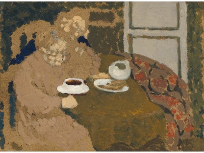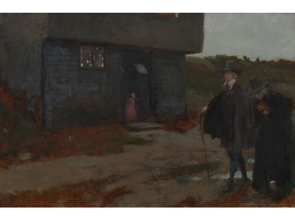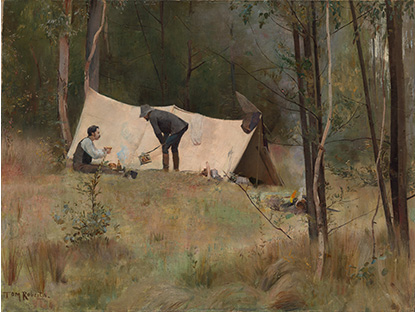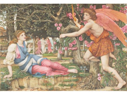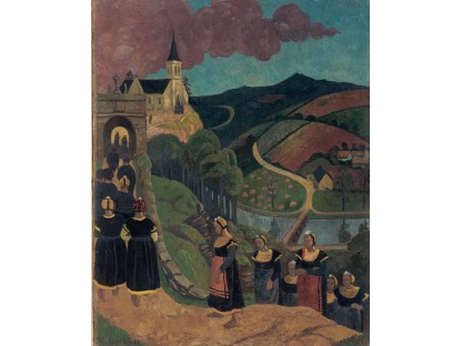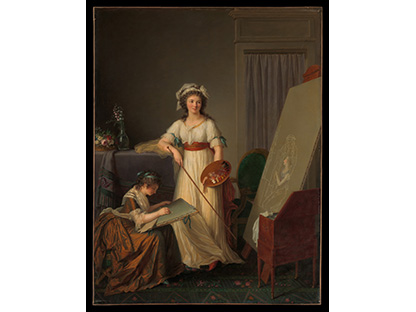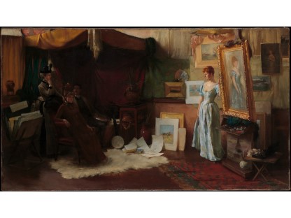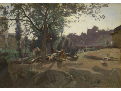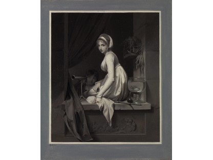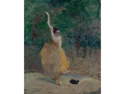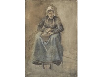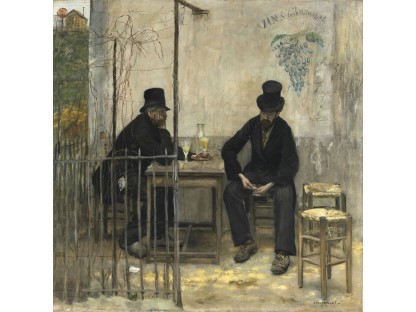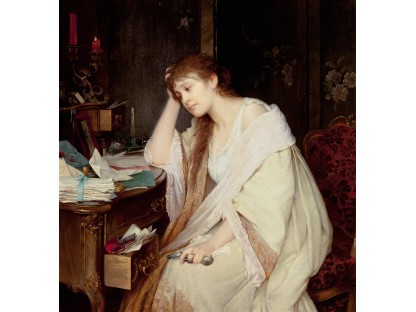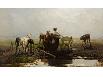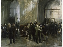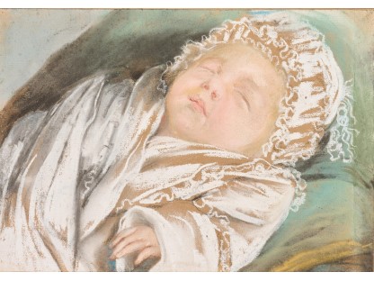 此画描绘了一个阳光明媚的清晨,母亲和孩子散步场景,充分表现了人物的惬意心情以及其中的微风、蓝天的那种恬静美好。