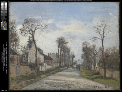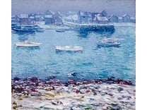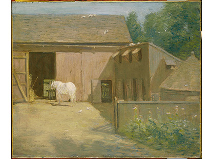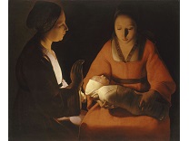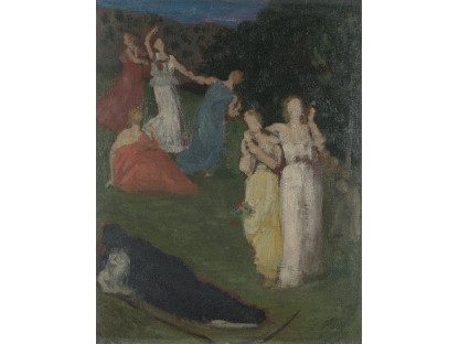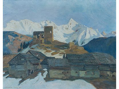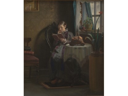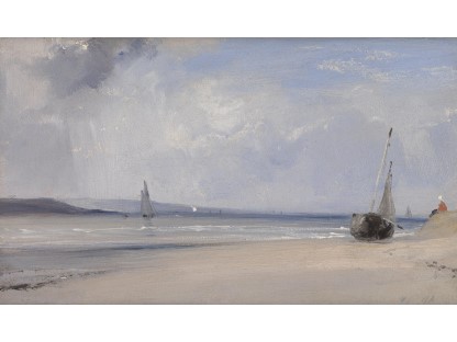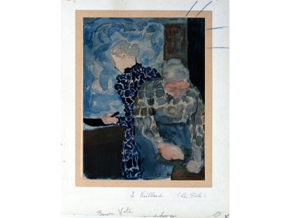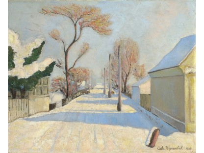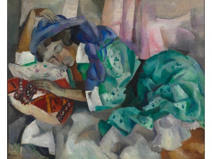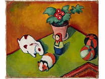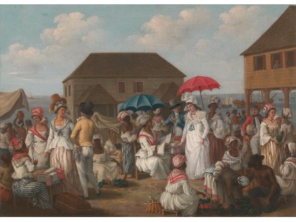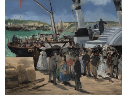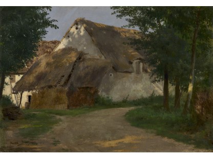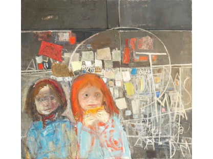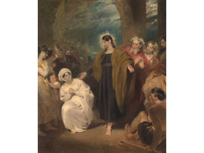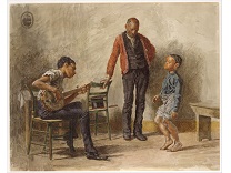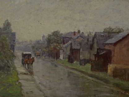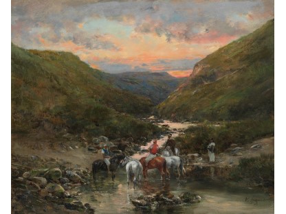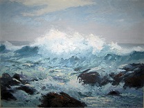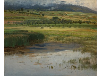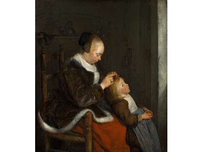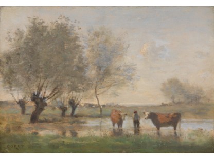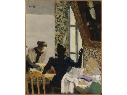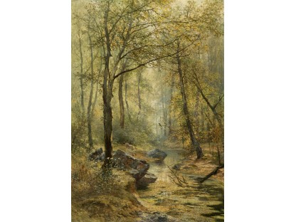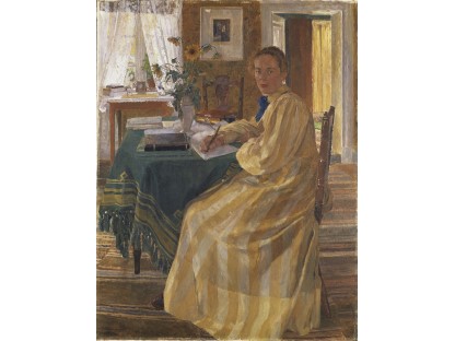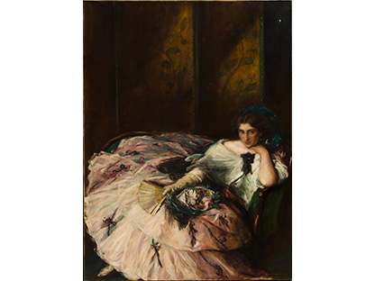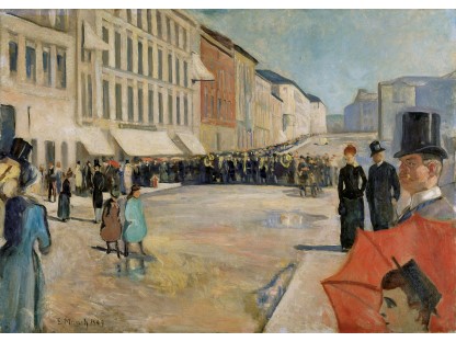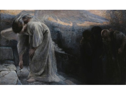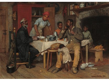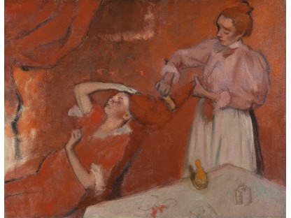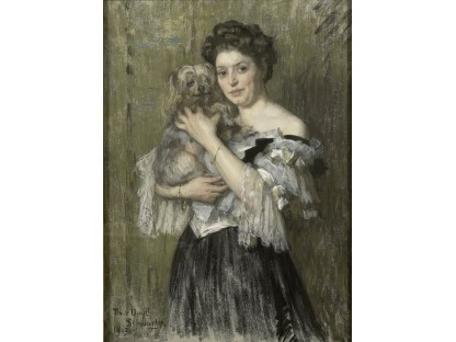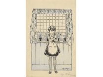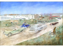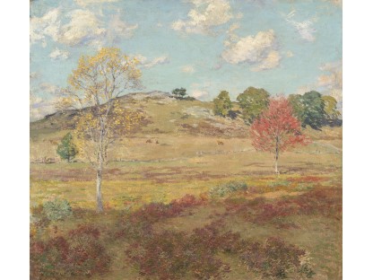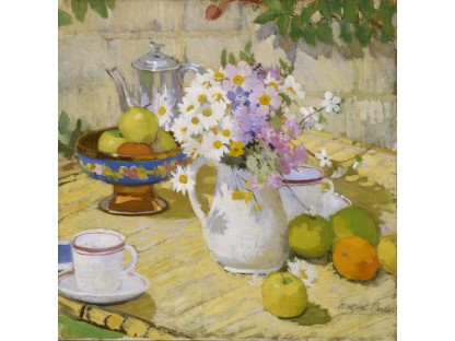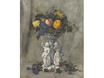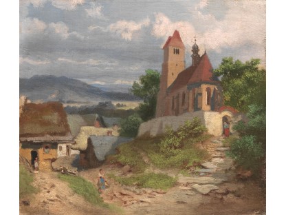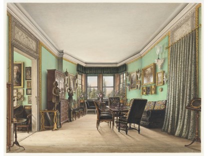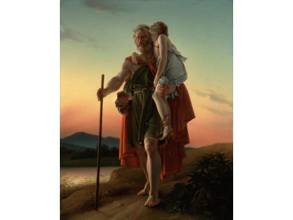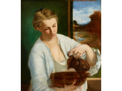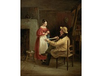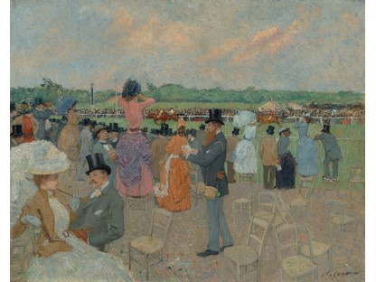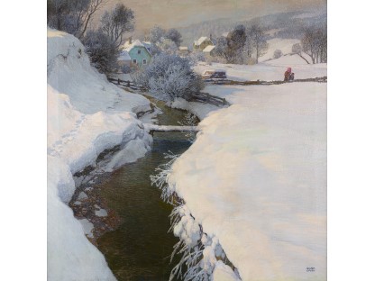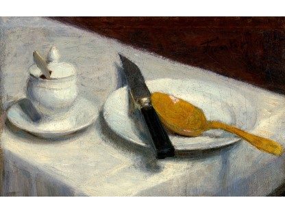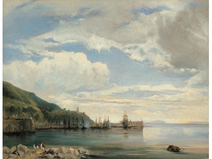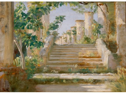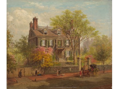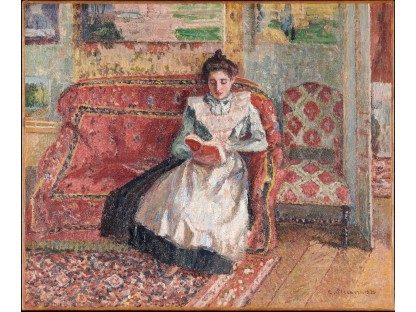 此画描绘了一个阳光明媚的清晨,母亲和孩子散步场景,充分表现了人物的惬意心情以及其中的微风、蓝天的那种恬静美好。