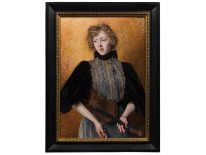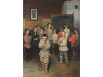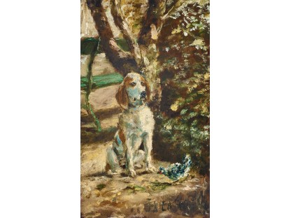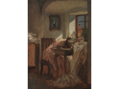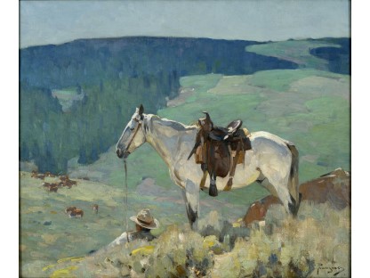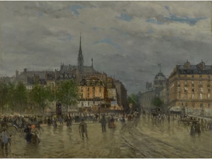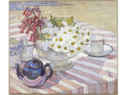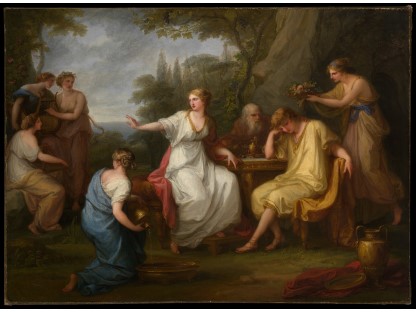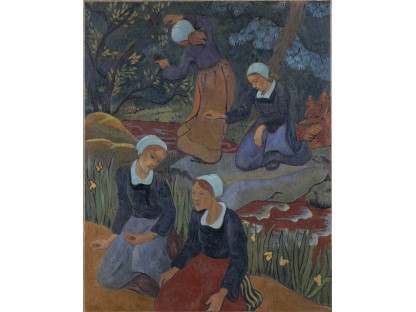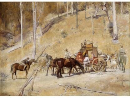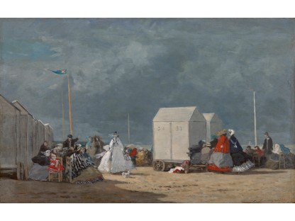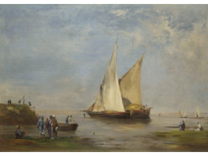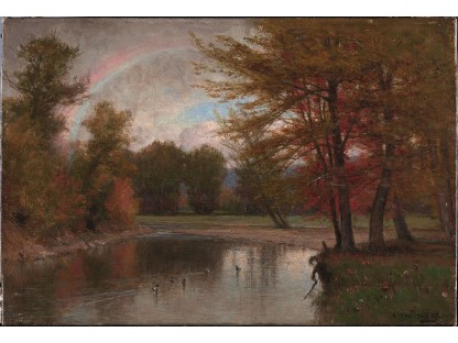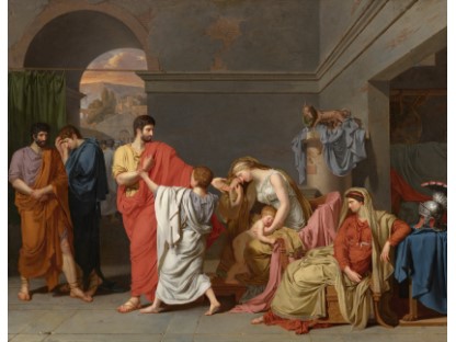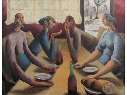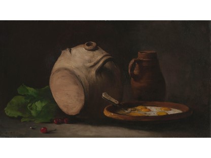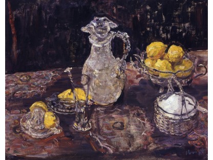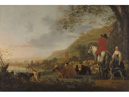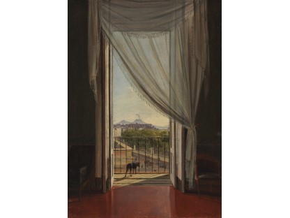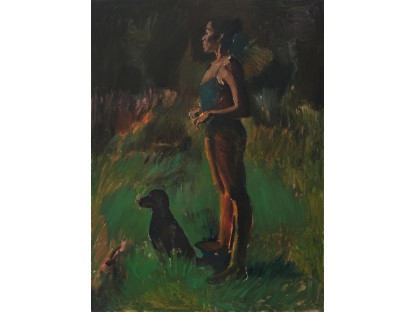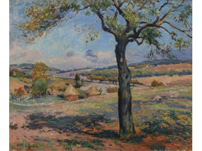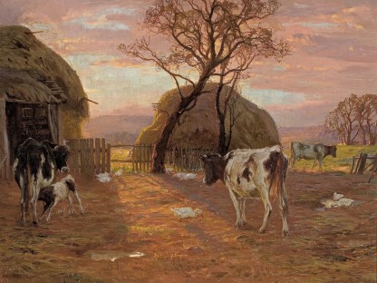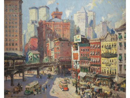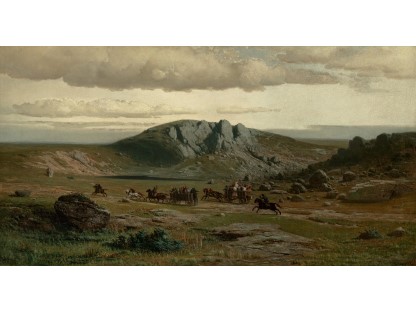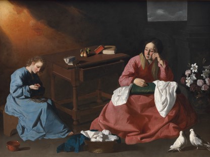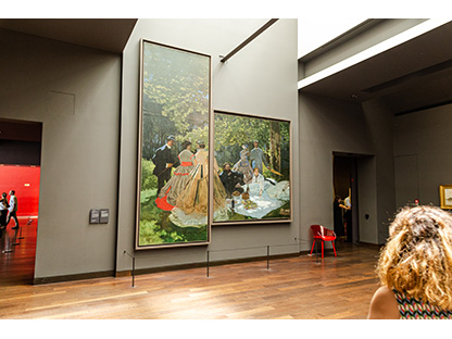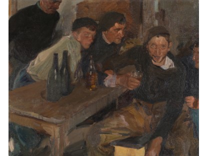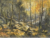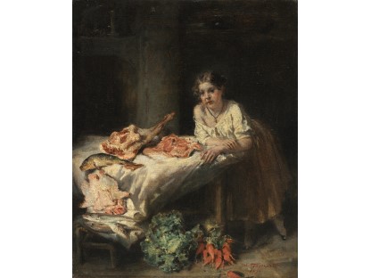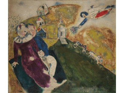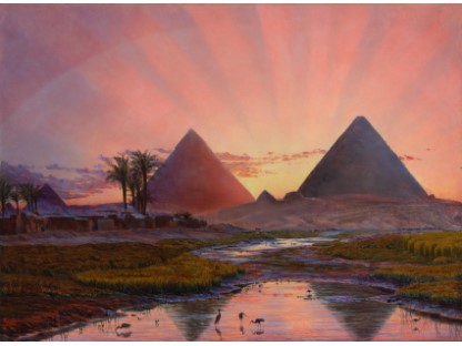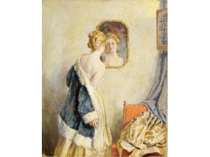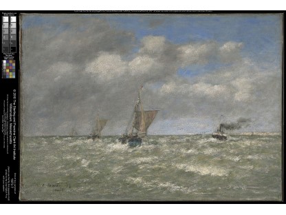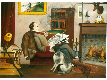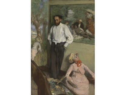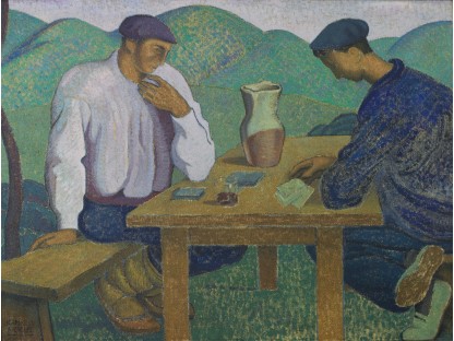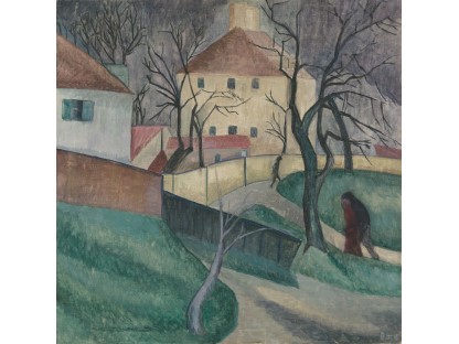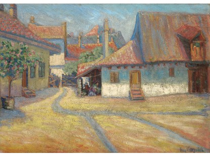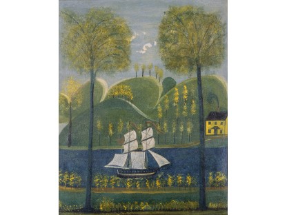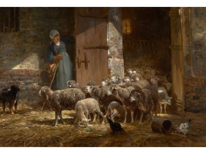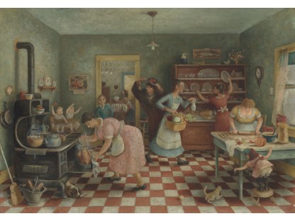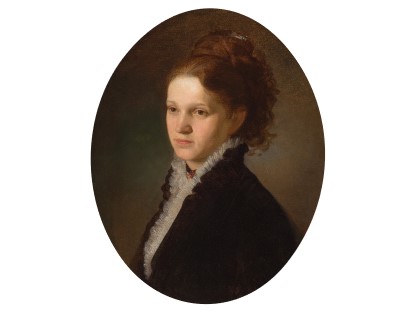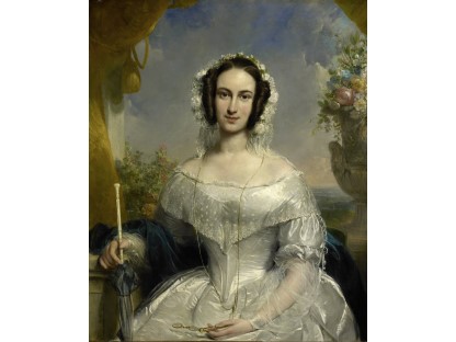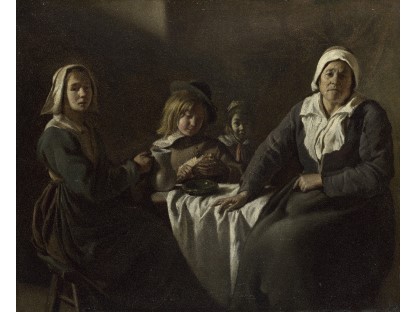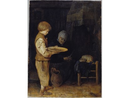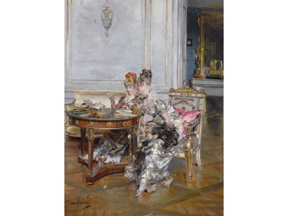此画描绘了一个阳光明媚的清晨,母亲和孩子散步场景,充分表现了人物的惬意心情以及其中的微风、蓝天的那种恬静美好。