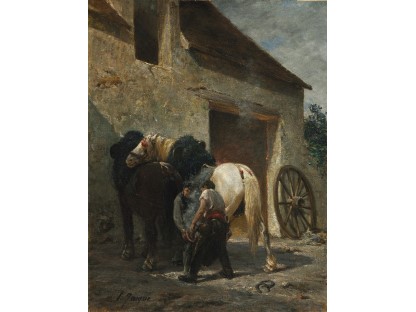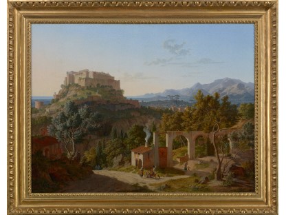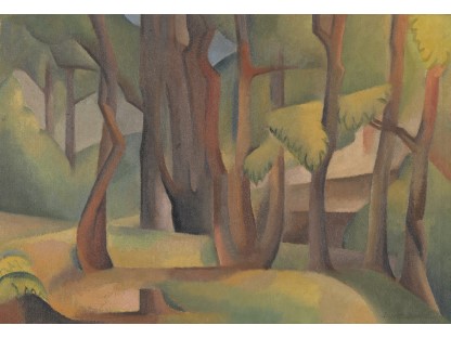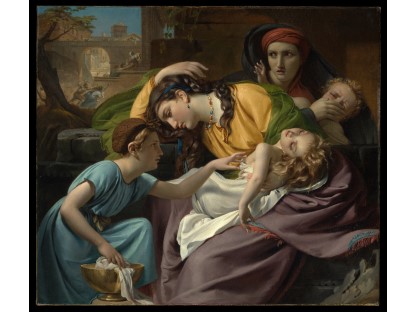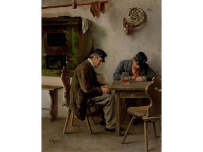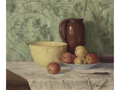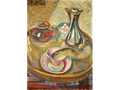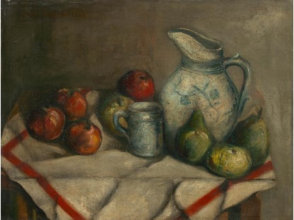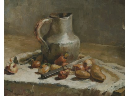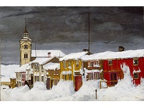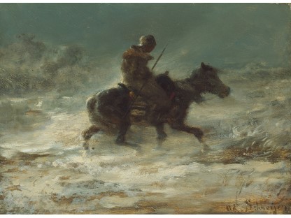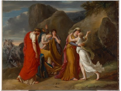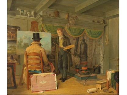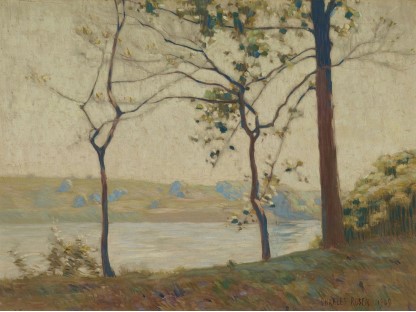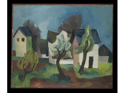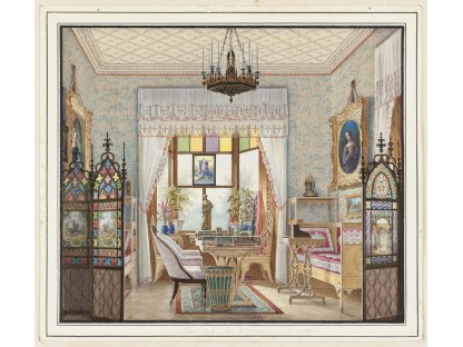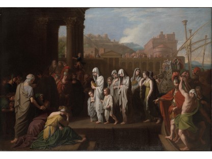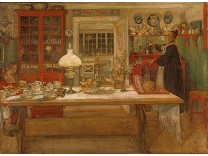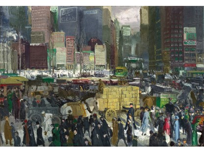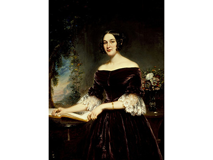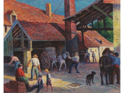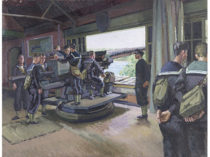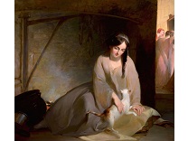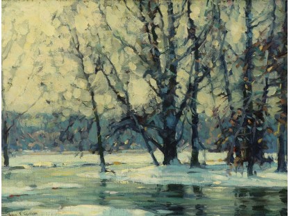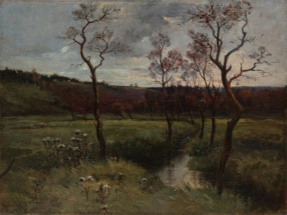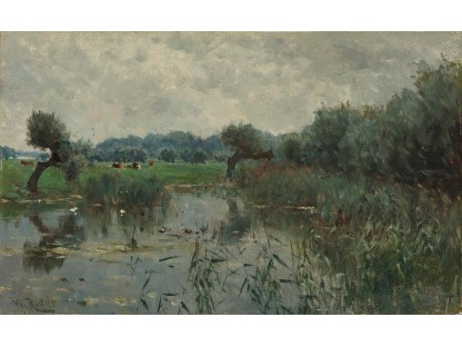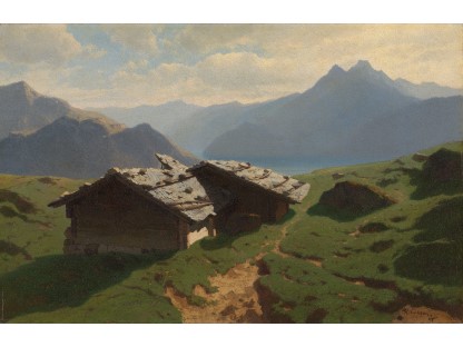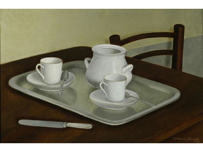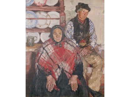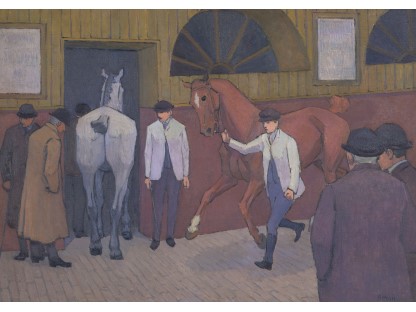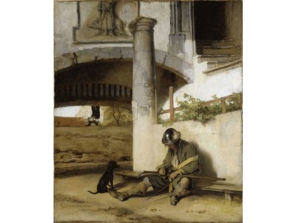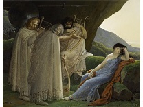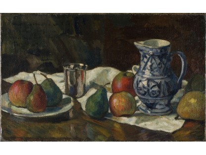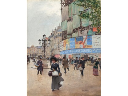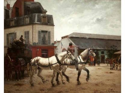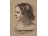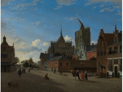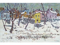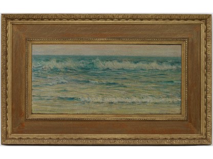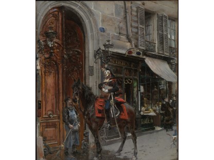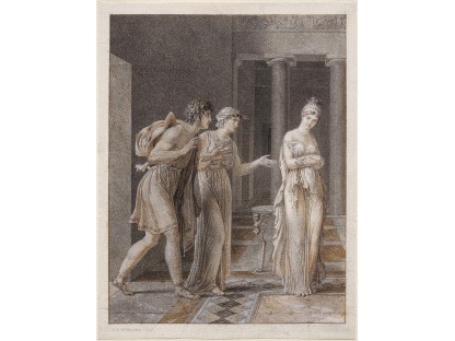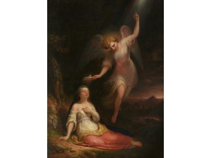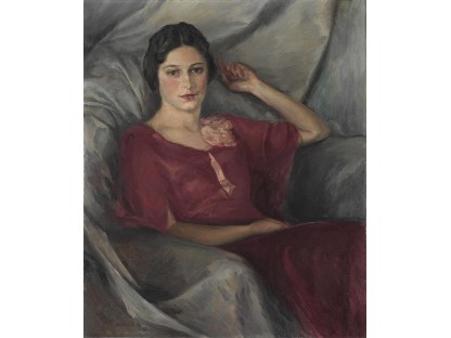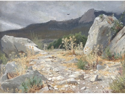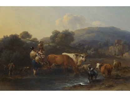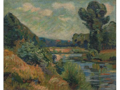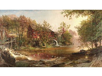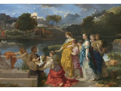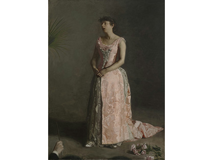此画描绘了一个阳光明媚的清晨,母亲和孩子散步场景,充分表现了人物的惬意心情以及其中的微风、蓝天的那种恬静美好。