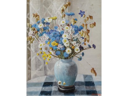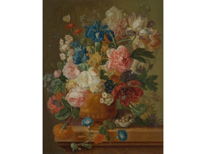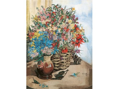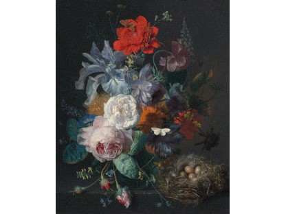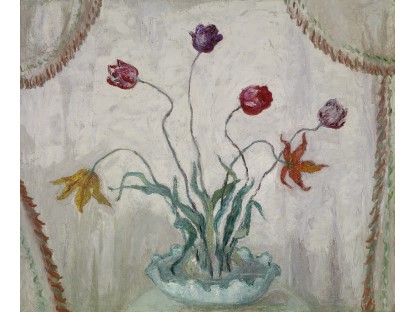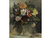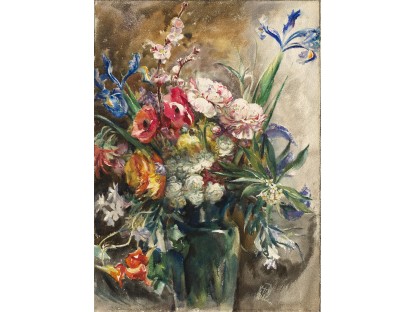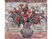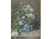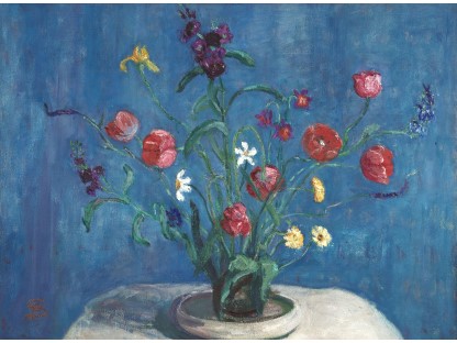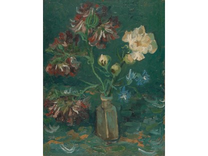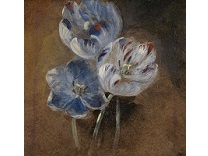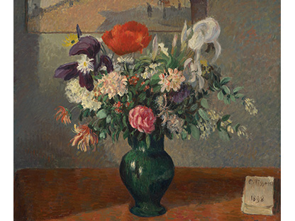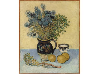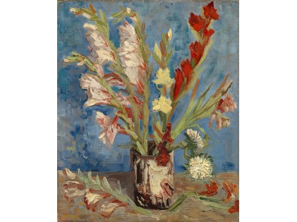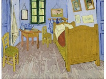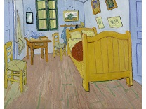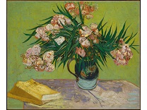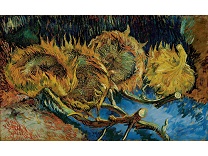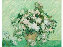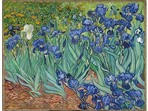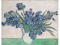 花瓶裡的鳶尾花前後不齊地滿滿插在一起,同時又向四方怒放,似乎是梵谷依戀南方的最後表現。