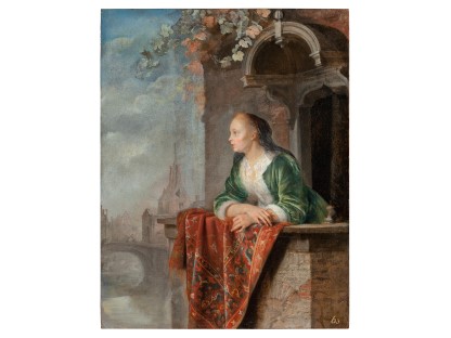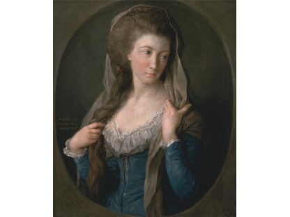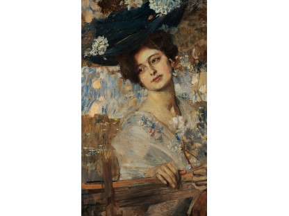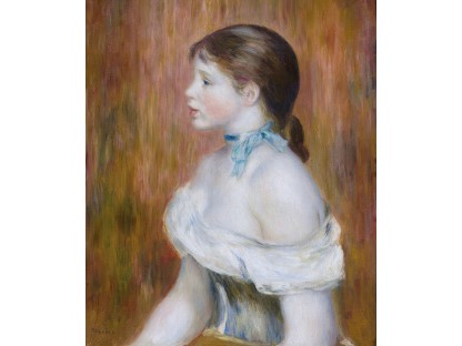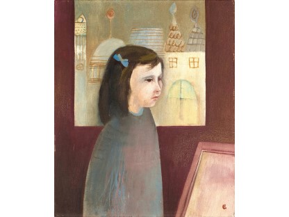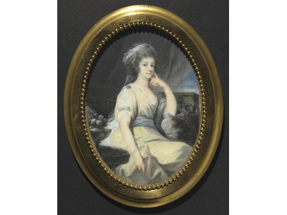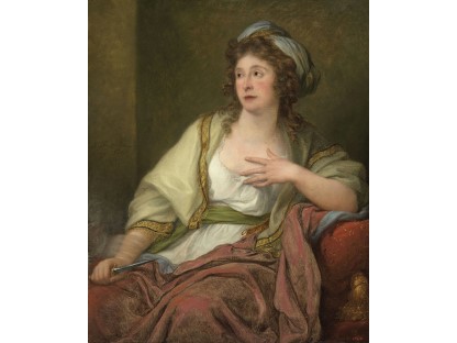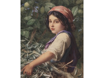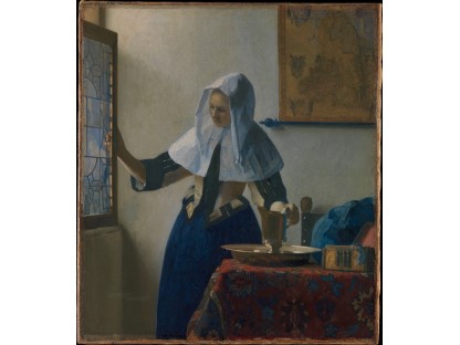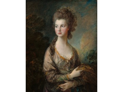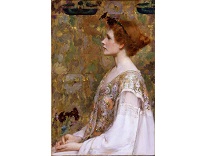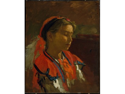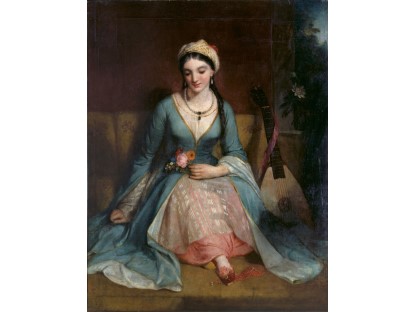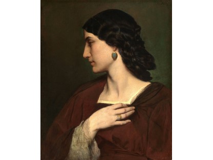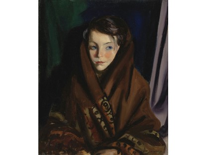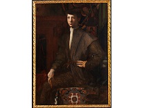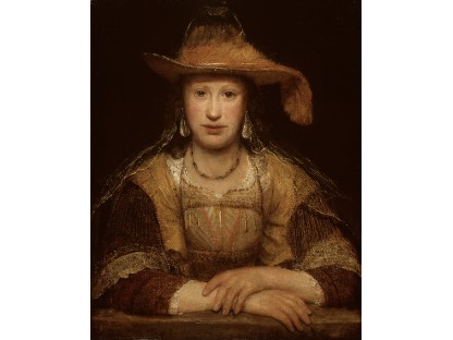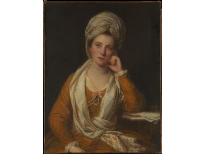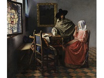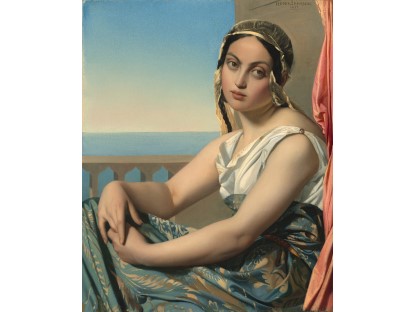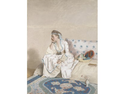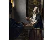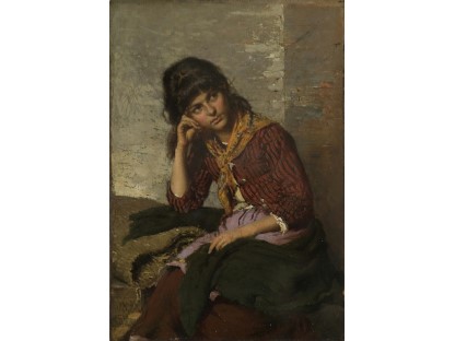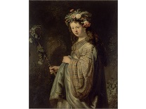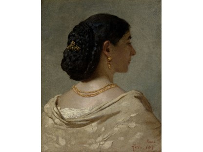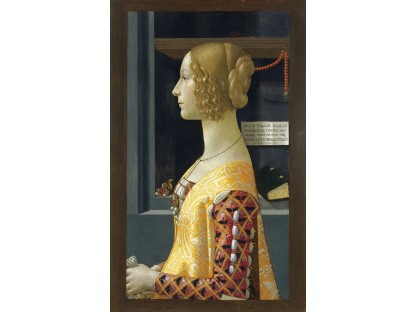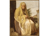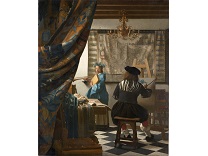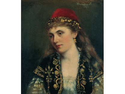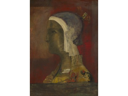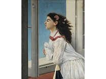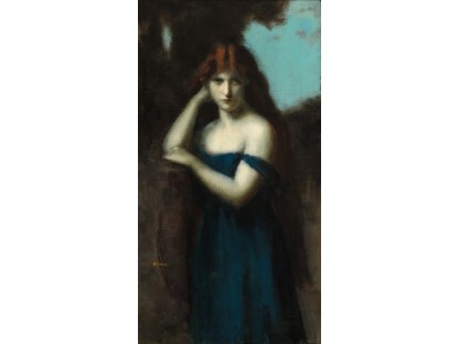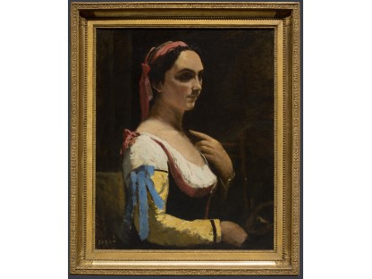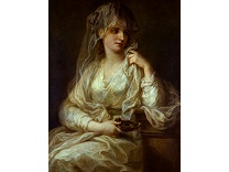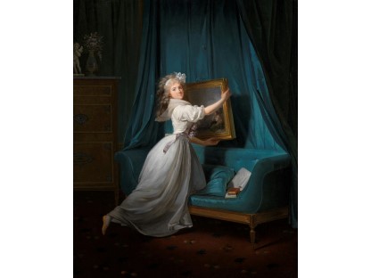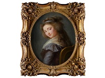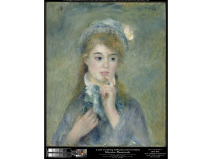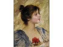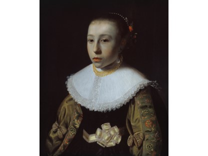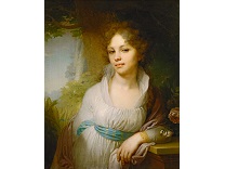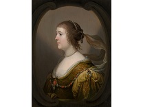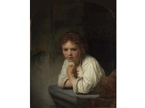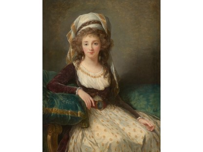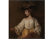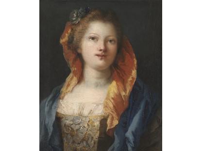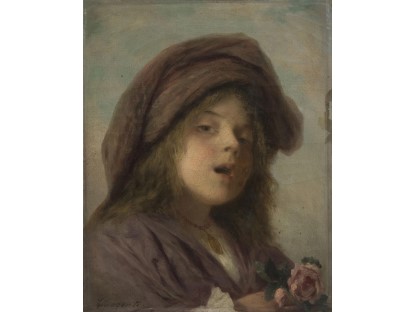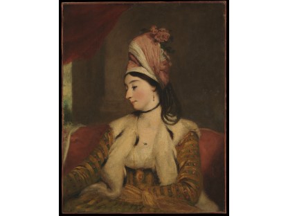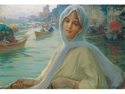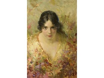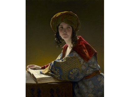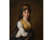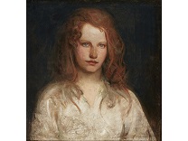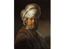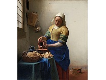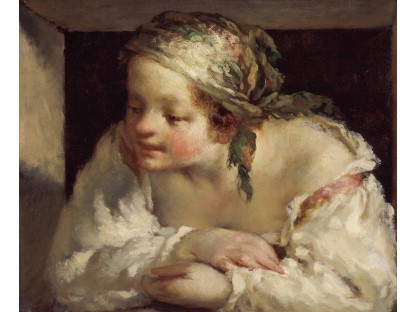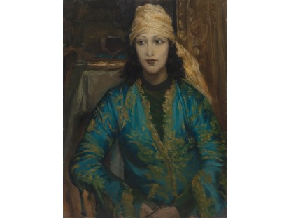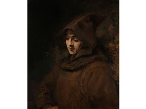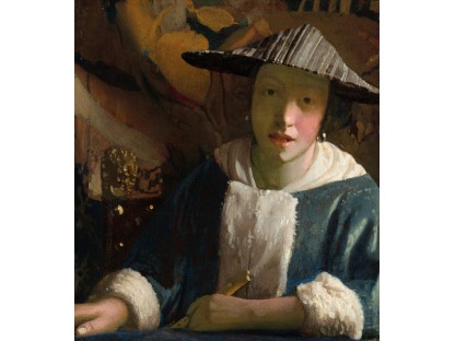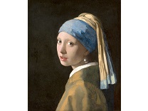 该画描绘了一名身穿棕色衣服,佩戴黄、蓝色头巾的少女,气质超凡出众,宁静中淡恬从容、欲言又止的神态栩栩如生,看似带有一种既含蓄又惆怅的、似有似无的伤感表情,惊鸿一瞥的回眸…
