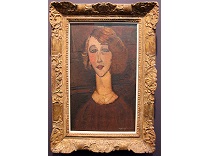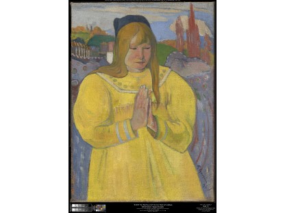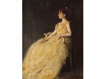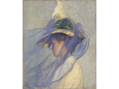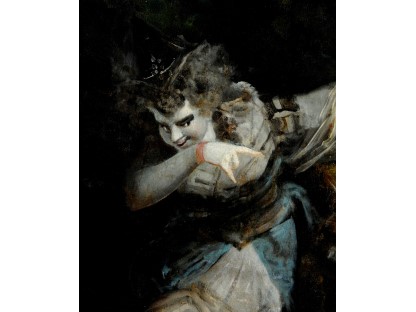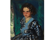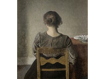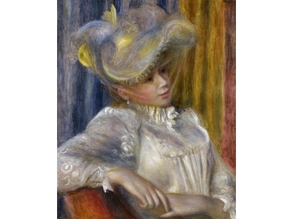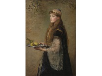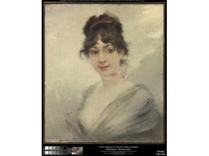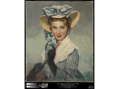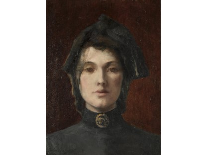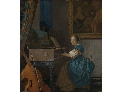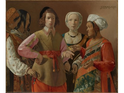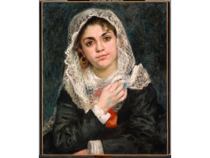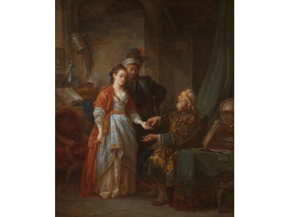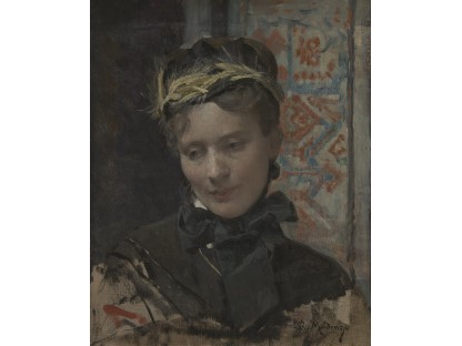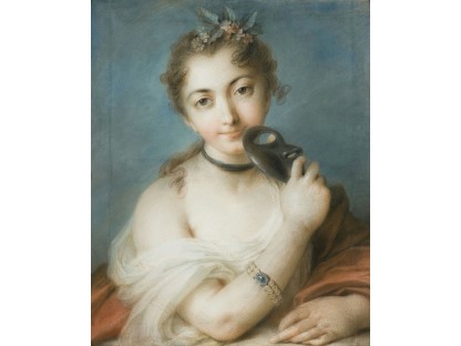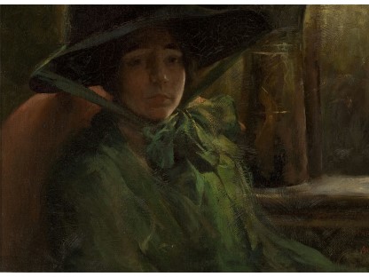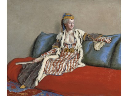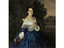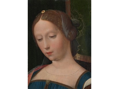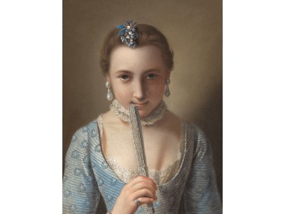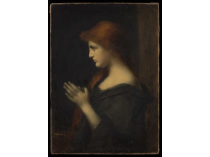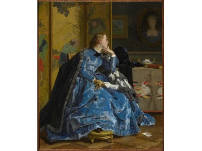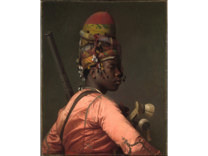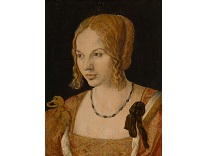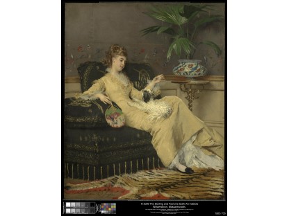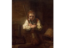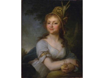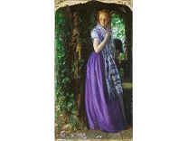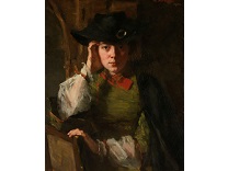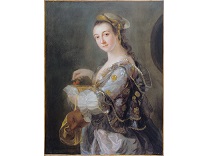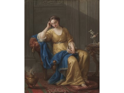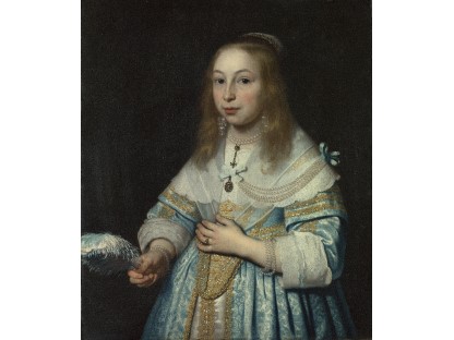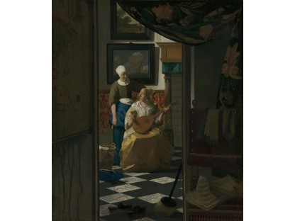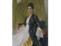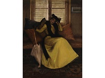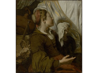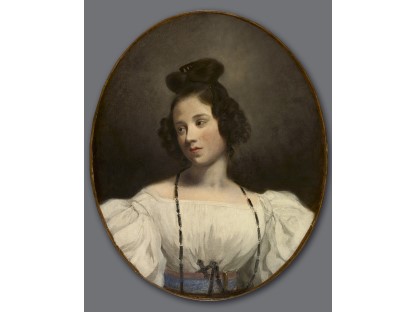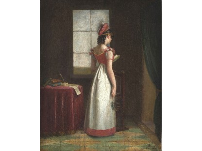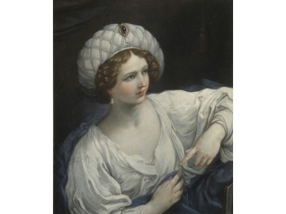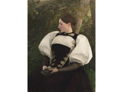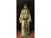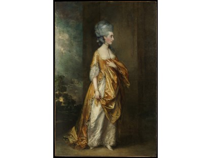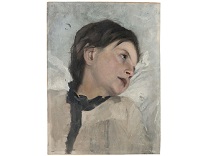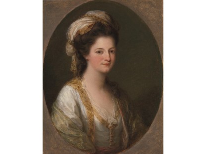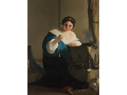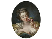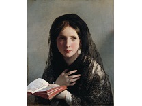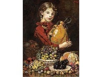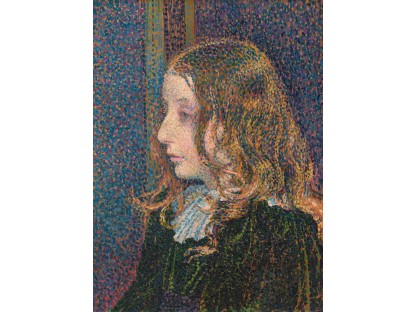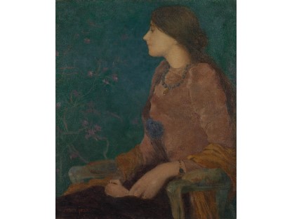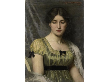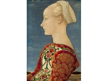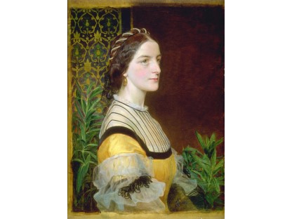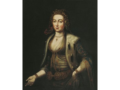 该画描绘了一名身穿棕色衣服,佩戴黄、蓝色头巾的少女,气质超凡出众,宁静中淡恬从容、欲言又止的神态栩栩如生,看似带有一种既含蓄又惆怅的、似有似无的伤感表情,惊鸿一瞥的回眸…