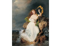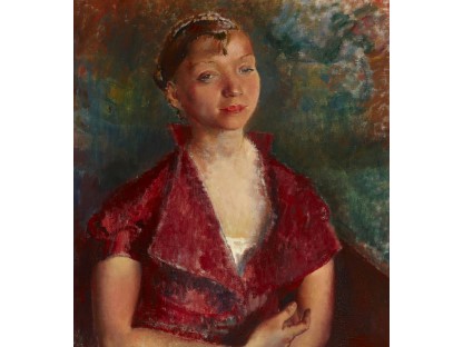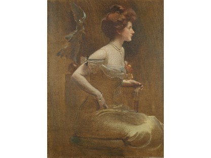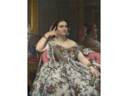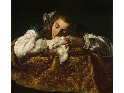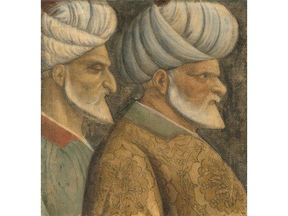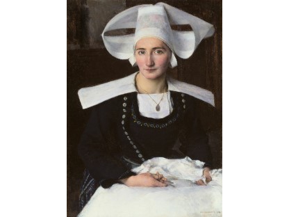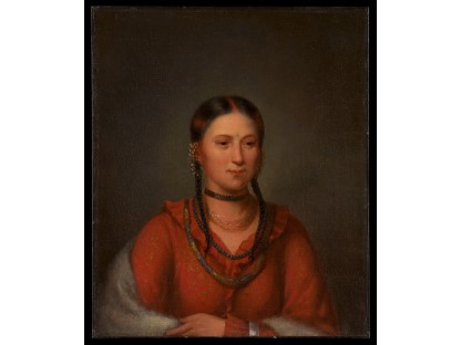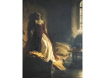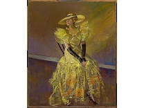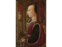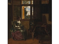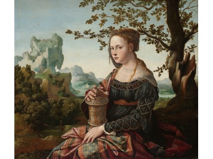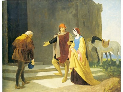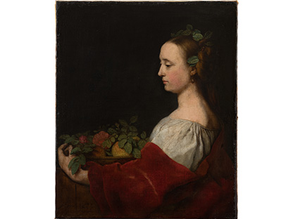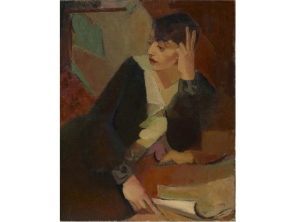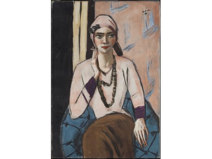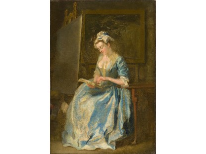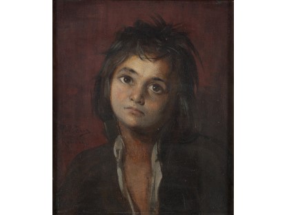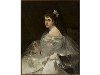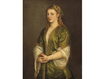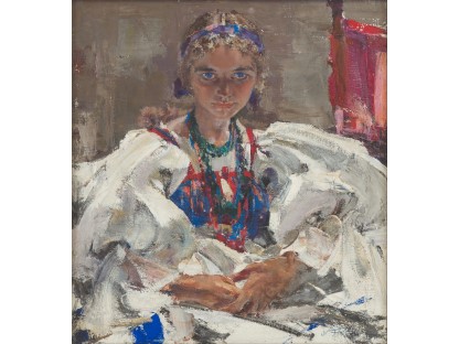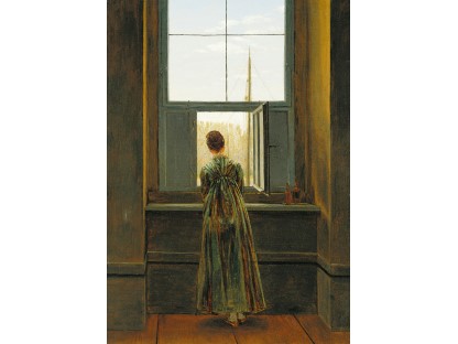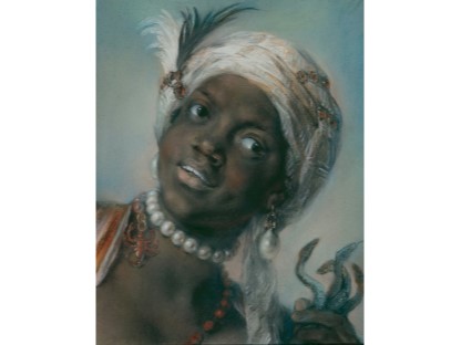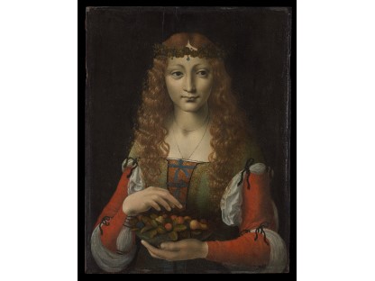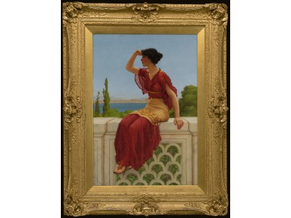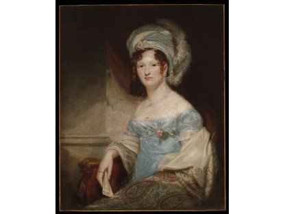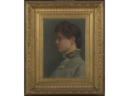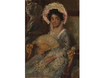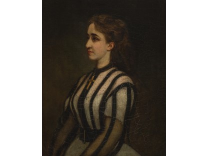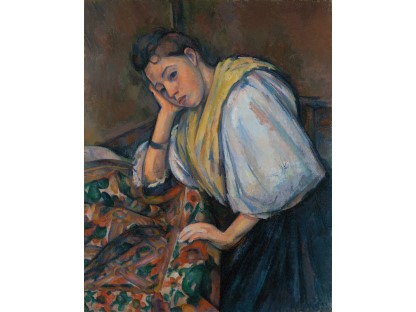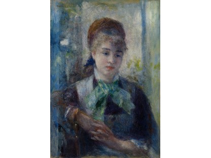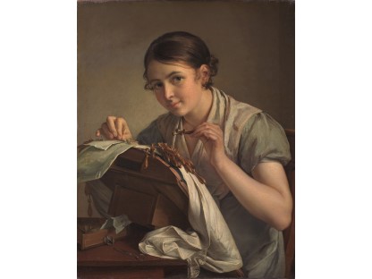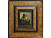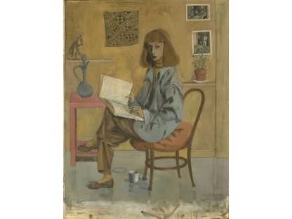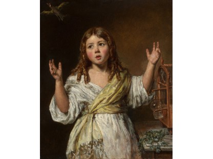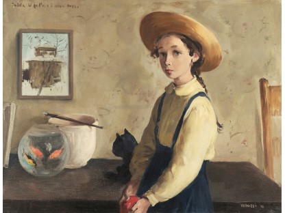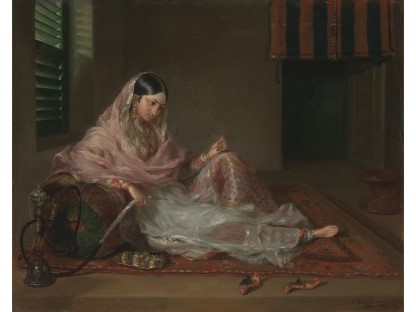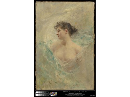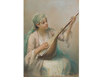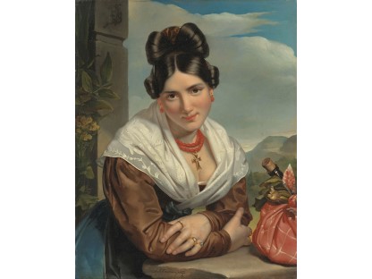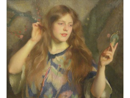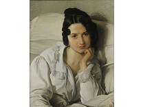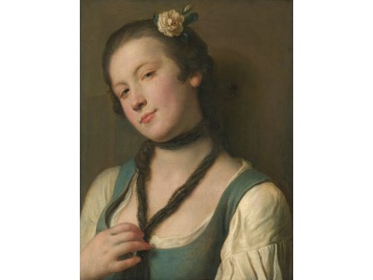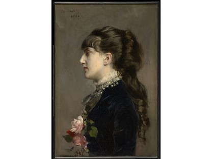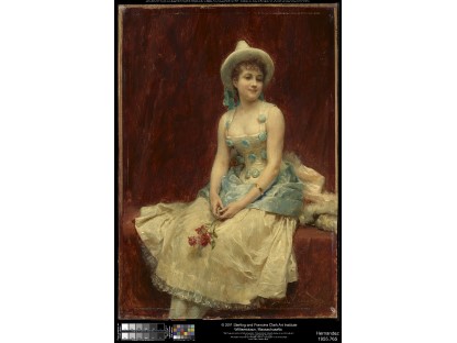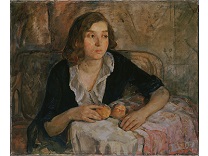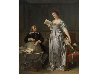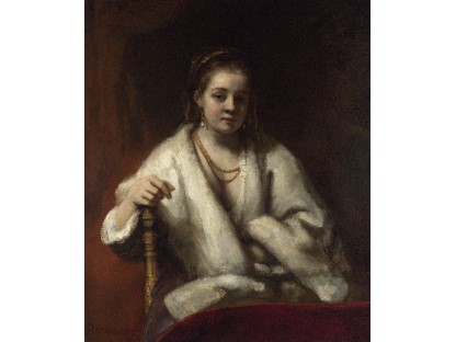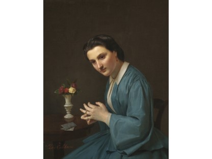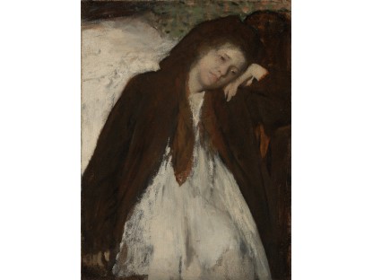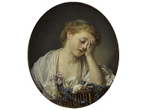 该画描绘了一名身穿棕色衣服,佩戴黄、蓝色头巾的少女,气质超凡出众,宁静中淡恬从容、欲言又止的神态栩栩如生,看似带有一种既含蓄又惆怅的、似有似无的伤感表情,惊鸿一瞥的回眸…