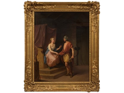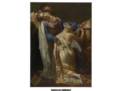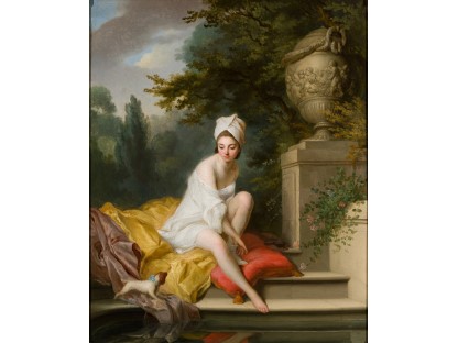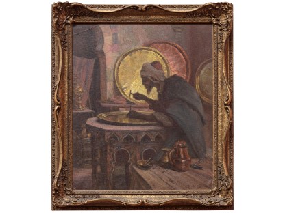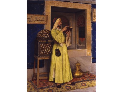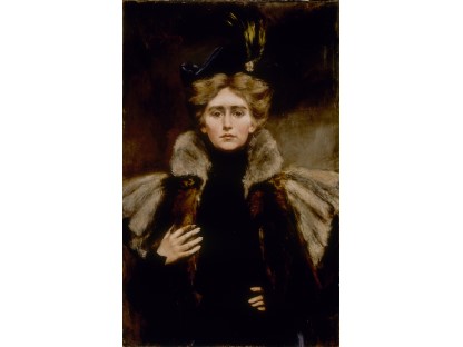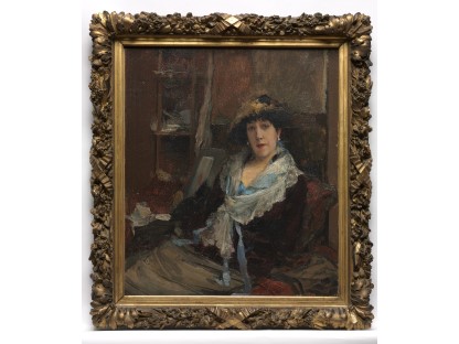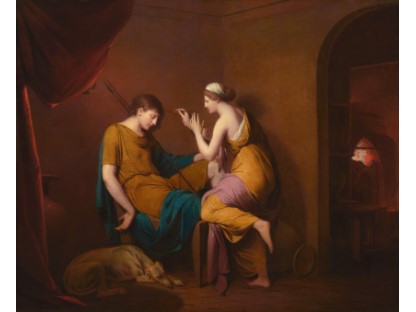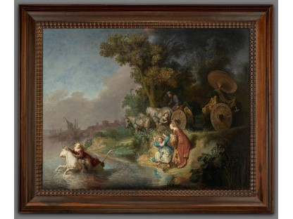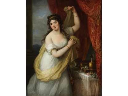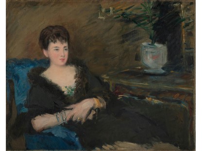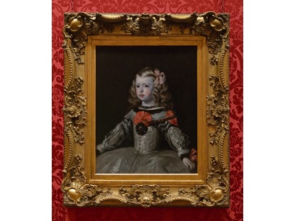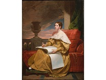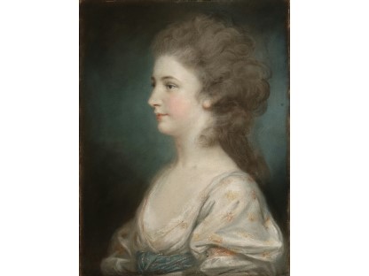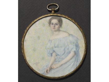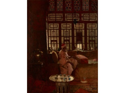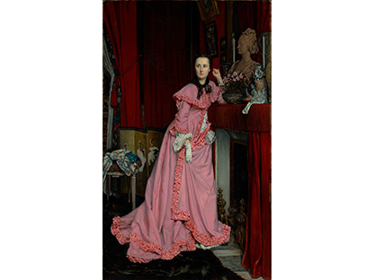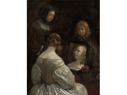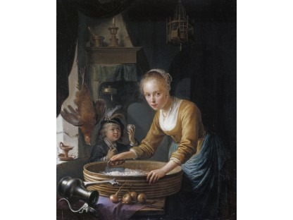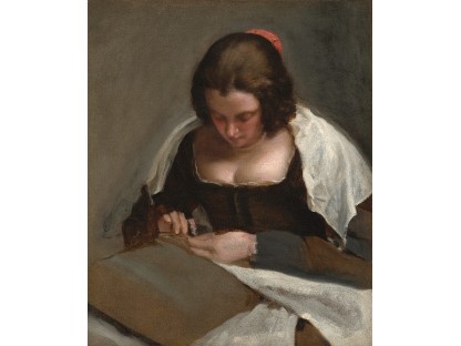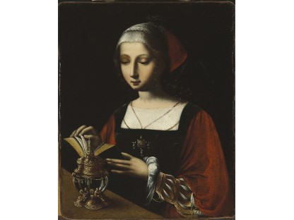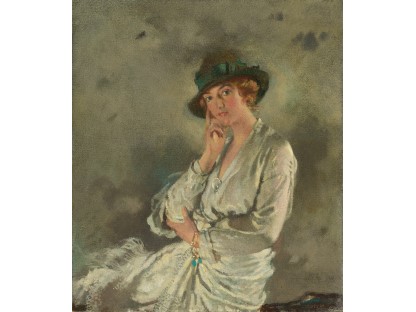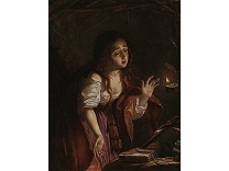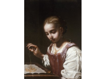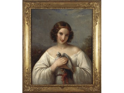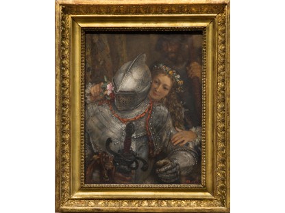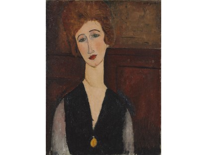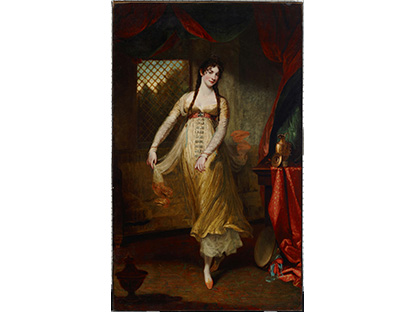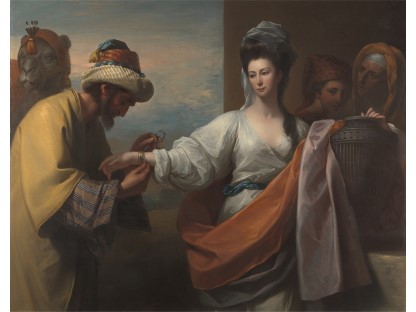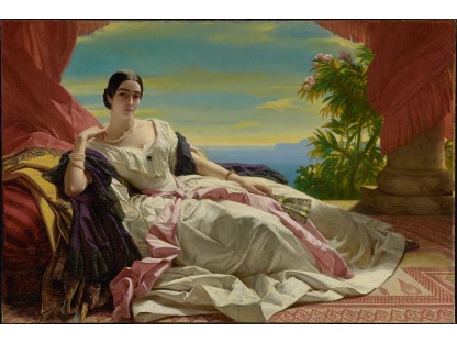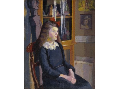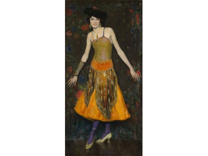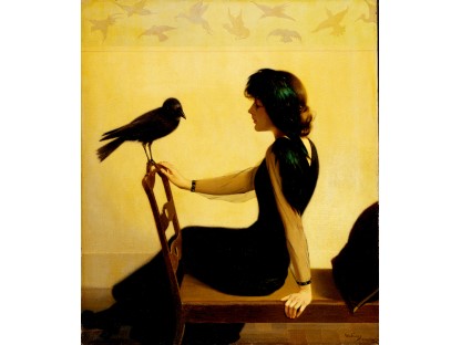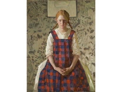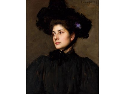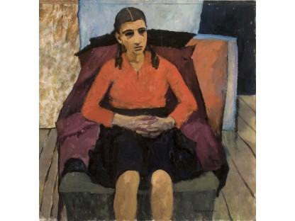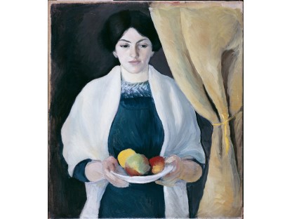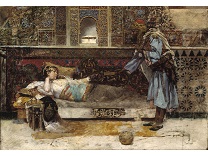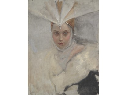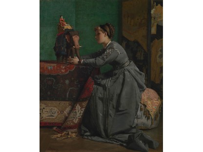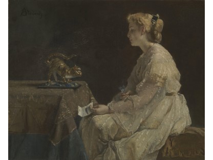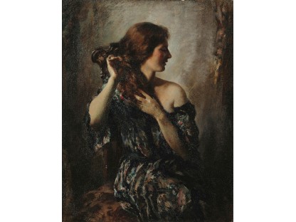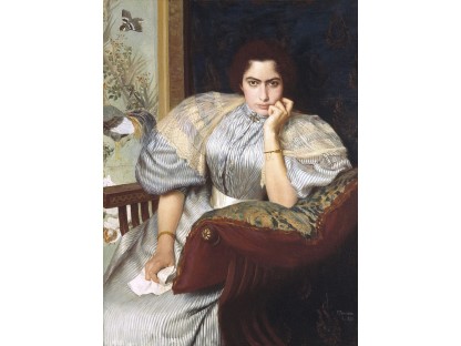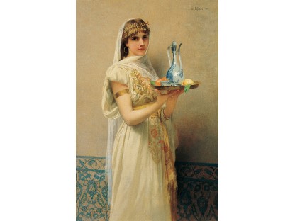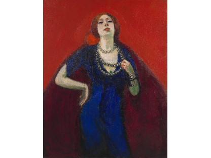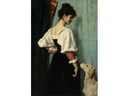 该画描绘了一名身穿棕色衣服,佩戴黄、蓝色头巾的少女,气质超凡出众,宁静中淡恬从容、欲言又止的神态栩栩如生,看似带有一种既含蓄又惆怅的、似有似无的伤感表情,惊鸿一瞥的回眸…
