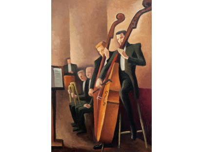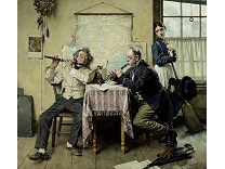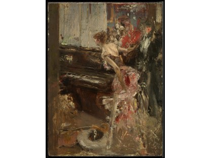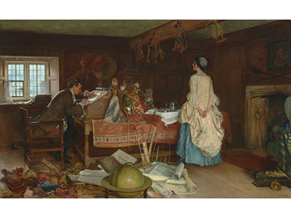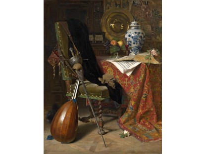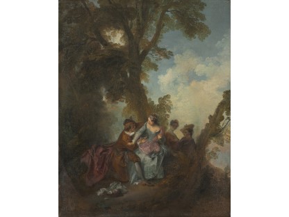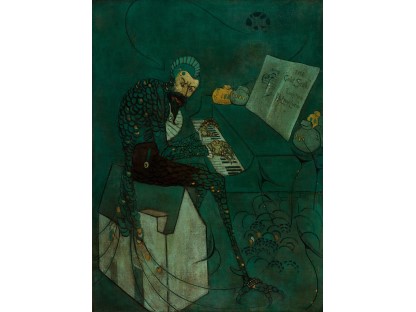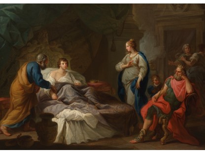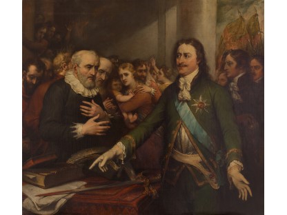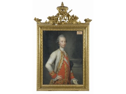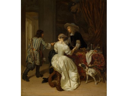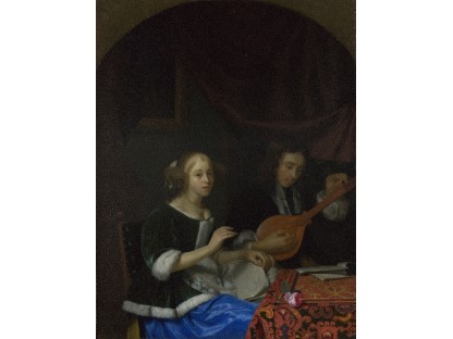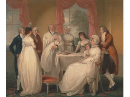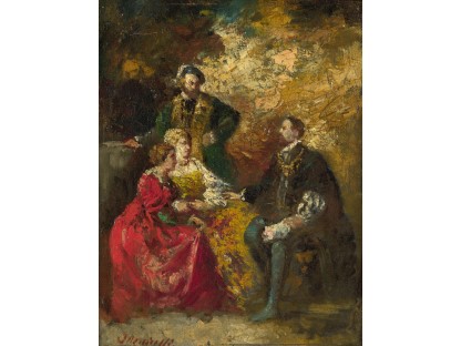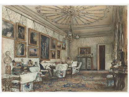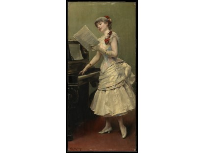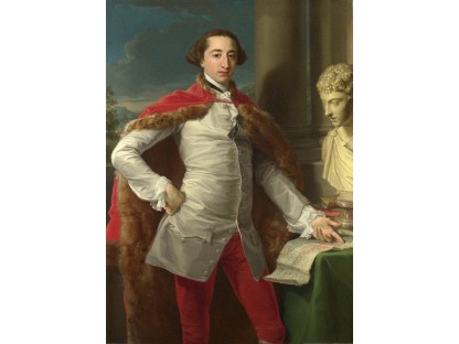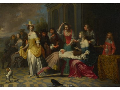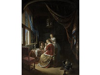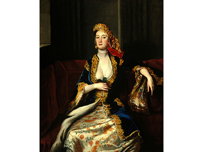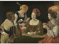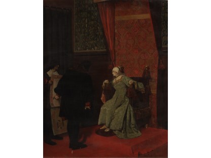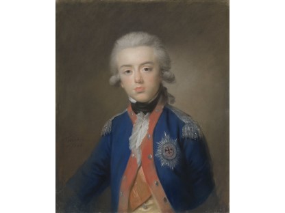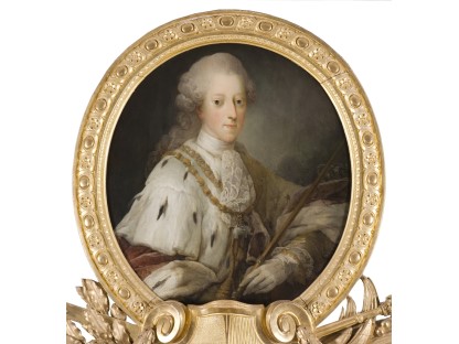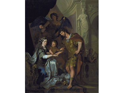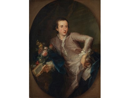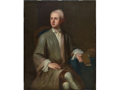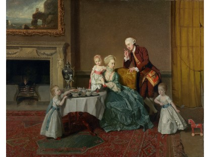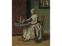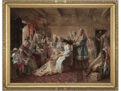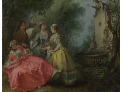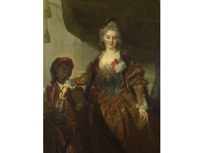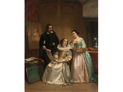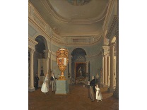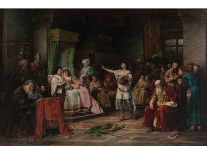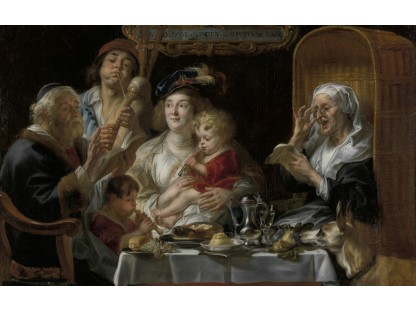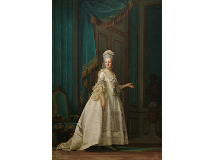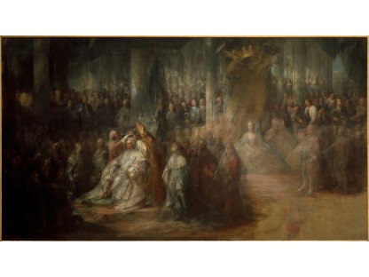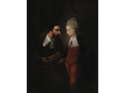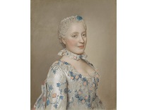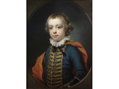在极尽奢华,灯火通明的房间中,一位衣着考究,手握横笛的男子居中而立,目光直视乐谱正在专注地吹奏着。聚集在他身前是一个带有小提琴、大提琴和羽管键琴编制的小型乐队…