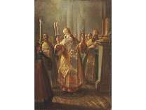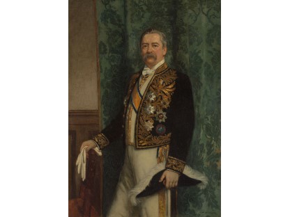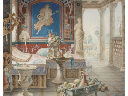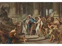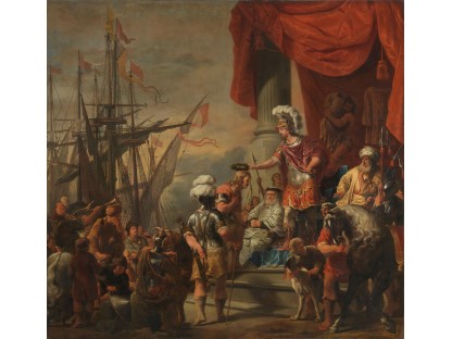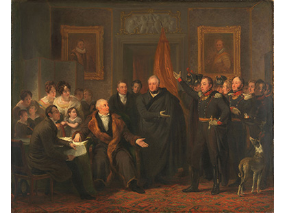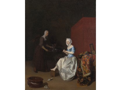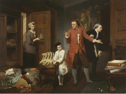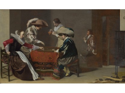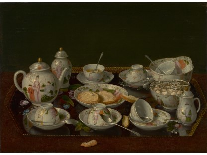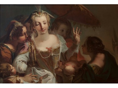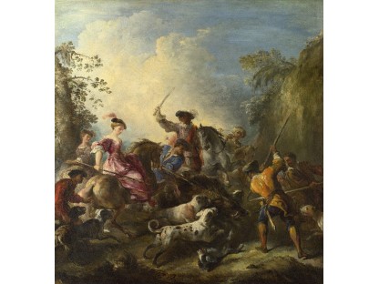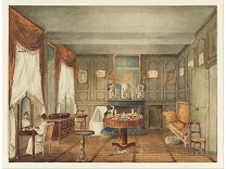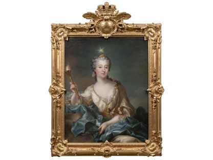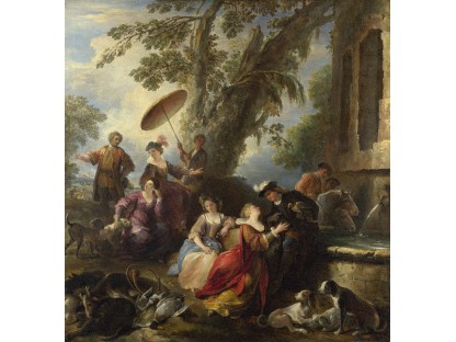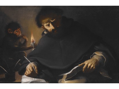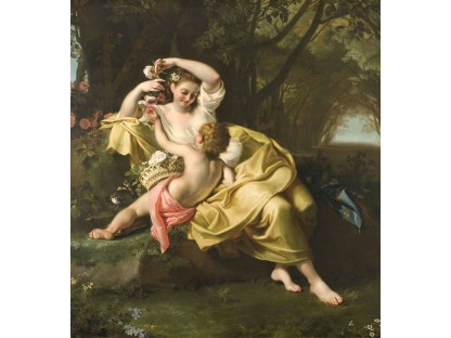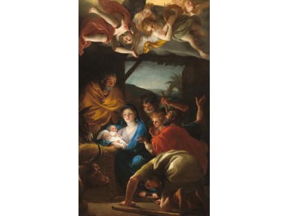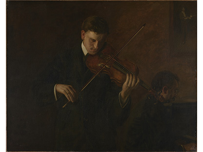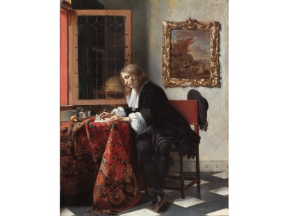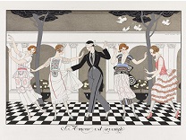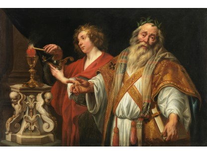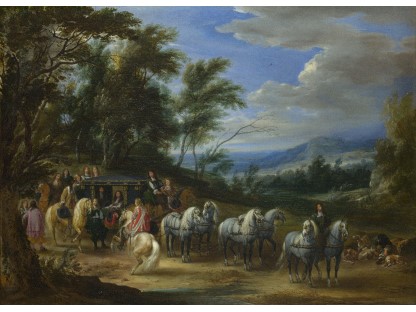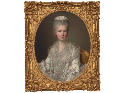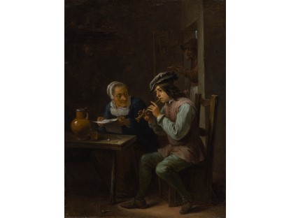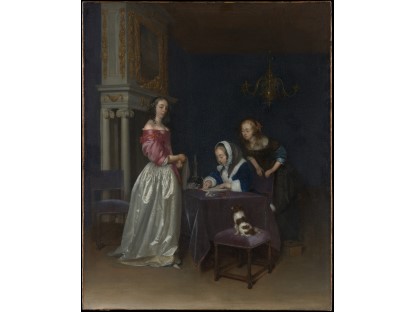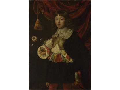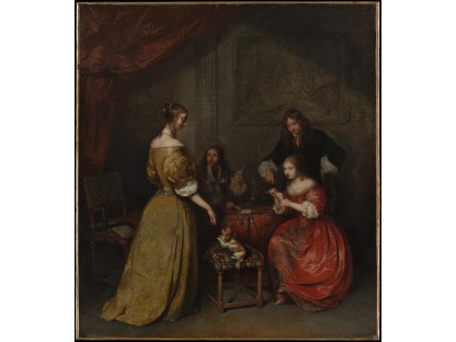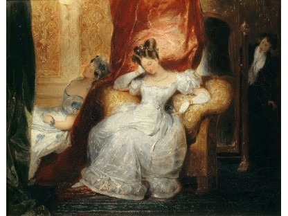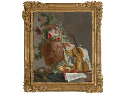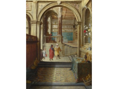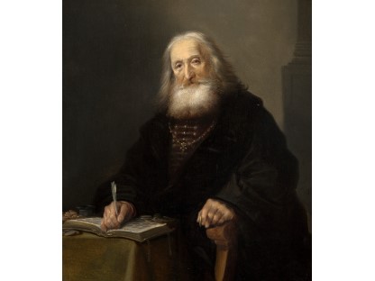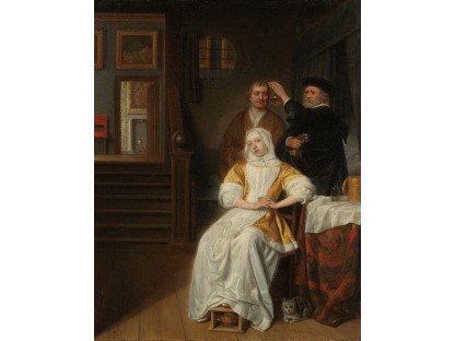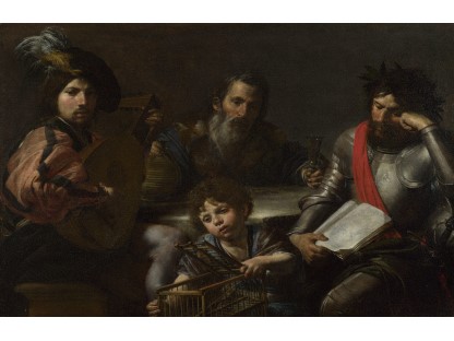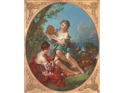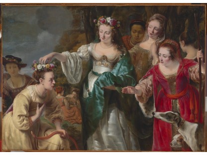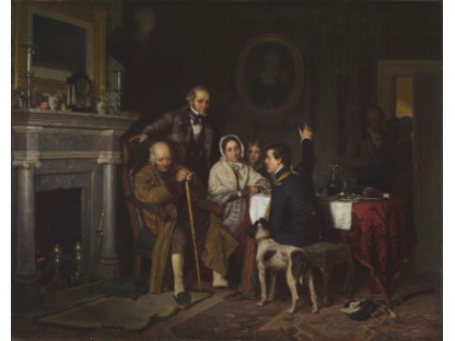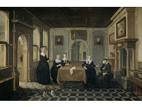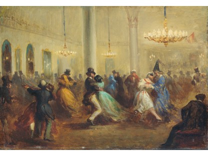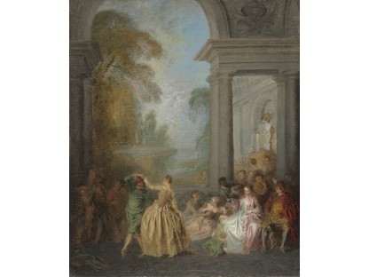 在极尽奢华,灯火通明的房间中,一位衣着考究,手握横笛的男子居中而立,目光直视乐谱正在专注地吹奏着。聚集在他身前是一个带有小提琴、大提琴和羽管键琴编制的小型乐队…