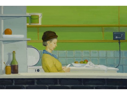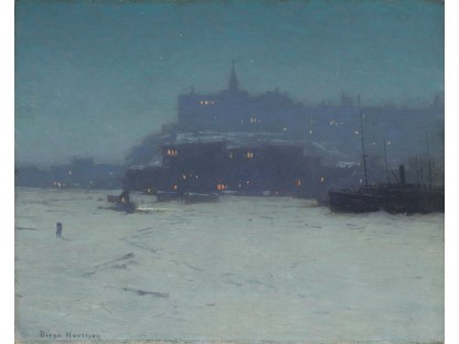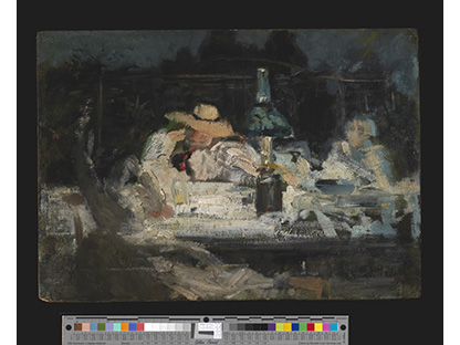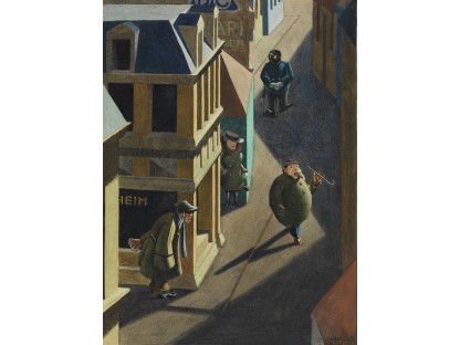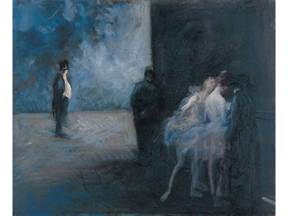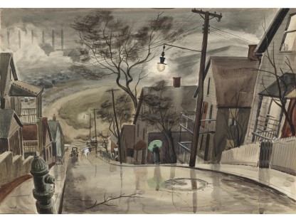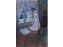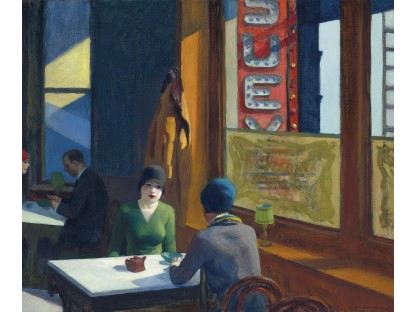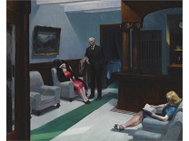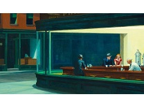 《夜游者》是霍普有如黑色电影般风格的代表作。这些作品中,他以窥视的视角,描绘在光与影之间戏剧性的互动之下情感孤立的个体。