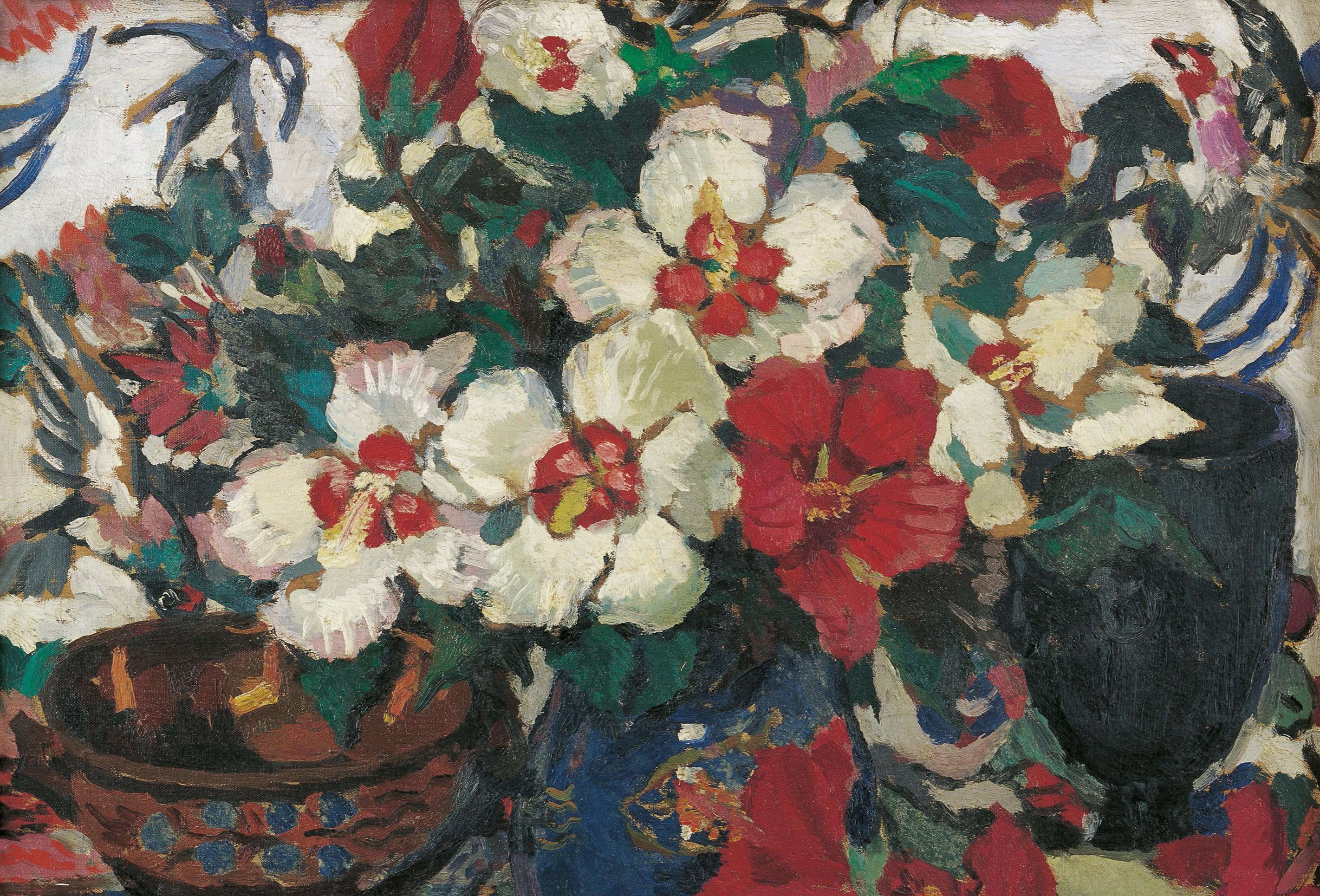白色和红色的木槿花 |