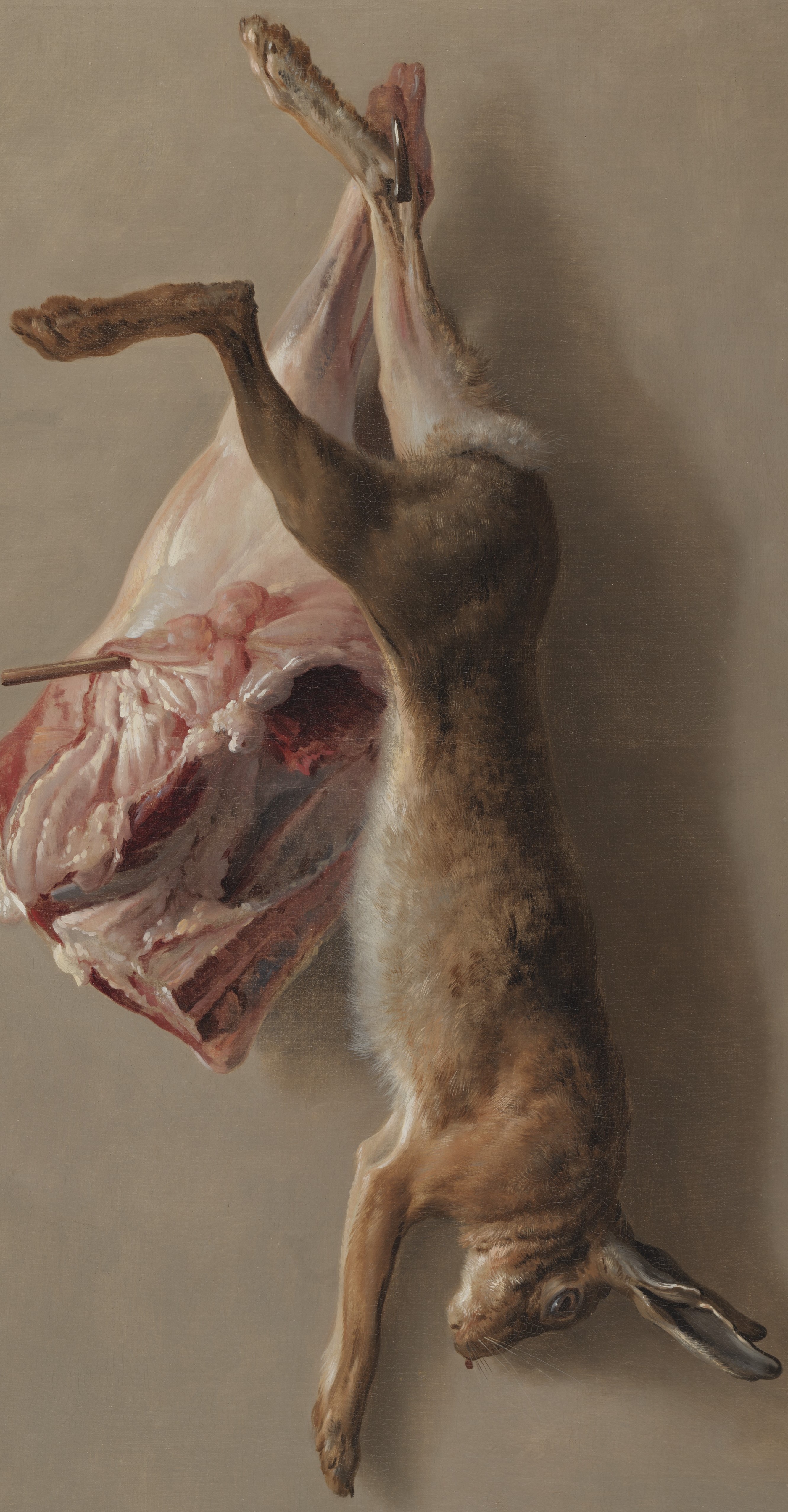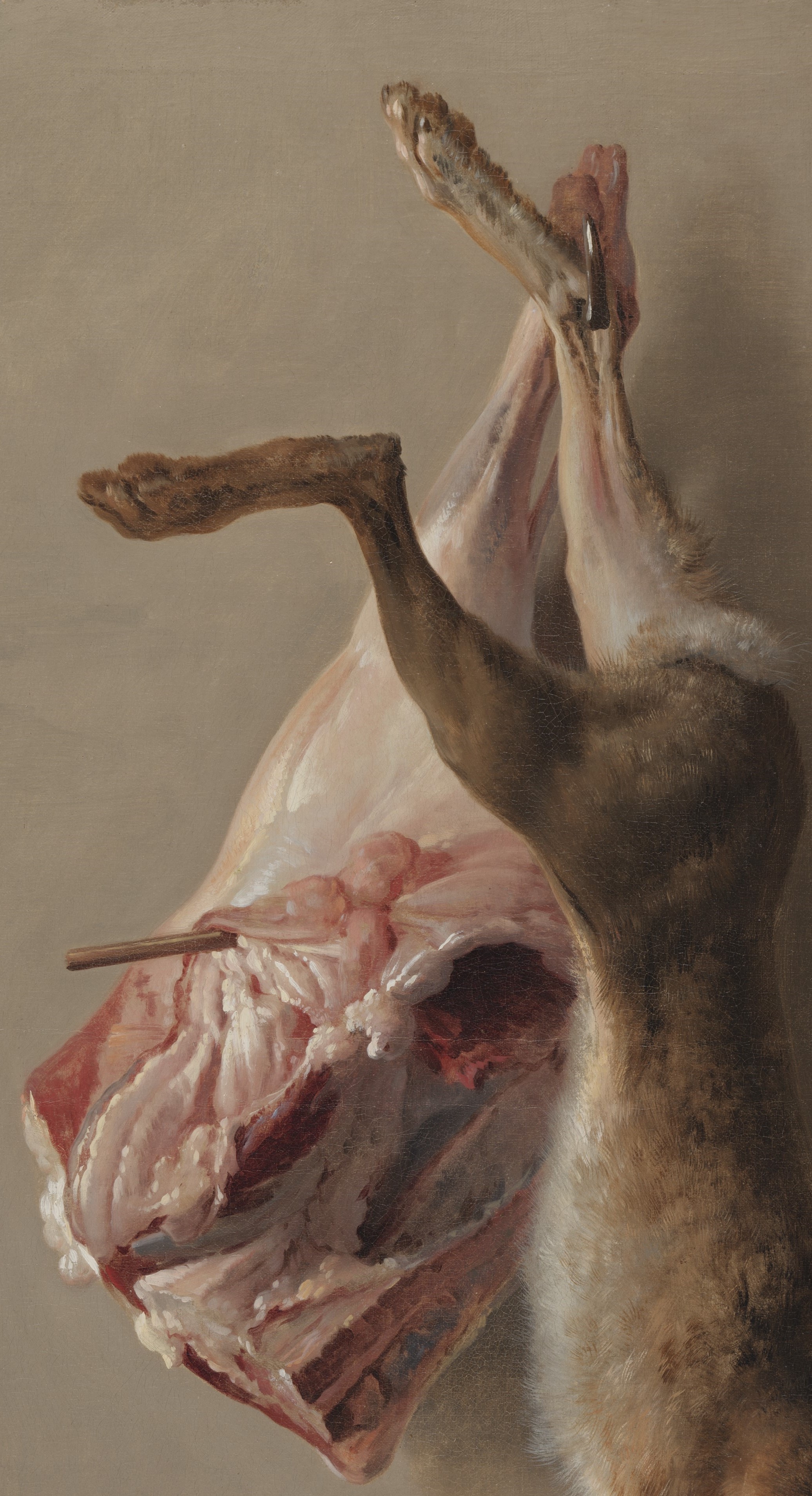 Oudry used a starkly simple composition and sterile background to emphasize his virtuosity in depicting textures, a highly desirable skill of still-life painters at this time. These artists were aiming for the highest level of accuracy—an effect of the Enlightenment, the contemporary intellectual movement that emphasized scientific reasoning in all pursuits. These paintings were generally displayed in hunting lodges or dining rooms, as a glorification of the hunt and the bounty it brings.