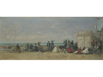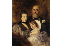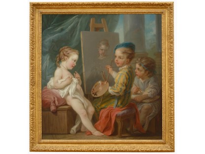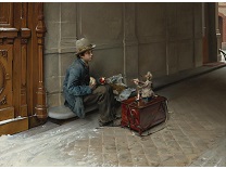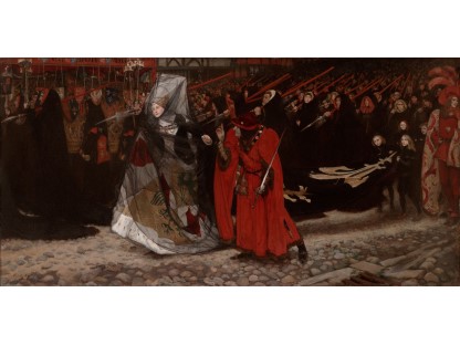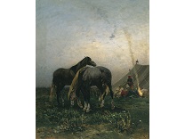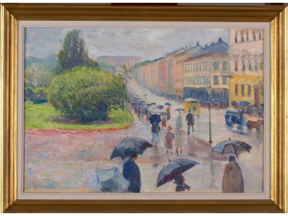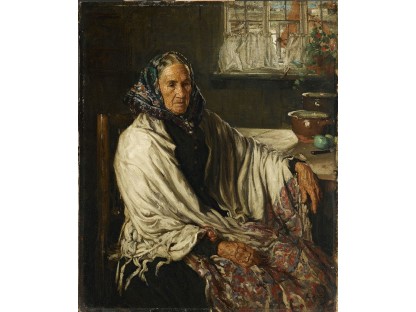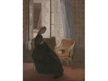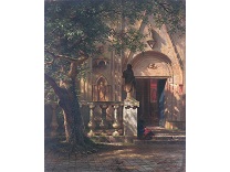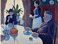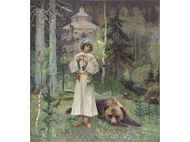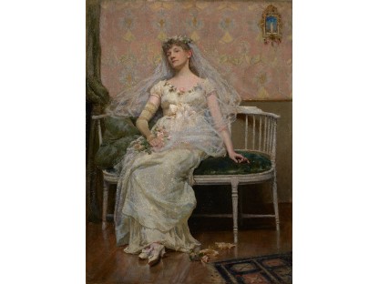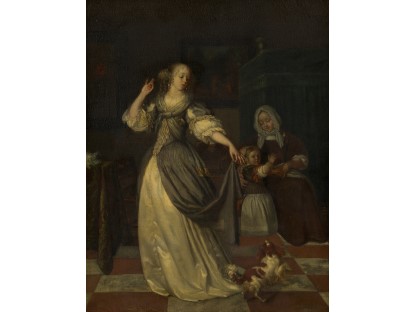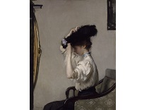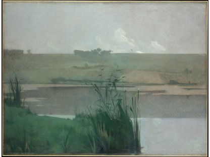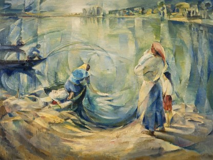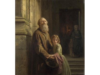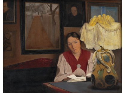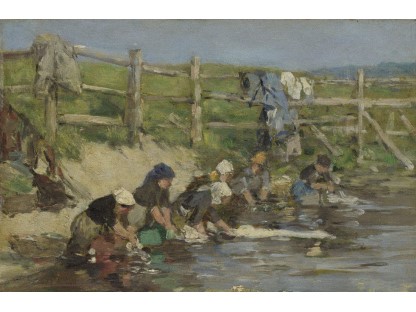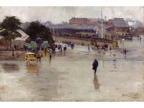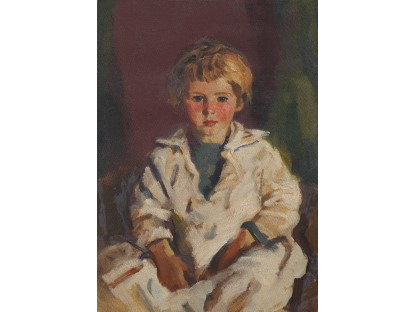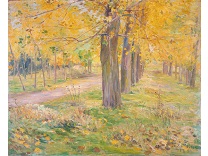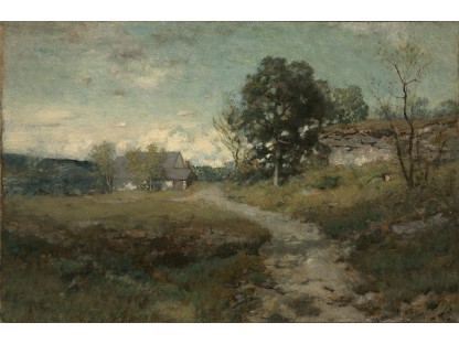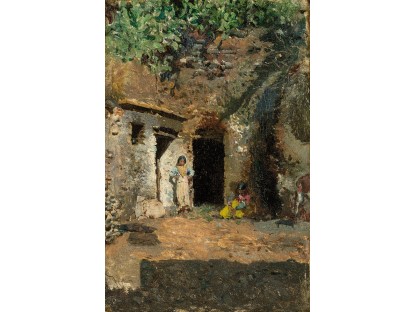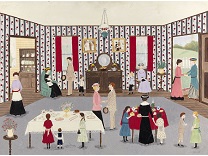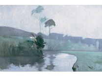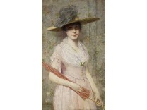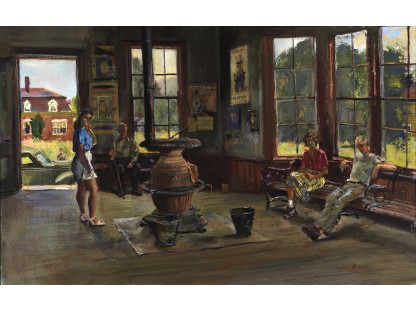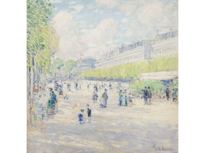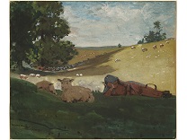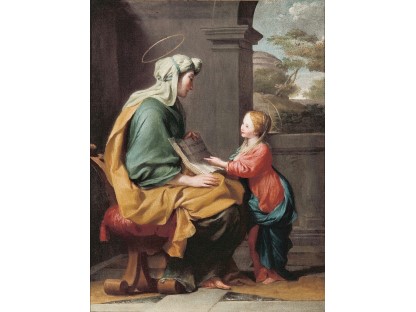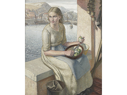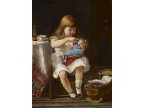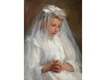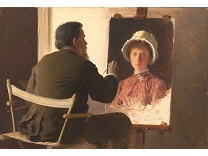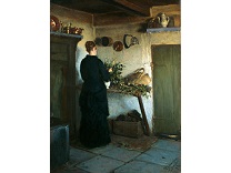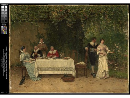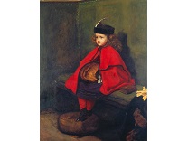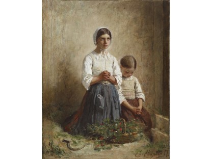 此画描绘了一个阳光明媚的清晨,母亲和孩子散步场景,充分表现了人物的惬意心情以及其中的微风、蓝天的那种恬静美好。