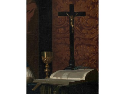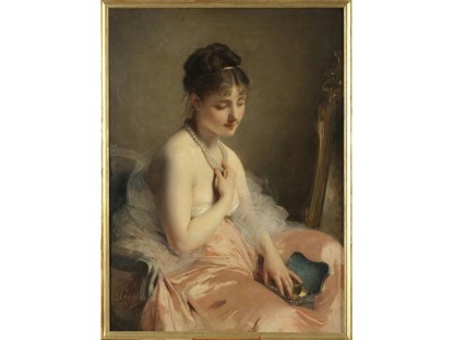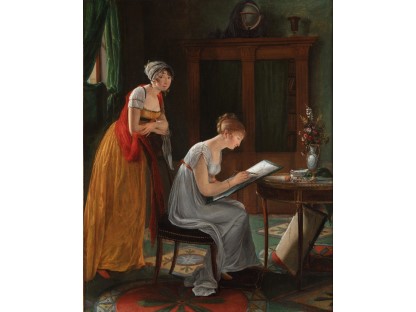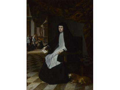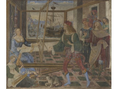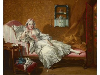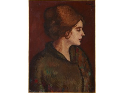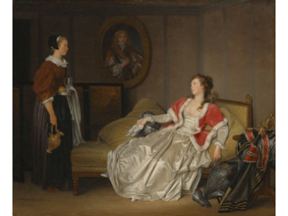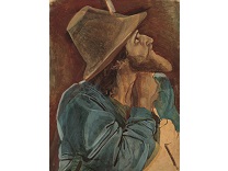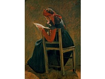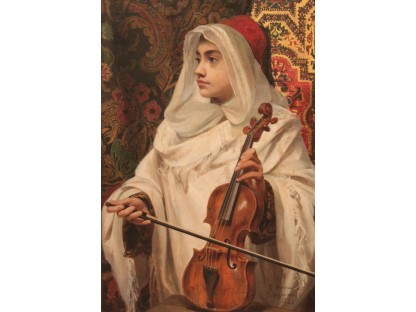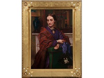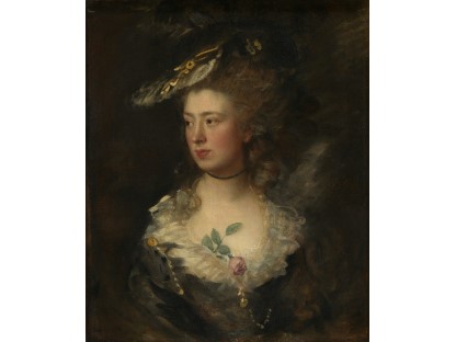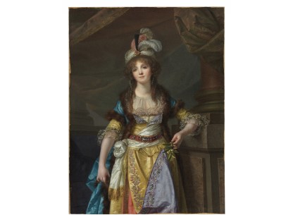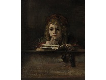 该画描绘了一名身穿棕色衣服,佩戴黄、蓝色头巾的少女,气质超凡出众,宁静中淡恬从容、欲言又止的神态栩栩如生,看似带有一种既含蓄又惆怅的、似有似无的伤感表情,惊鸿一瞥的回眸…