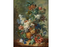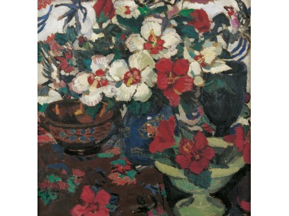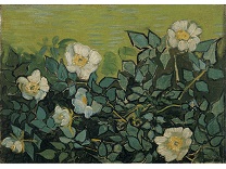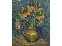 花瓶裡的鳶尾花前後不齊地滿滿插在一起,同時又向四方怒放,似乎是梵谷依戀南方的最後表現。