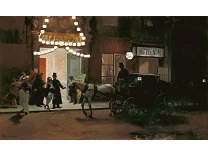 《夜游者》是霍普有如黑色电影般风格的代表作。这些作品中,他以窥视的视角,描绘在光与影之间戏剧性的互动之下情感孤立的个体。