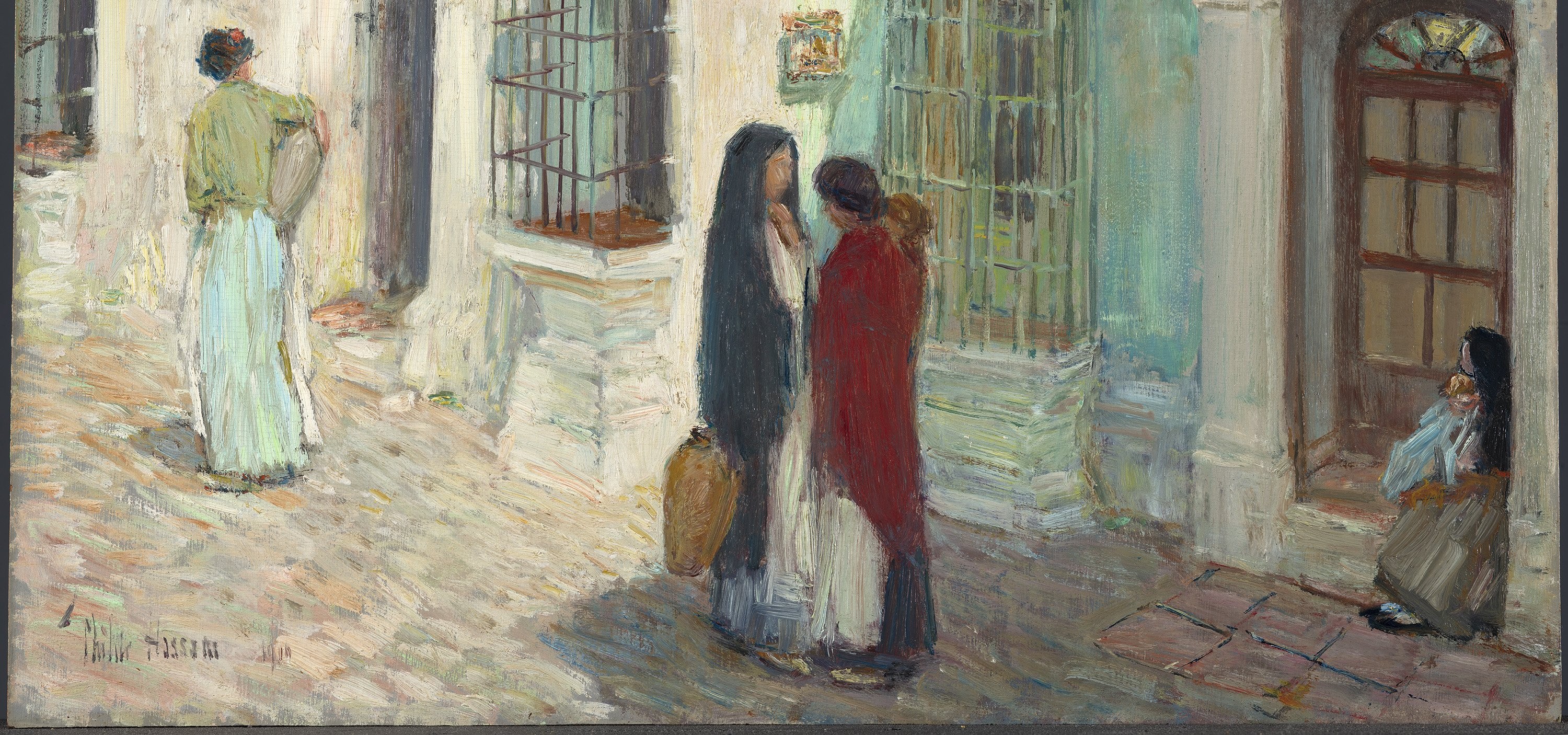 Hassam's paintings were purchased by Horatio Seymour Rubens, whom Hassam fondly remembered as a "great collector of American paintings." Rubens, who was counsel for the Cuban junta which led to the Spanish-American war, owned paintings by Hassam, portraits by Stuart, Sargent, and the English painters, Raeburn, Lawrence and Gainsborough, as well as possessing a large collection of Oriental objects by the time of his death. By the time Rubens purchased the painting through Milch Galleries, New York, it was know as Street Scene, Ronda, Spain.