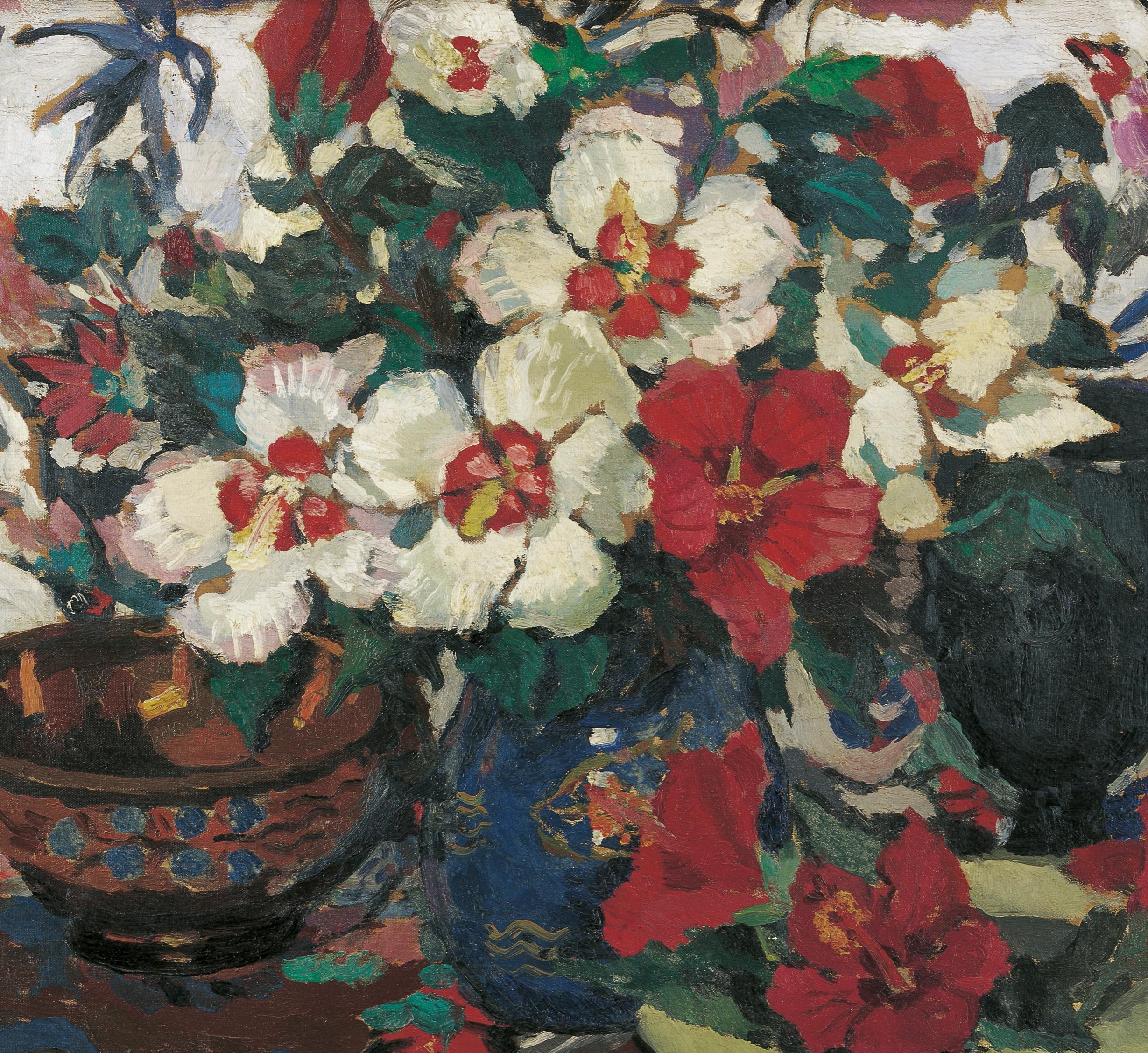 白色和红色的木槿花 |