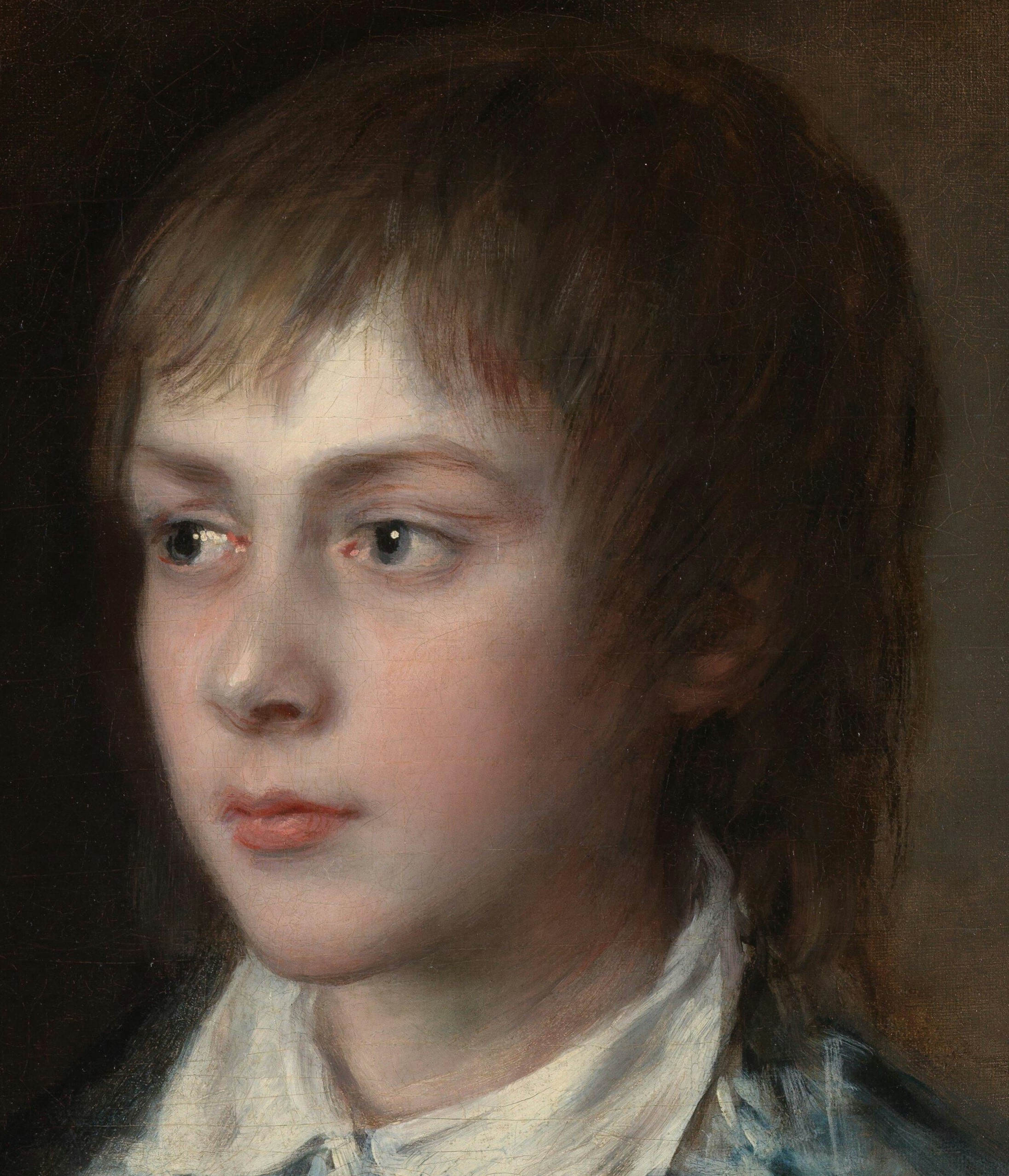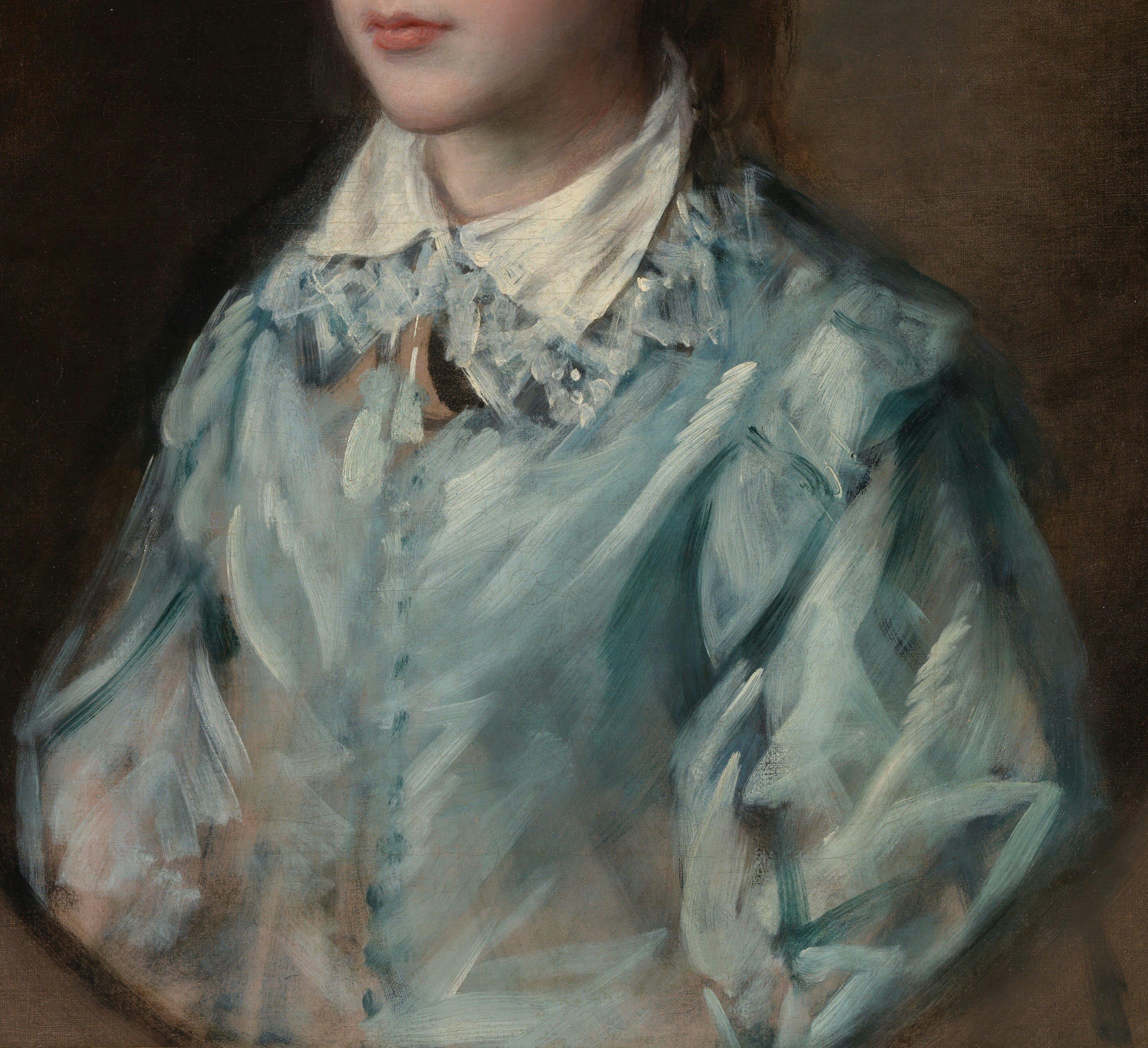 The portrait of Edward reflects the influence of the Flemish portraitist Anthony van Dyck (1599-1641) in the loose brushwork and the style of finish. The child appears to be wearing the same pale blue costume as the sitter in Gainsborough’s painting The Blue Boy (Huntington Collection, California), suggesting that this may have been a prop in the artist’s studio. This use of historic costume also makes reference to the work of Van Dyck whose work Gainsborough admired. Gainsborough’s emulation of great artists in his later work reflects growing confidence in his own abilities.