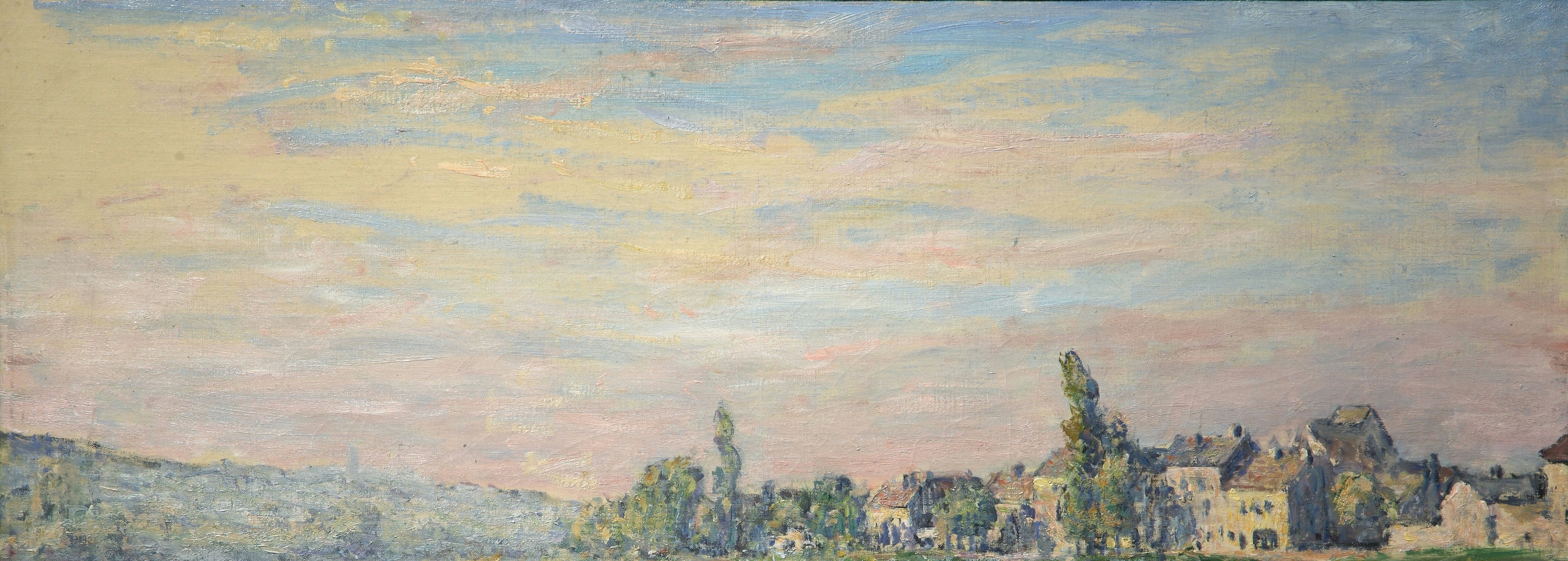 This canvas is part of a group of views that Monet painted depicting the town of Lavacourt from the banks of the Seine. The Monet family moved into a tiny house in Lavacourt in the summer of 1878. Family tensions, and financial distress were compounded by his wife Camille’s ill health. By the summer of 1879, he was desperate to sell some paintings, and worked on this series of views. After Camille’s death in September, Monet’s financial difficulties and the gradual disaffection within the Impressionist group, led Monet to again consider submitting work to the Salon. Consequently, a large studio view of Lavacourt was exhibited in the Salon of 1880.