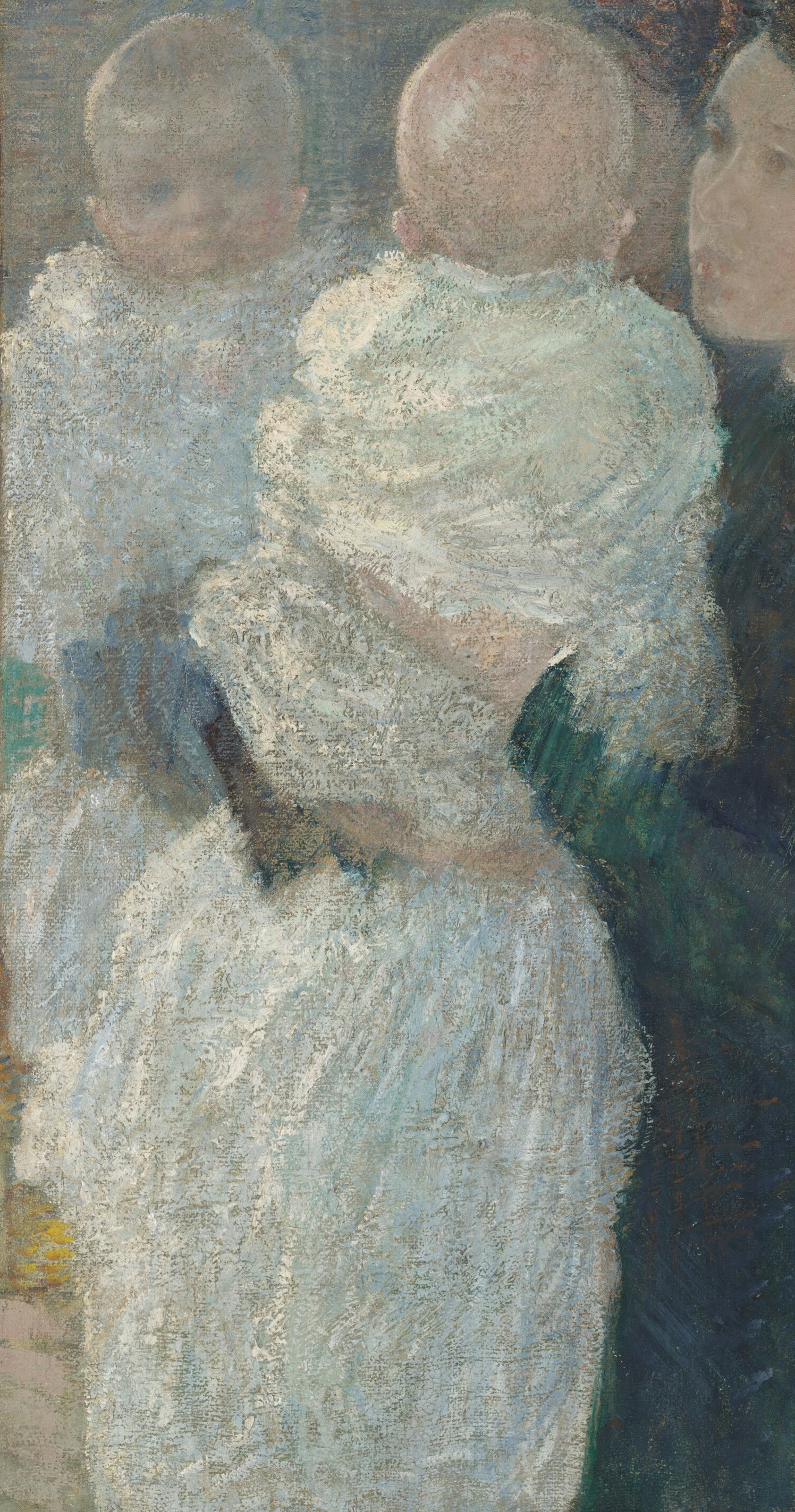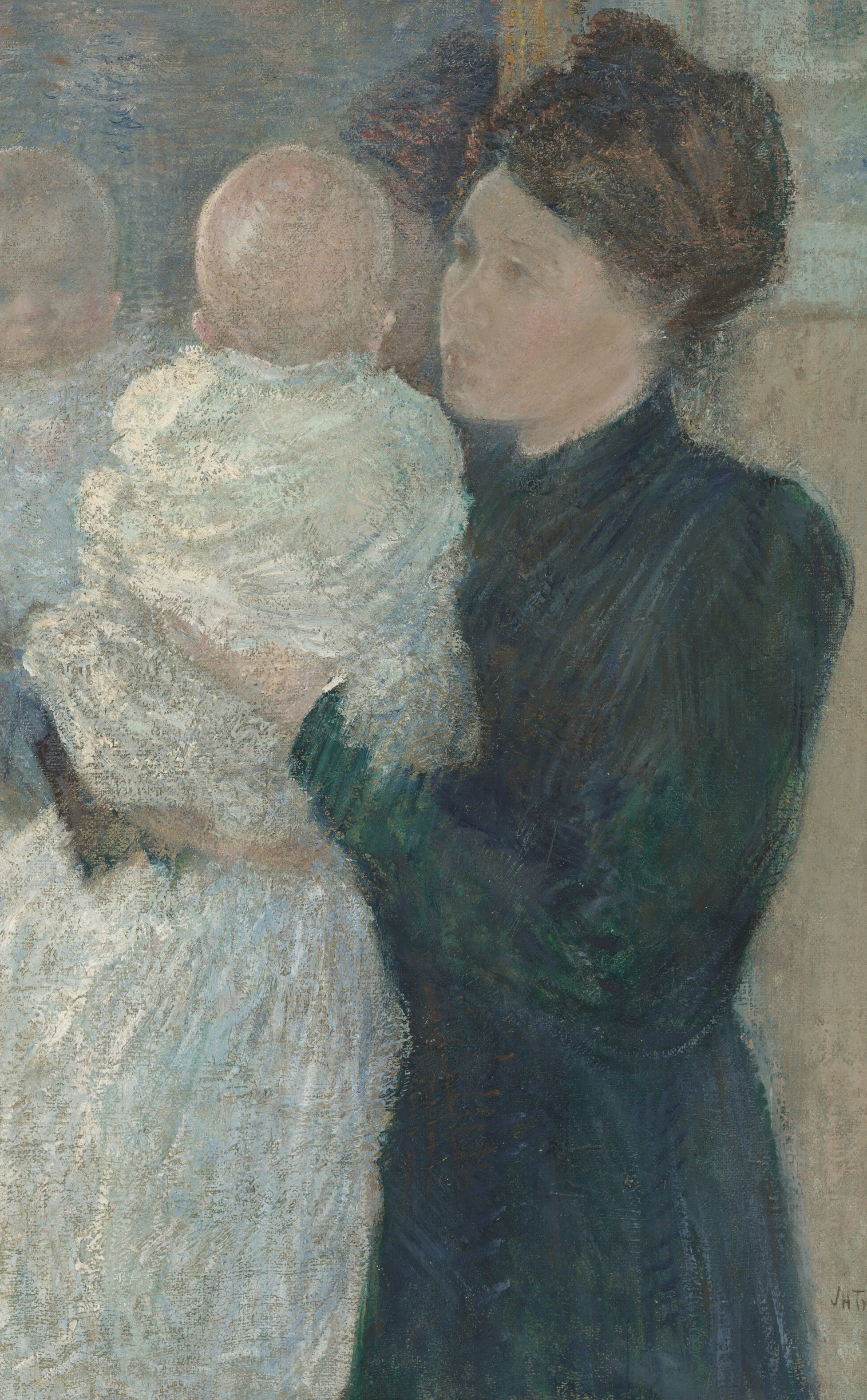 During the Gilded Age (ca. 1877–1900), American Impres- sionist John Henry Twachtman frequently painted domestic scenes that reflected an idealized and traditional view of motherhood. He did so during a period that was in reality marked by rapidly shifting social norms and roles, particularly for women.