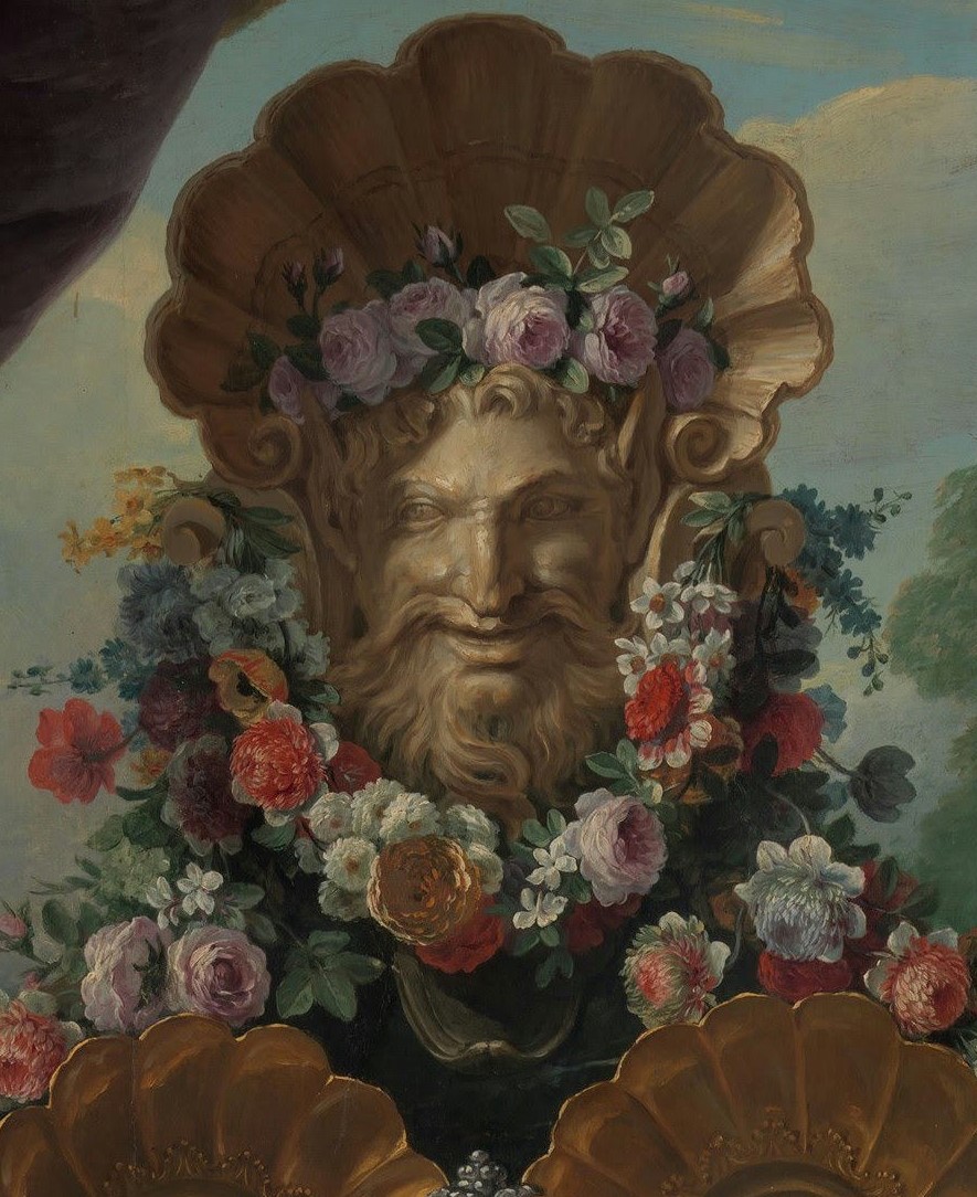 Two comparable compositions by Desportes in private collections are dated 1727 and 1740. The sides and corners of this picture had been cut, probably to set the canvas into paneling; the current corners are modern. A slightly larger copy shows the ewers and platters in their entirety.