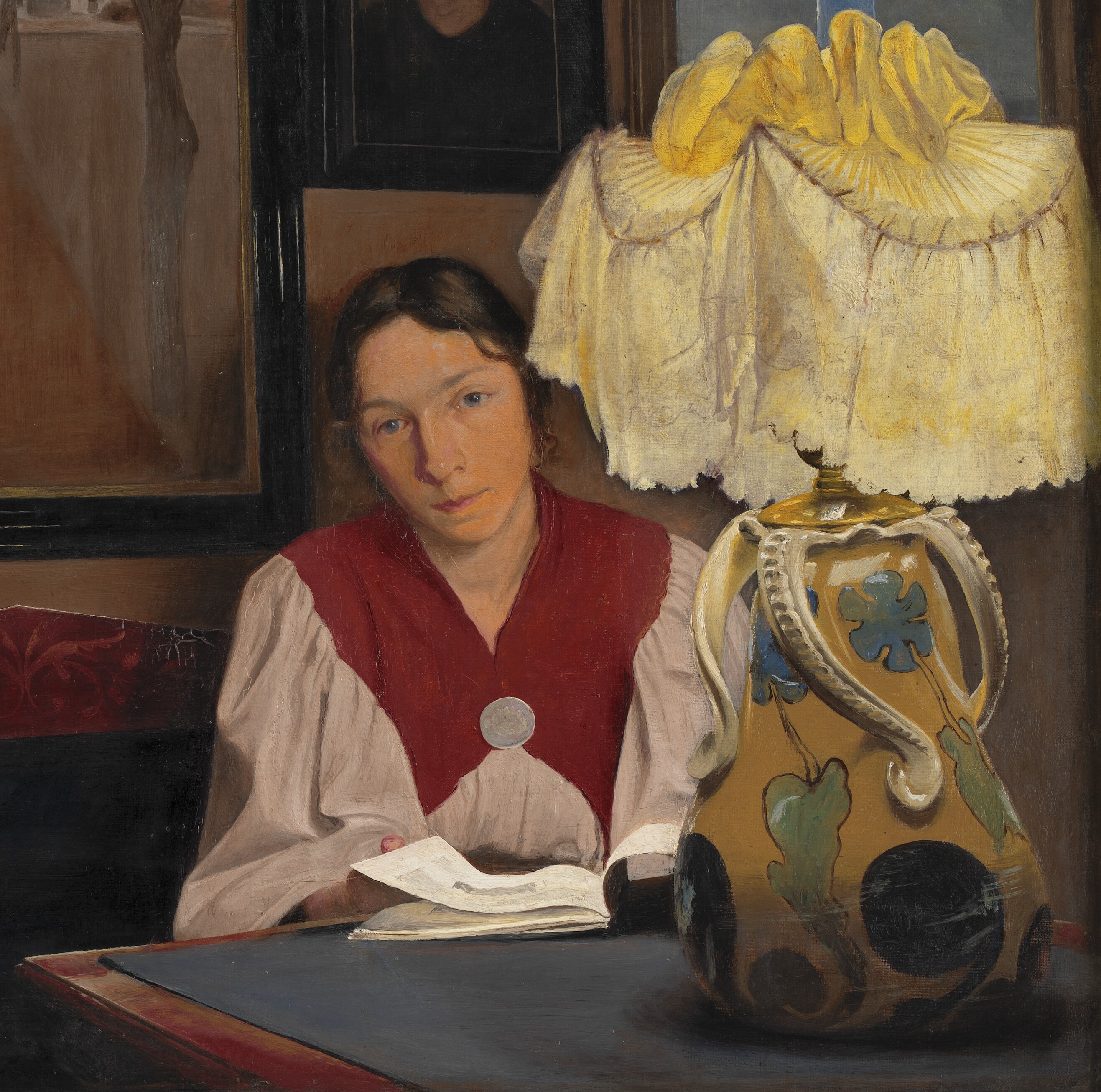 Lampelys. Interiør med kunstnerens hustru |